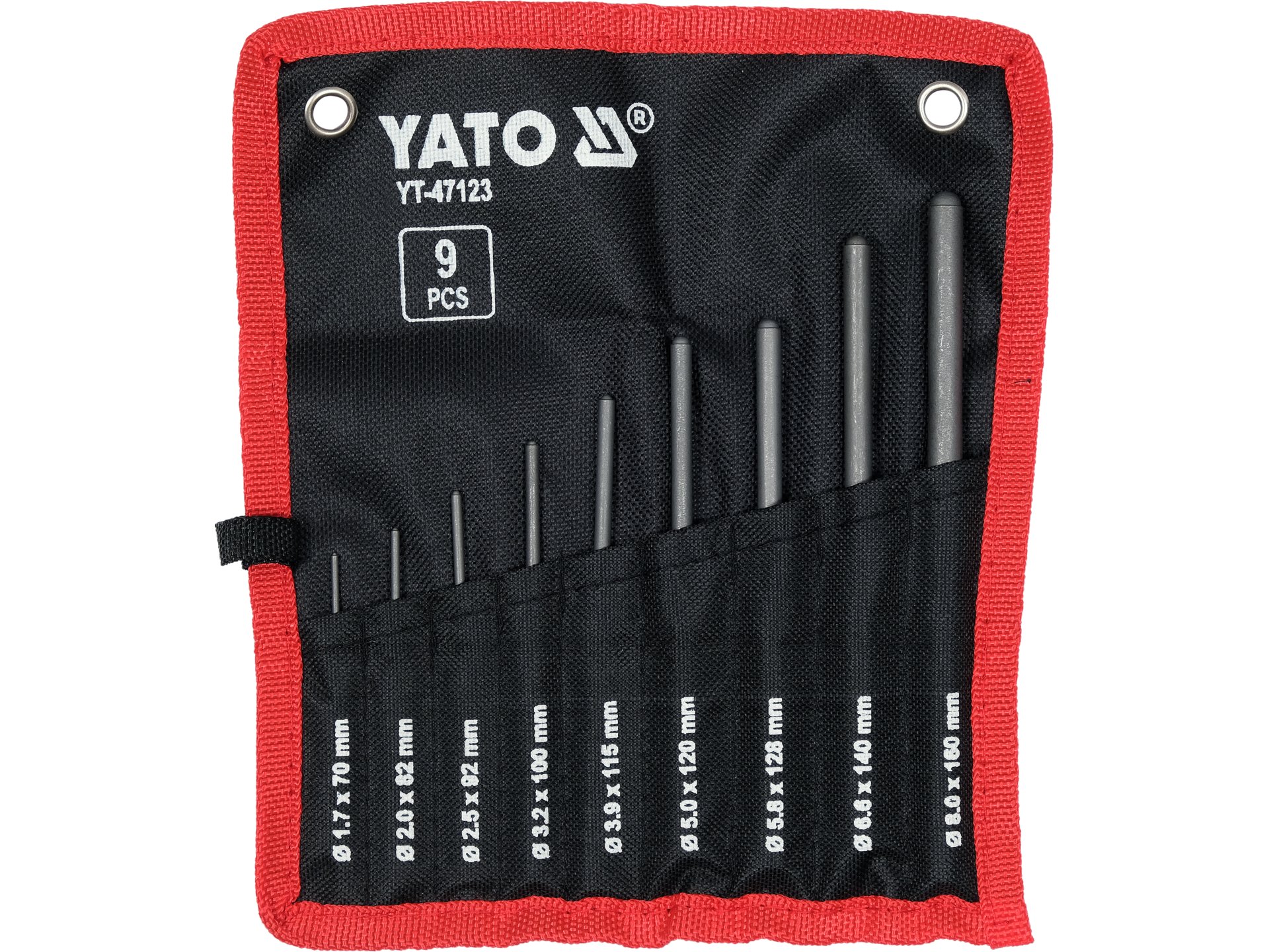 Komplet obejmuje średnice od 1,9 mm do 8,1 mm, co pokrywa większość typowych zastosowań warsztatowych. Gradacja średnic umożliwia dopasowanie narzędzia do wymiarów wybijanego elementu, co zmniejsza ryzyko uszkodzenia gniazda lub otaczającego materiału podczas pracy.