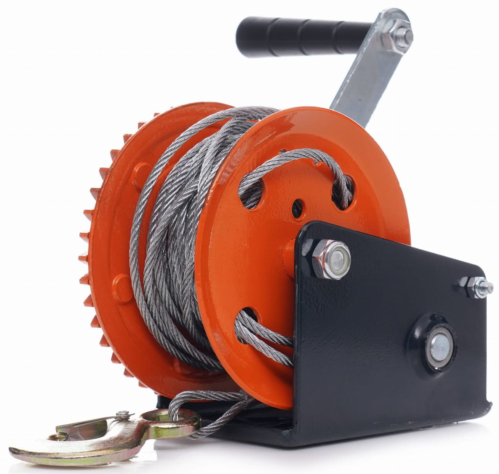 Duża korba ręczna w połączeniu ze stabilną przekładnią pozwala na przeniesienie siły potrzebnej do przemieszczenia ładunków bliskich granicy udźwigu. Przekładnia redukuje wymagany nakład siły operatora przy jednoczesnym zachowaniu kontroli nad ruchem liny.