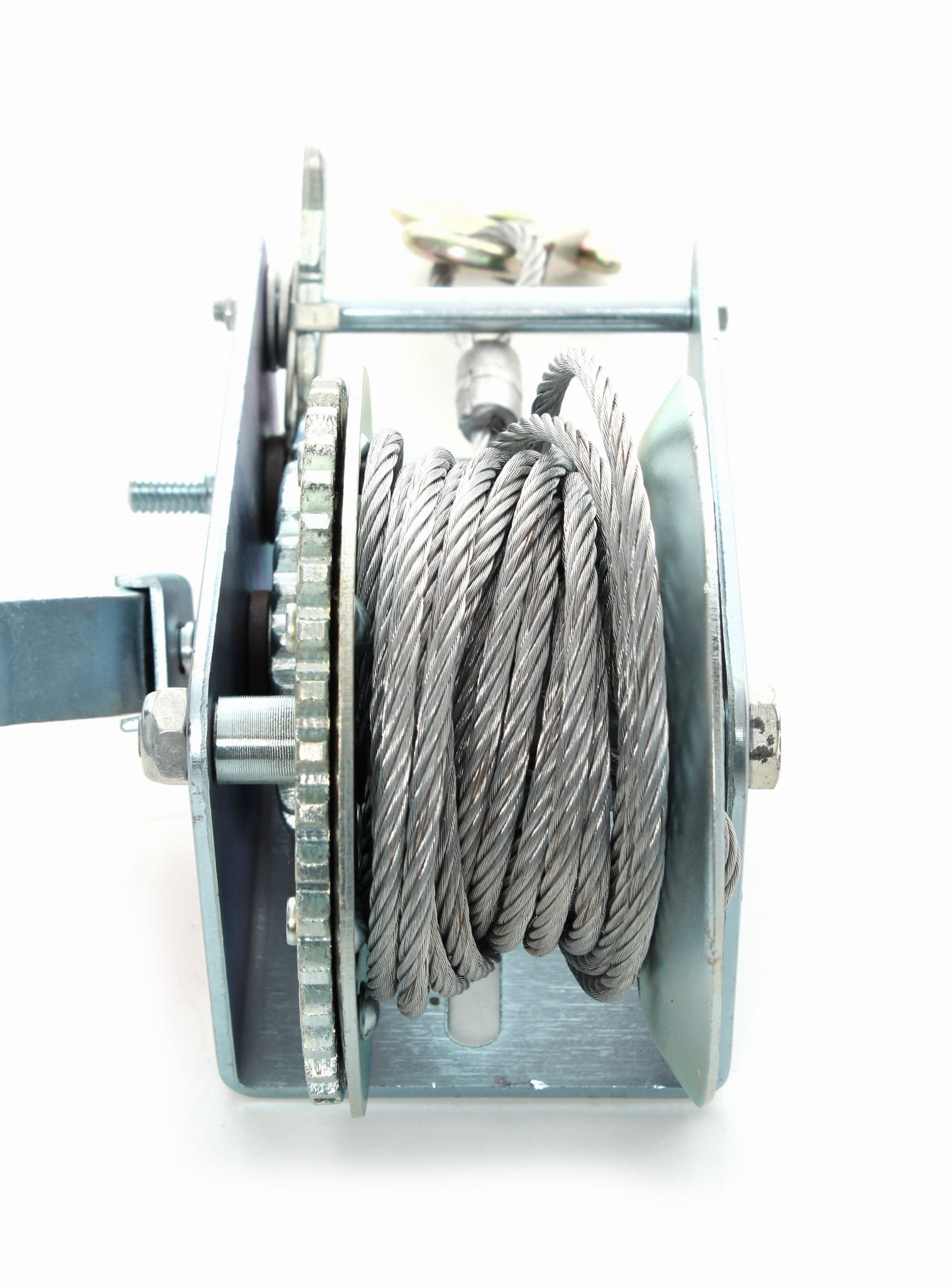 Ręczna wyciągarka korbowa z napędem korbowym, przeznaczona do podciągania, dosuwania i pozycjonowania ładunków o masie do 450 kg. Urządzenie pracuje bez zasilania elektrycznego ani pneumatycznego, co umożliwia użytkowanie w warunkach polowych, w warsztacie oraz podczas prac przyczepowych i transportowych.