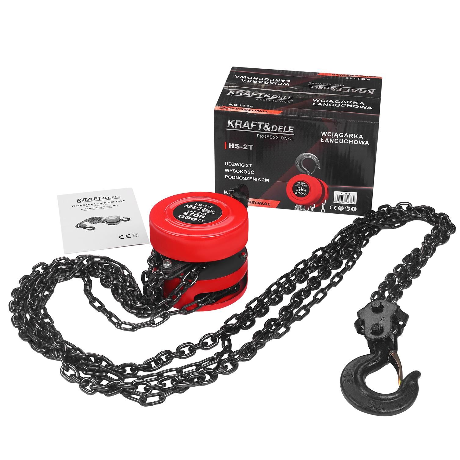 Wyciągarka łańcuchowa warsztatowa 2T KD1116 / KRAFT&DELE to solidny wciągnik łańcuchowy do prac udźwigowych w warsztacie, magazynie i na budowie. Jeśli szukasz manualnej wyciągarki łańcuchowej KD1116, która pracuje bez zasilania i daje kontrolę nad ładunkiem, ten model będzie praktycznym wyborem.