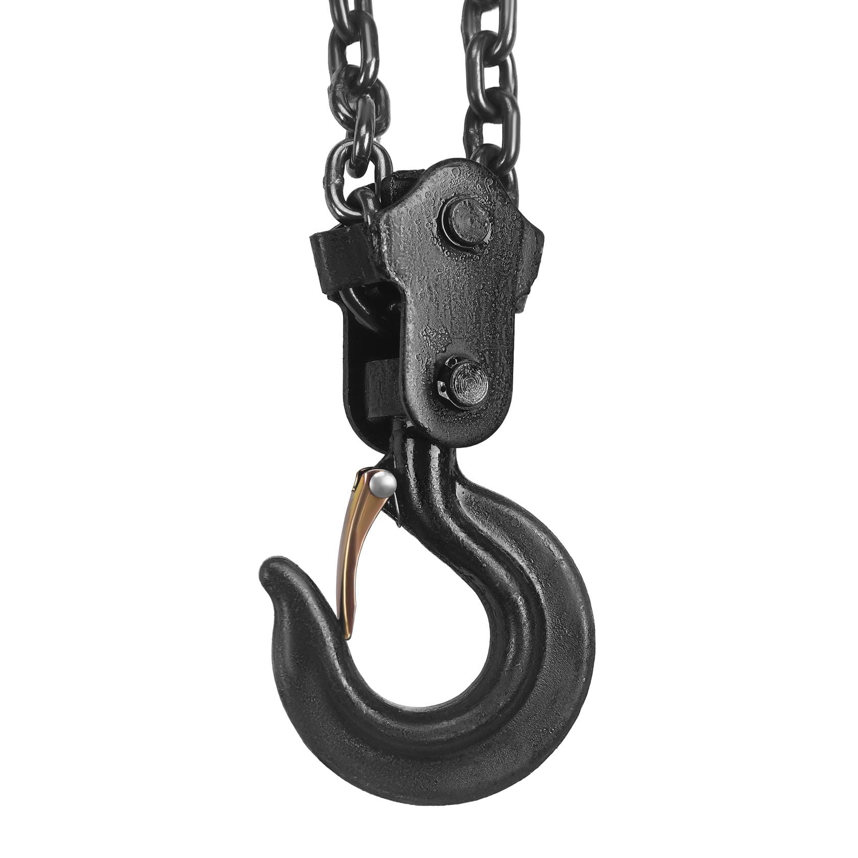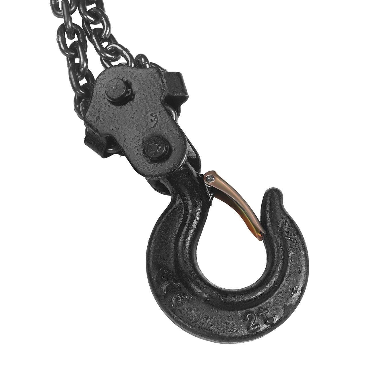 Wyciągarkę należy mocować wyłącznie do konstrukcji nośnych o udźwigu co najmniej równym maksymalnemu obciążeniu urządzenia (2 T). Przed każdym użyciem należy sprawdzić stan łańcucha — szukać pęknięć, odkształceń ogniw i nadmiernego zużycia. Łańcuch wykazujący widoczne uszkodzenia mechaniczne wymaga wymiany przed dalszą eksploatacją.