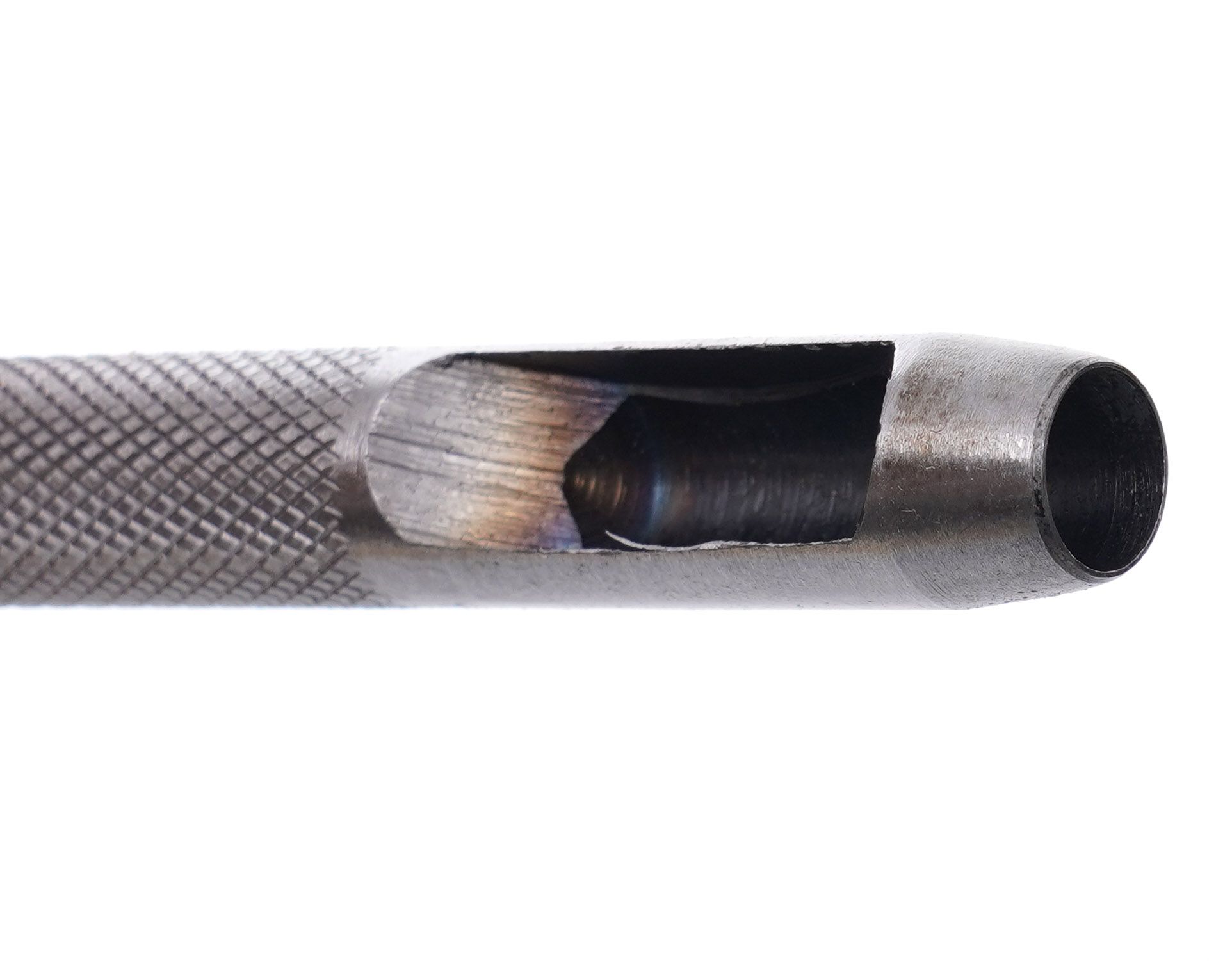 Radełkowana obudowa poprawia kontrolę w dłoni, co pomaga precyzyjnie ustawić wybijak przed wykonaniem otworu.