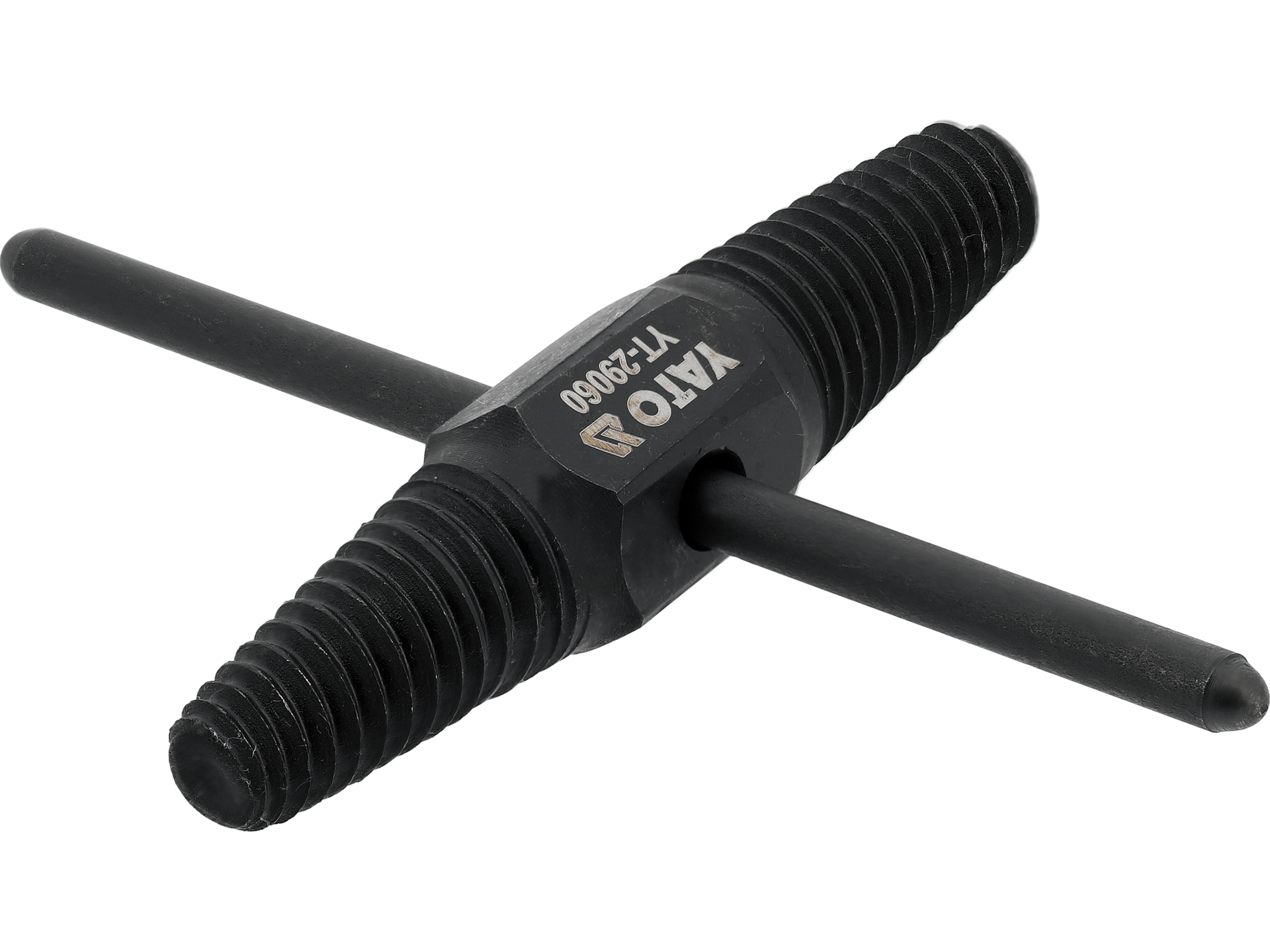 Narzędzie obraca się w kierunku przeciwnym do ruchu wskazówek zegara. W przypadku opornych gwintów można wykorzystać pręt pomocniczy, wprowadzając go przez centralny otwór 7 mm. Pręt pełni funkcję dźwigni, zwiększając możliwość generowania większego momentu obrotowego.