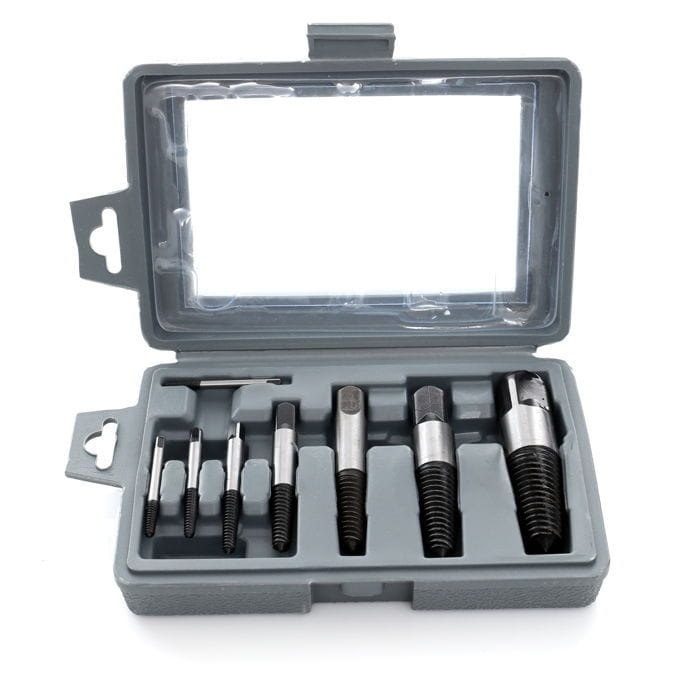 Zestaw 8 wykrętaków przeznaczonych do usuwania śrub ze zniszczoną lub zerwaną główką. Narzędzia pokrywają szeroki zakres średnic — od 3 do 26 mm — co pozwala na pracę z większością typowych złączy stosowanych w motoryzacji, instalacjach i konstrukcjach metalowych.