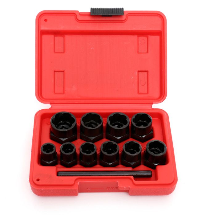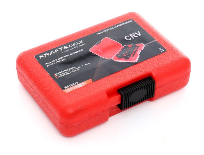KD10270 to zestaw dziesięciu specjalistycznych wykrętaków marki Kraft&Dele przeznaczonych do usuwania uszkodzonych, ześlizgniętych lub zerwanych śrub i nakrętek. Nasadki o wysokim profilu zaklinowują się na zniszczonej powierzchni łba, umożliwiając przeniesienie momentu obrotowego niezbędnego do wykręcenia elementu złącznego.