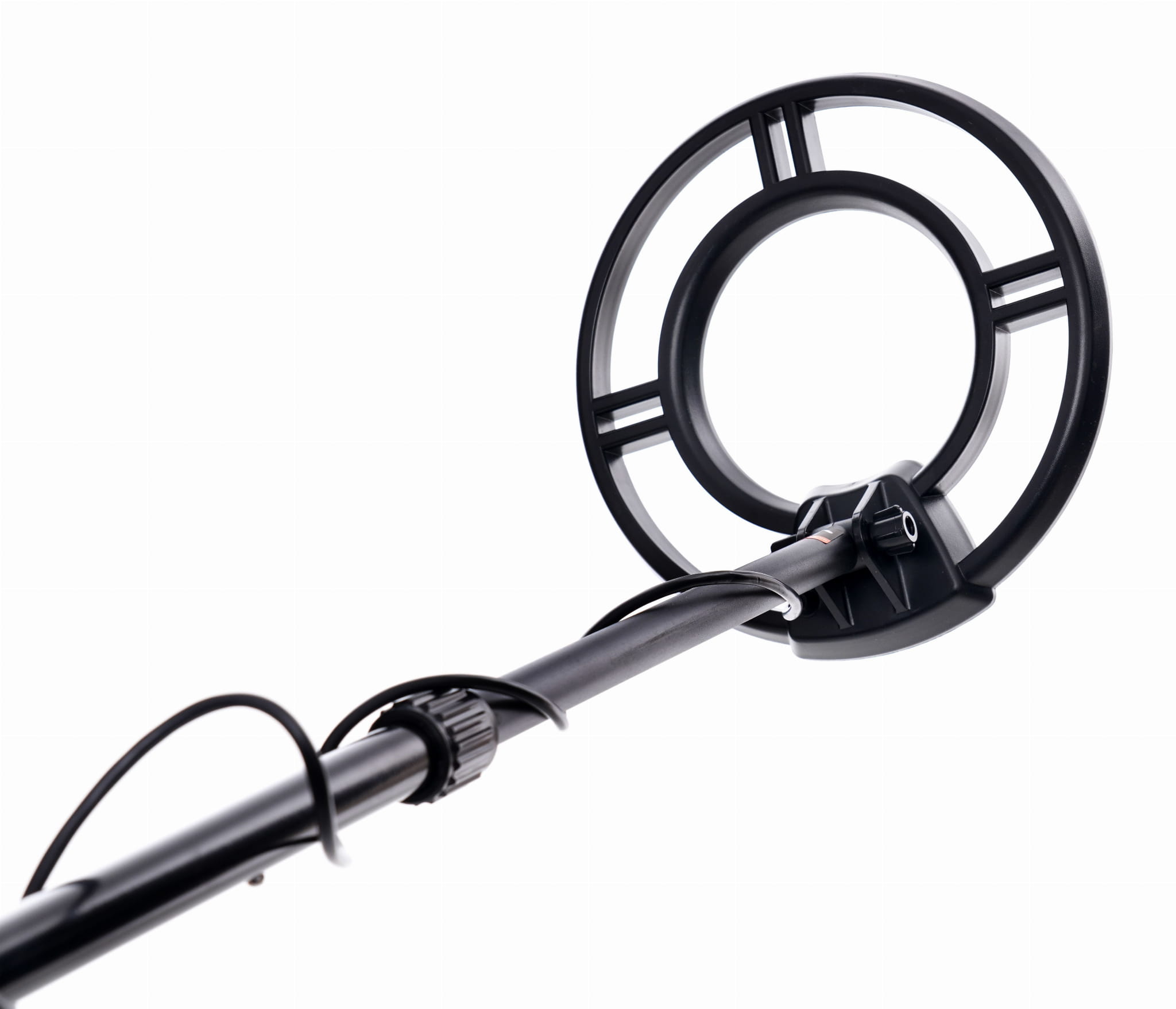 Teleskopowe ramię wykonane z aluminium pozwala na dopasowanie długości do wzrostu użytkownika. Uchwyt podramienny stabilizuje urządzenie podczas przeszukiwania terenu. Po wyjęciu z ramienia uchwyt pełni funkcję łopatki — praktyczne rozwiązanie przy wydobywaniu znalezionych obiektów.