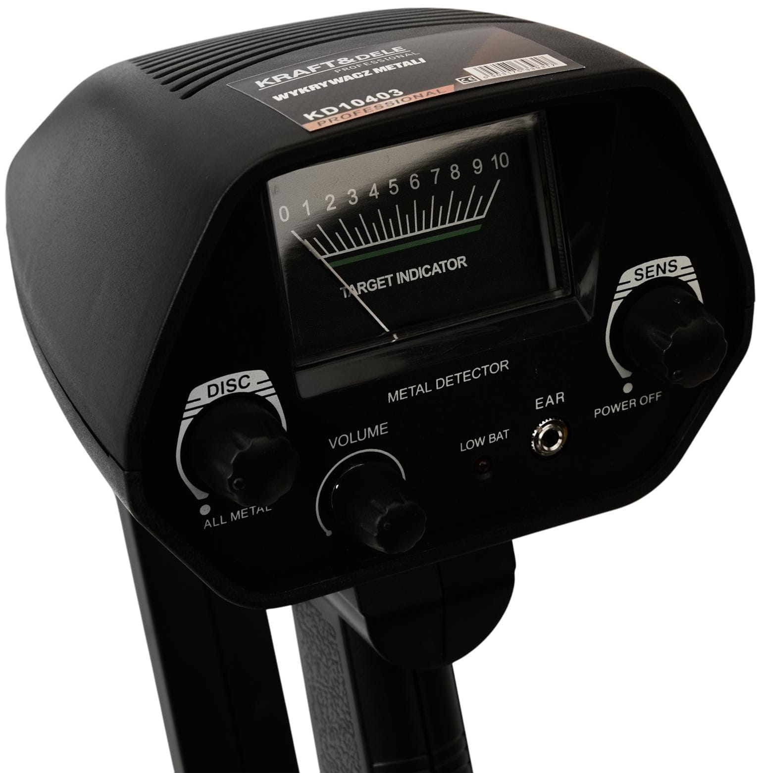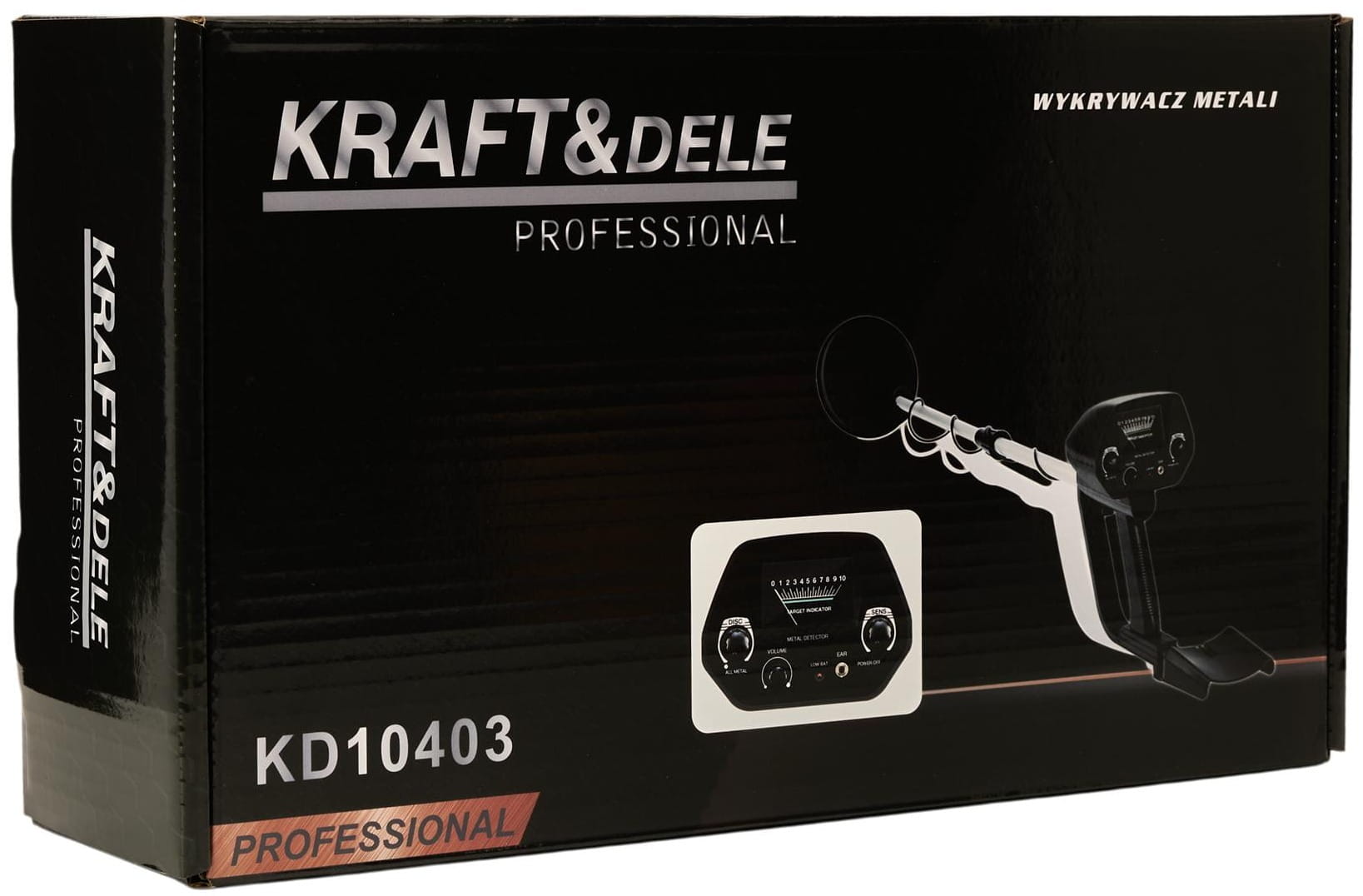 KD10403 marki KRAFT&DELE to ręczny detektor metali przeznaczony do poszukiwań terenowych — zarówno na lądzie, jak i w płytkiej wodzie. Urządzenie łączy funkcję dyskryminacji metali z analogowym wskaźnikiem rodzaju wykrytego materiału, co pozwala na bardziej świadome prowadzenie poszukiwań i ograniczenie czasu poświęcanego na wydobywanie niepożądanych obiektów.