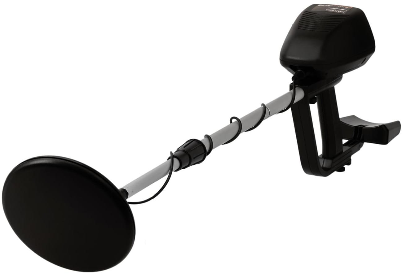 Regulowane ramię z aluminium pozwala dopasować długość detektora do wzrostu użytkownika, co zmniejsza zmęczenie podczas wielogodzinnych poszukiwań. Uchwyt podramienny po wyjęciu pełni funkcję kompaktowej łopatki — praktyczne rozwiązanie w terenie.