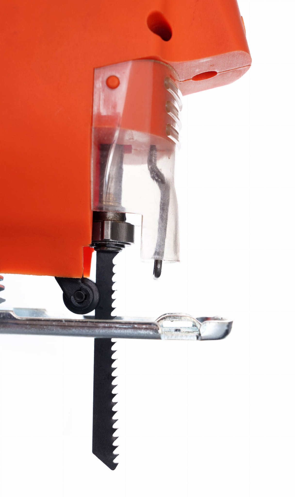 Wyrzynarka EC563 wyposażona jest w system szybkiej wymiany ostrza, który nie wymaga użycia dodatkowych narzędzi. W zestawie znajduje się uniwersalny nóż do drewna oraz prowadnica równoległa z podziałką, umożliwiająca wykonywanie równoległych cięć w stałej odległości od krawędzi materiału. Urządzenie współpracuje ze standardowymi ostrzami do wyrzynarek typu T-shank.