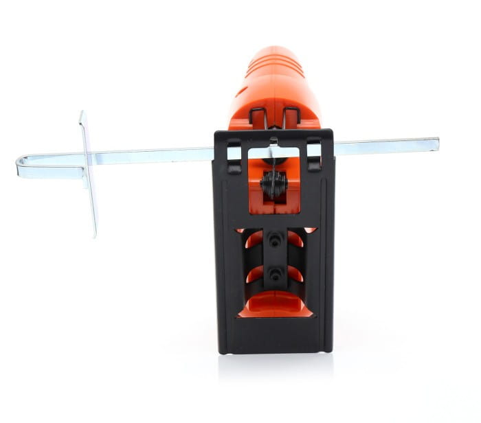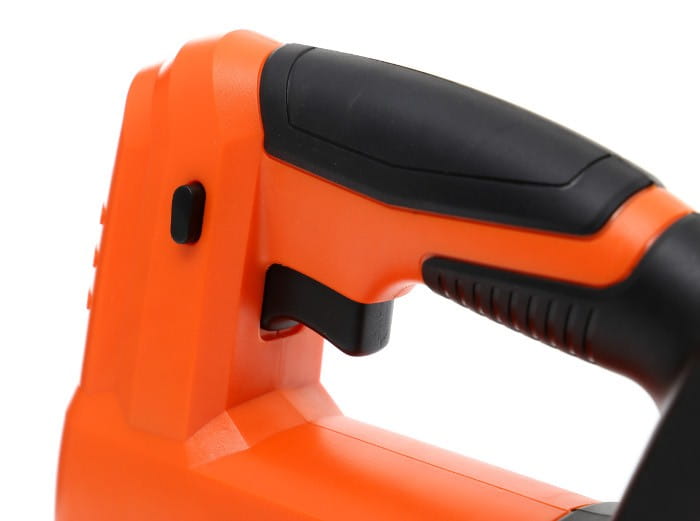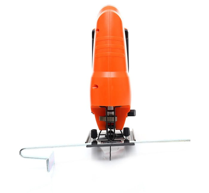 Wyrzynarka wyposażona jest w zabezpieczenie uniemożliwiające niezamierzone włączenie urządzenia. Rozwiązanie ma znaczenie zarówno w kontekście bezpieczeństwa pracy, jak i przechowywania narzędzia w miejscach dostępnych dla dzieci.