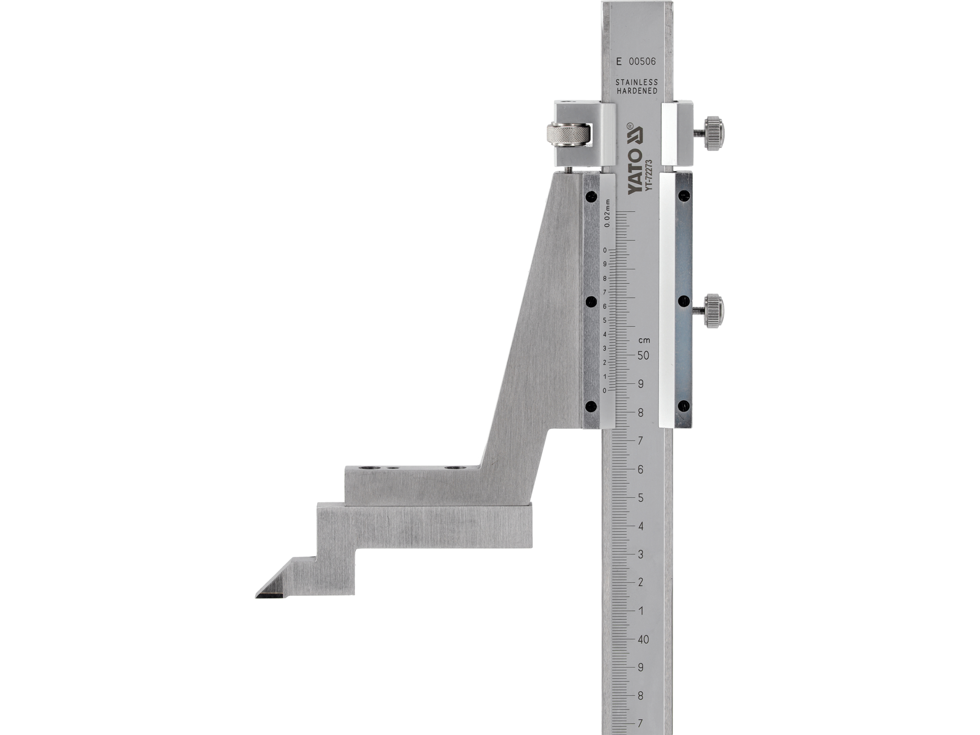 Precyzyjny wysokościomierz warsztatowy z zakresem pomiarowym 0-500 mm. Narzędzie przeznaczone do pomiarów wysokości elementów, trasowania oraz nanoszenia oznaczeń na powierzchniach roboczych. Konstrukcja ze stali nierdzewnej zapewnia stabilność i powtarzalność pomiarów w warunkach warsztatowych i laboratoryjnych.