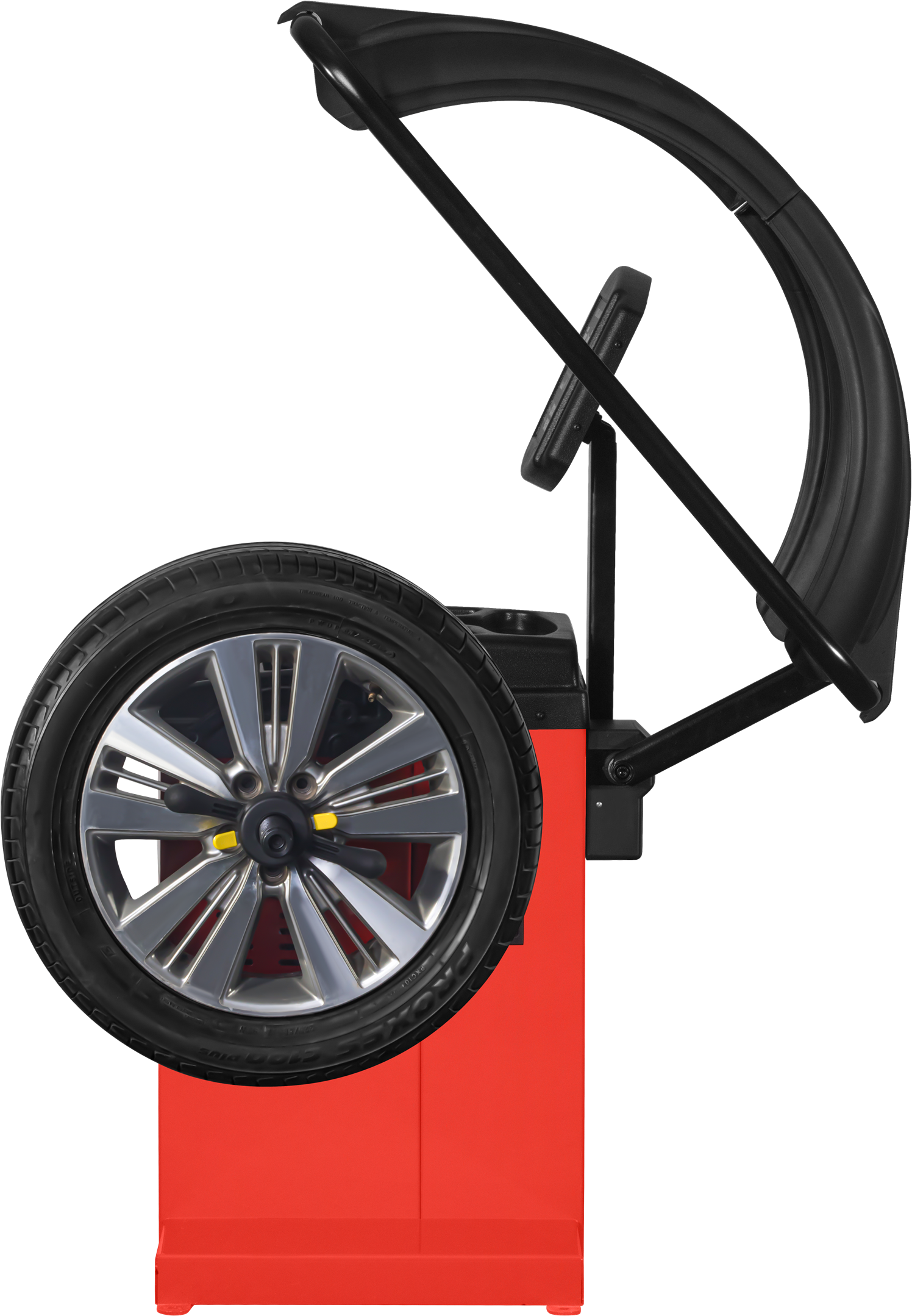 Wbudowany laser wskazuje dokładne miejsce przyklejenia lub zawieszenia ciężarka wyważającego na feldze. Operator nie musi szacować pozycji — laser wskazuje punkt bezpośrednio na obręczy, co jest szczególnie przydatne przy felgach aluminiowych z ukrytymi miejscami montażu.