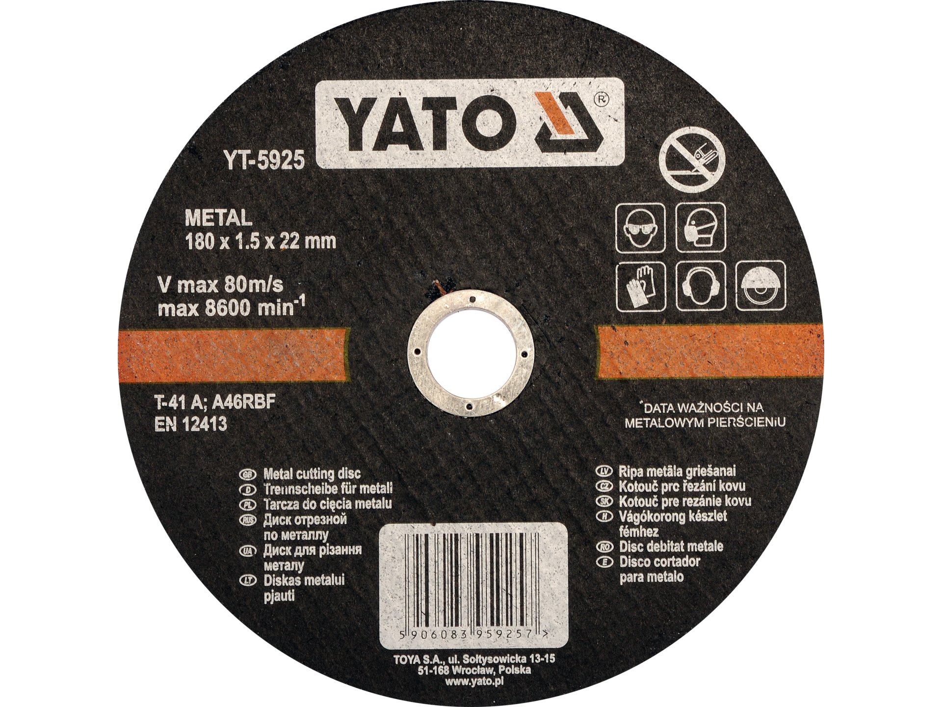 Tarcza do cięcia metalu 180x1,5x22 mm YT-5925 YATO
