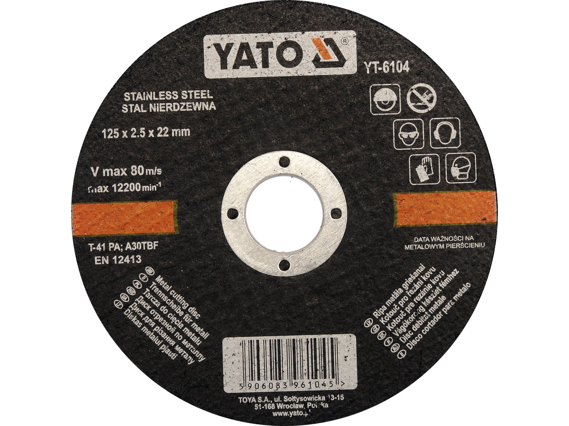 Tarcza do cięcia stali nierdzewnej 125x2,5x22 mm YT-6104 YATO