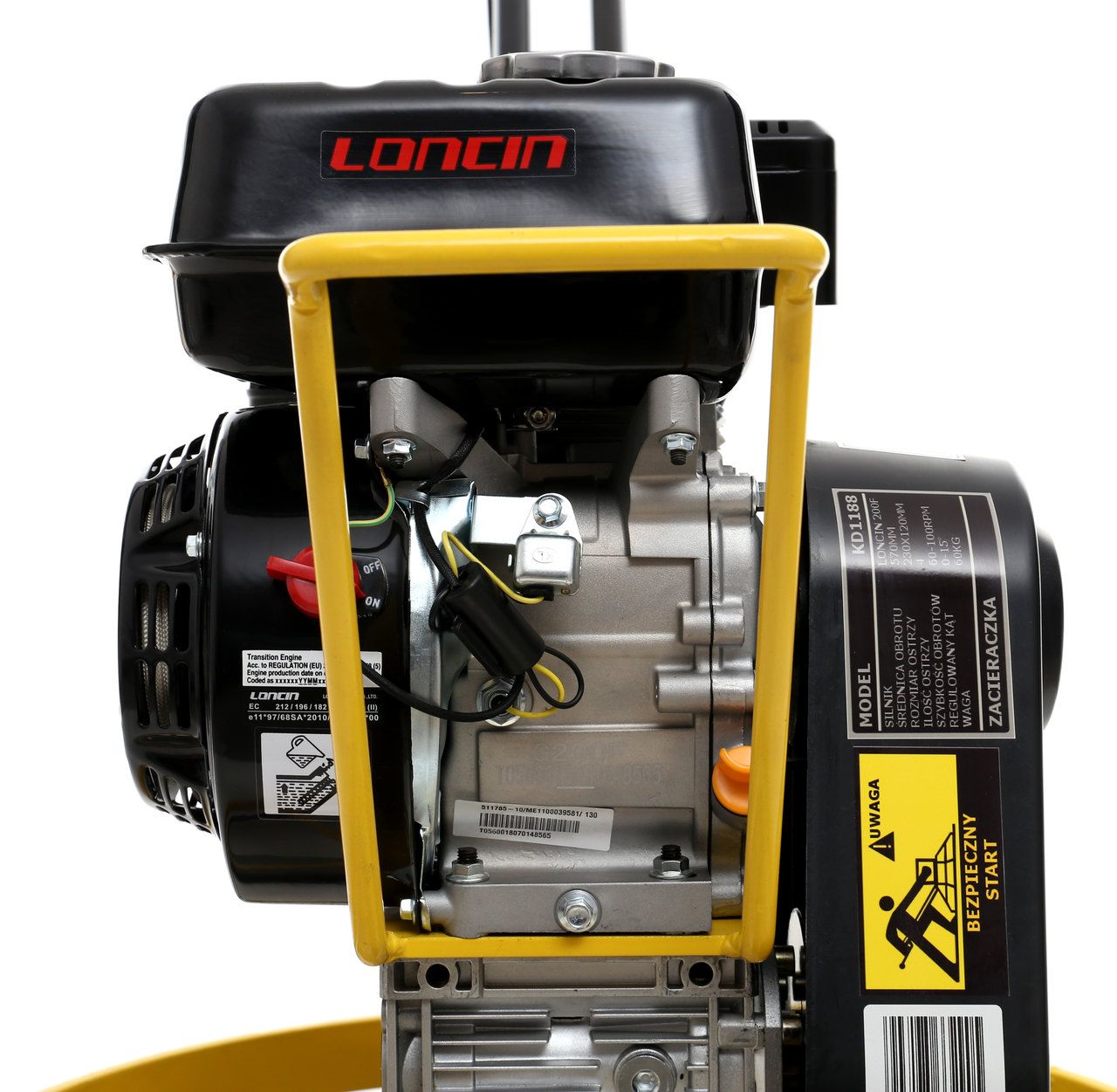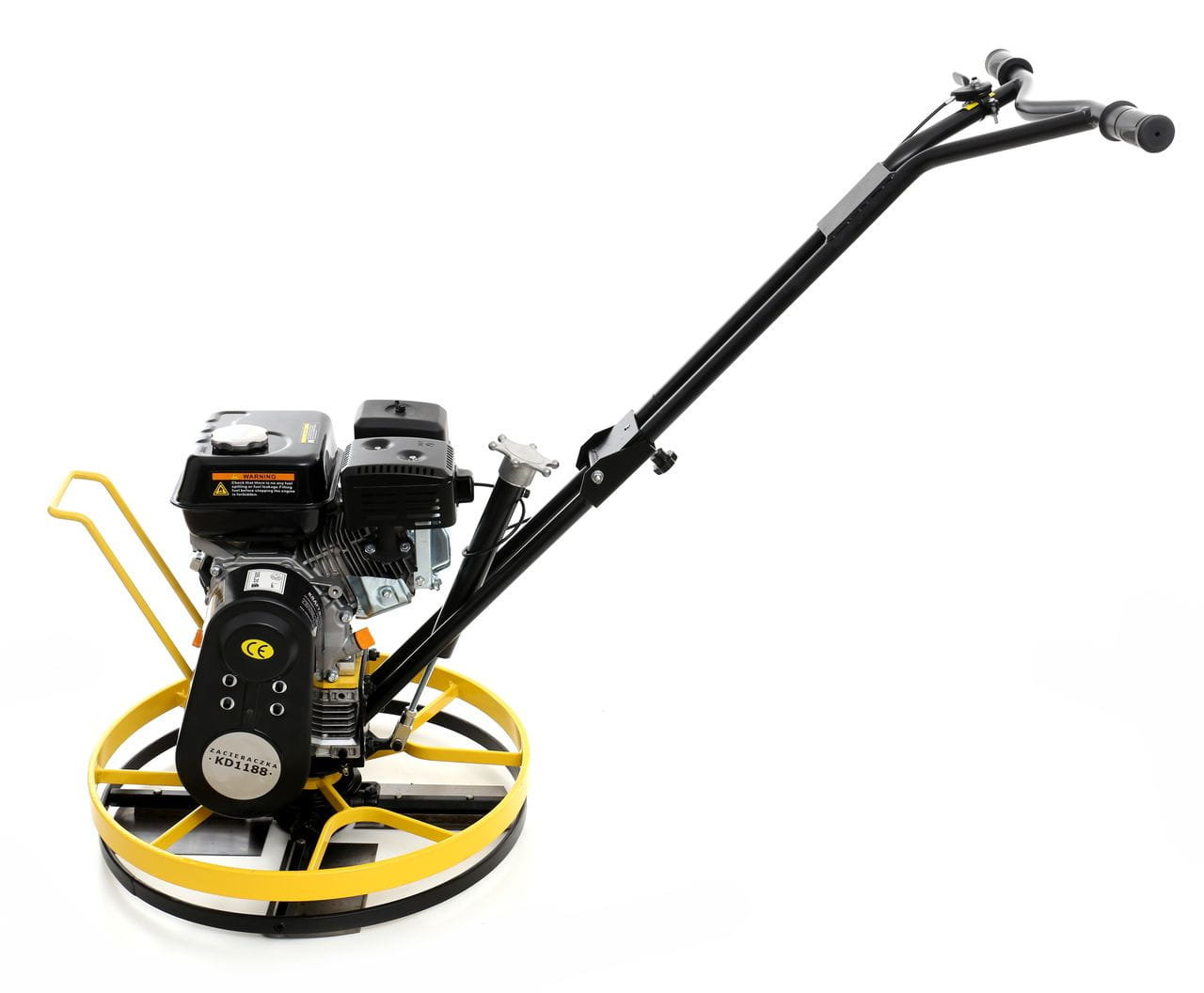 KD1188 to spalinowa maszyna do zacierania betonu przeznaczona do mechanicznego wygładzania i zagęszczania powierzchni betonowych oraz posadzek przemysłowych. Urządzenie pracuje w oparciu o silnik LINCIN 200F napędzający cztery ostrza robocze o regulowanym kącie nachylenia, co pozwala dostosować parametry pracy do etapu wiązania betonu i wymaganego efektu wykończenia.