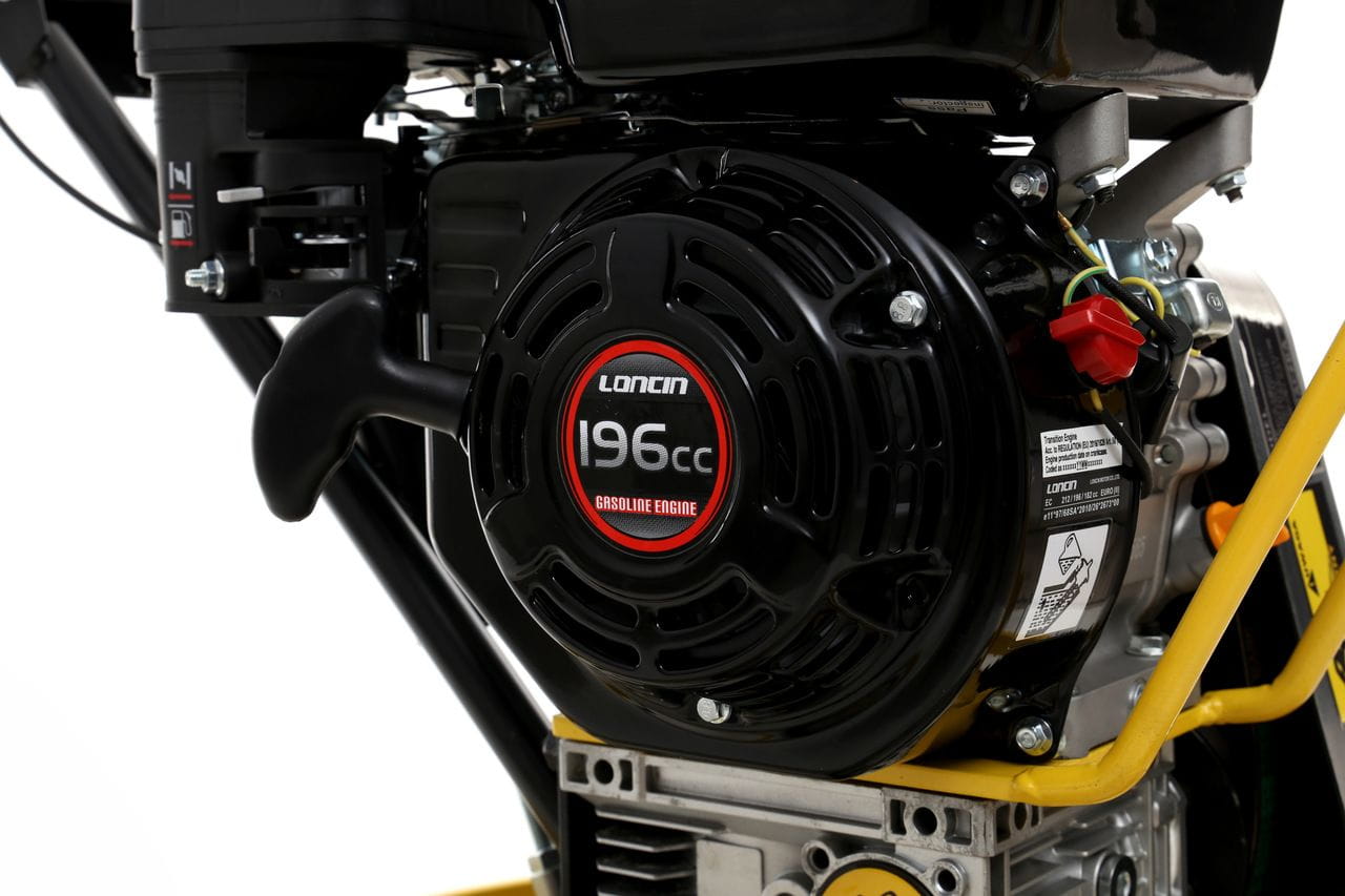 Jednocylindrowy silnik benzynowy klasy OHV zapewnia stałą moc roboczą niezależnie od warunków zewnętrznych. Zasilanie spalinowe eliminuje konieczność dostępu do sieci elektrycznej, co ma znaczenie przy pracach na otwartych placach budowy lub w obiektach bez instalacji elektrycznej.