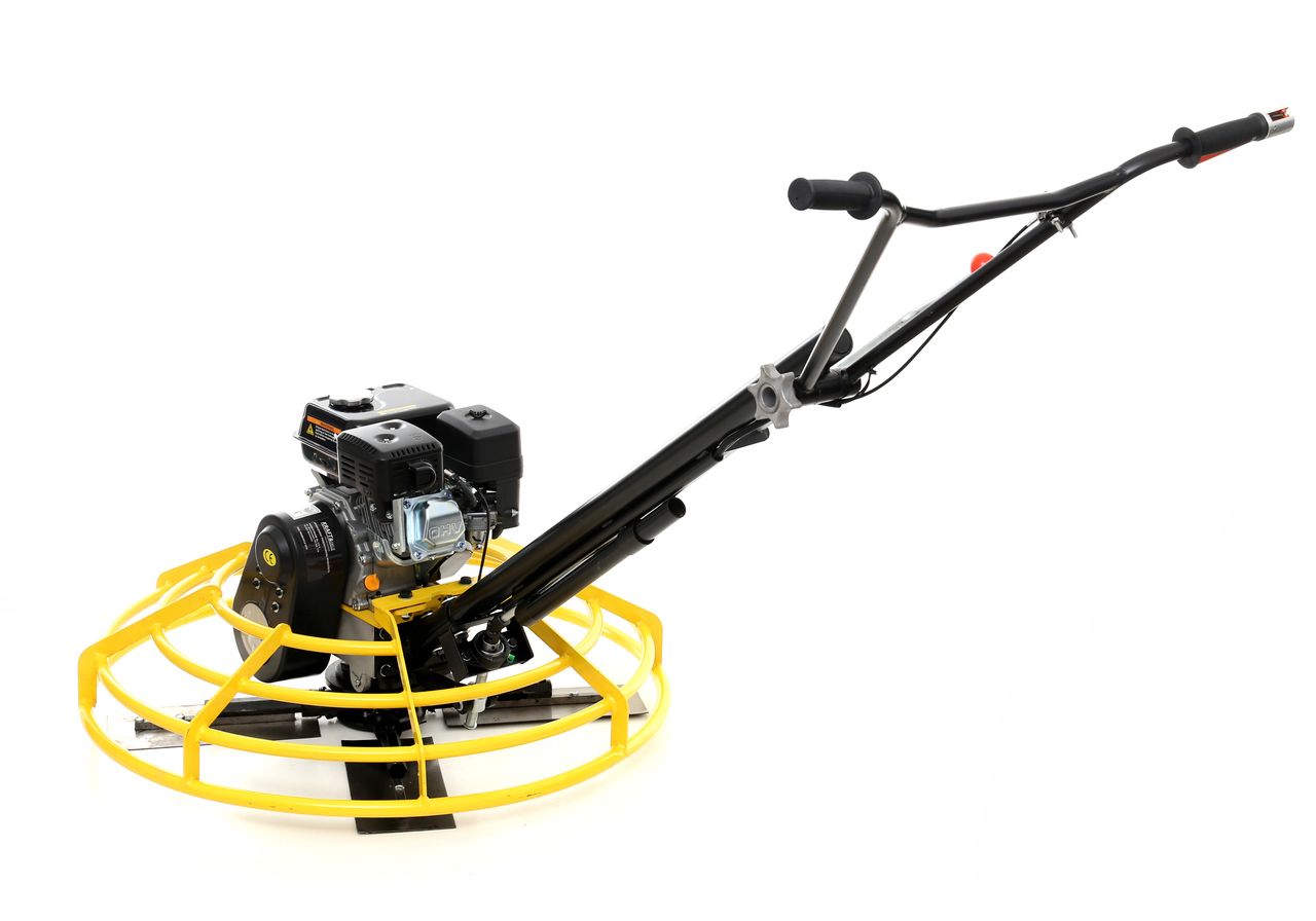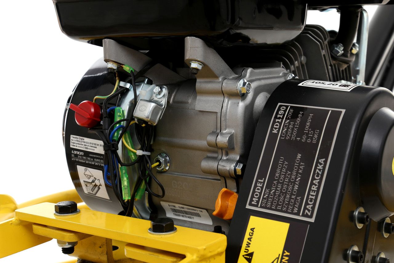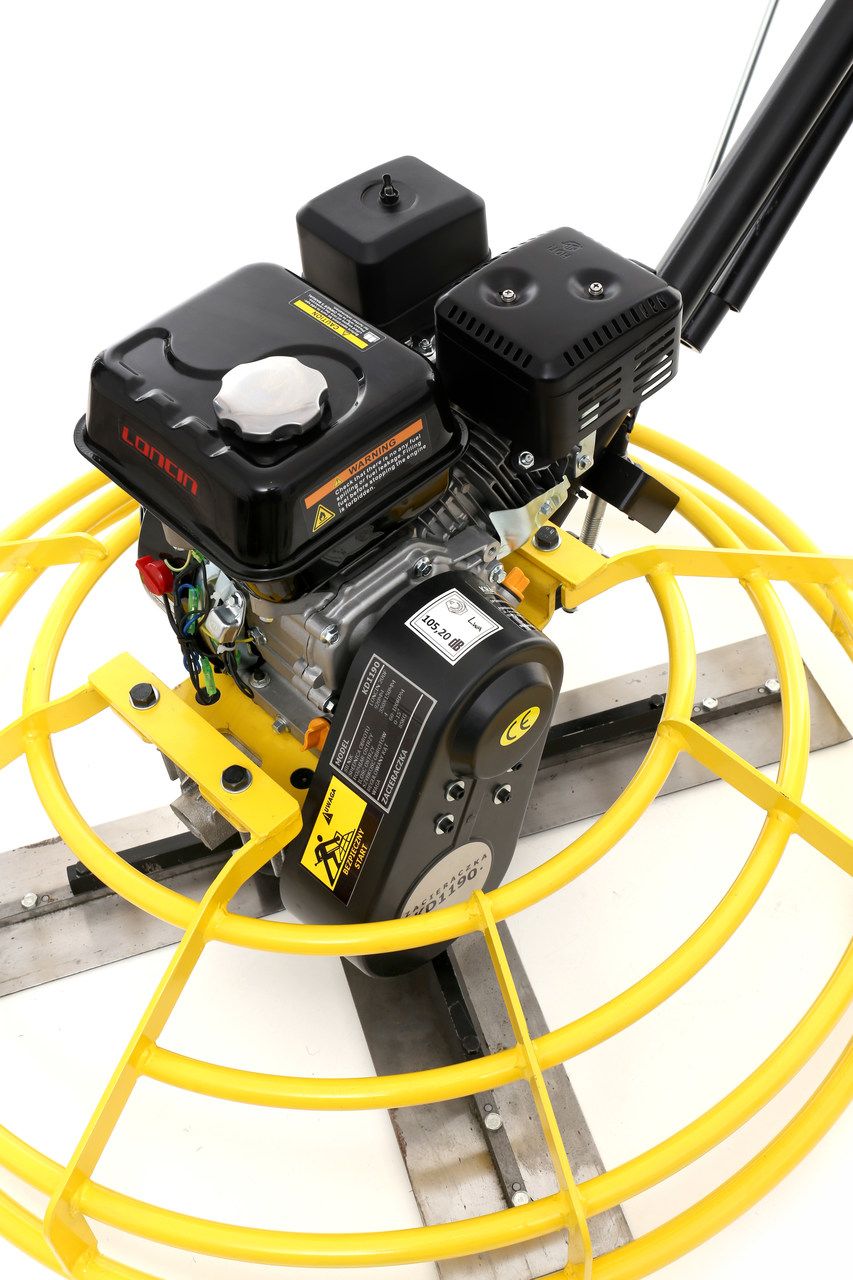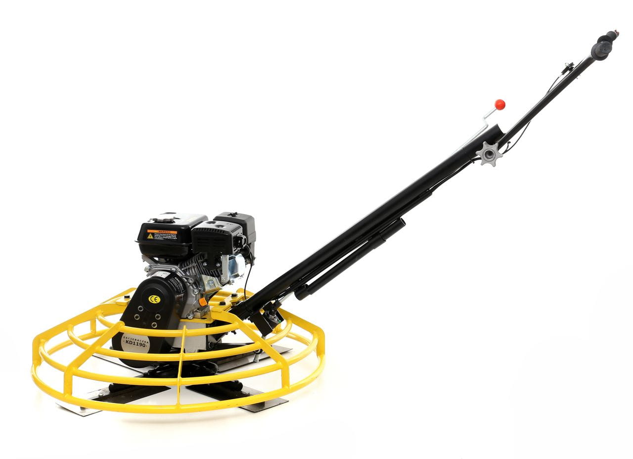 KD1190 to spalinowa zacieraczka jednotarczowa przeznaczona do mechanicznego zacierania posadzek i nawierzchni betonowych. Urządzenie napędza silnik benzynowy LINCIN 200F o mocy 6,5 KM, a szeroka średnica obrotu 920 mm pozwala na wydajną pracę na dużych powierzchniach bez konieczności ręcznego zacierania.