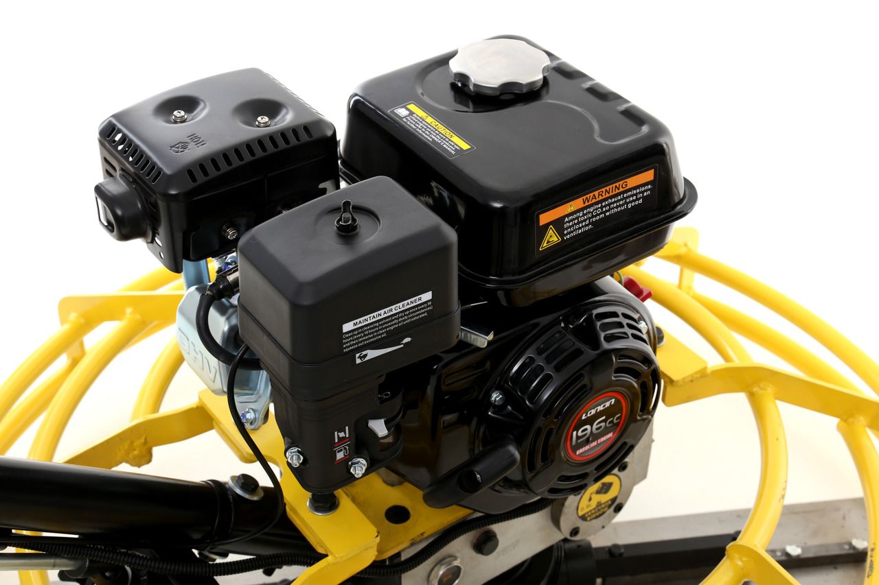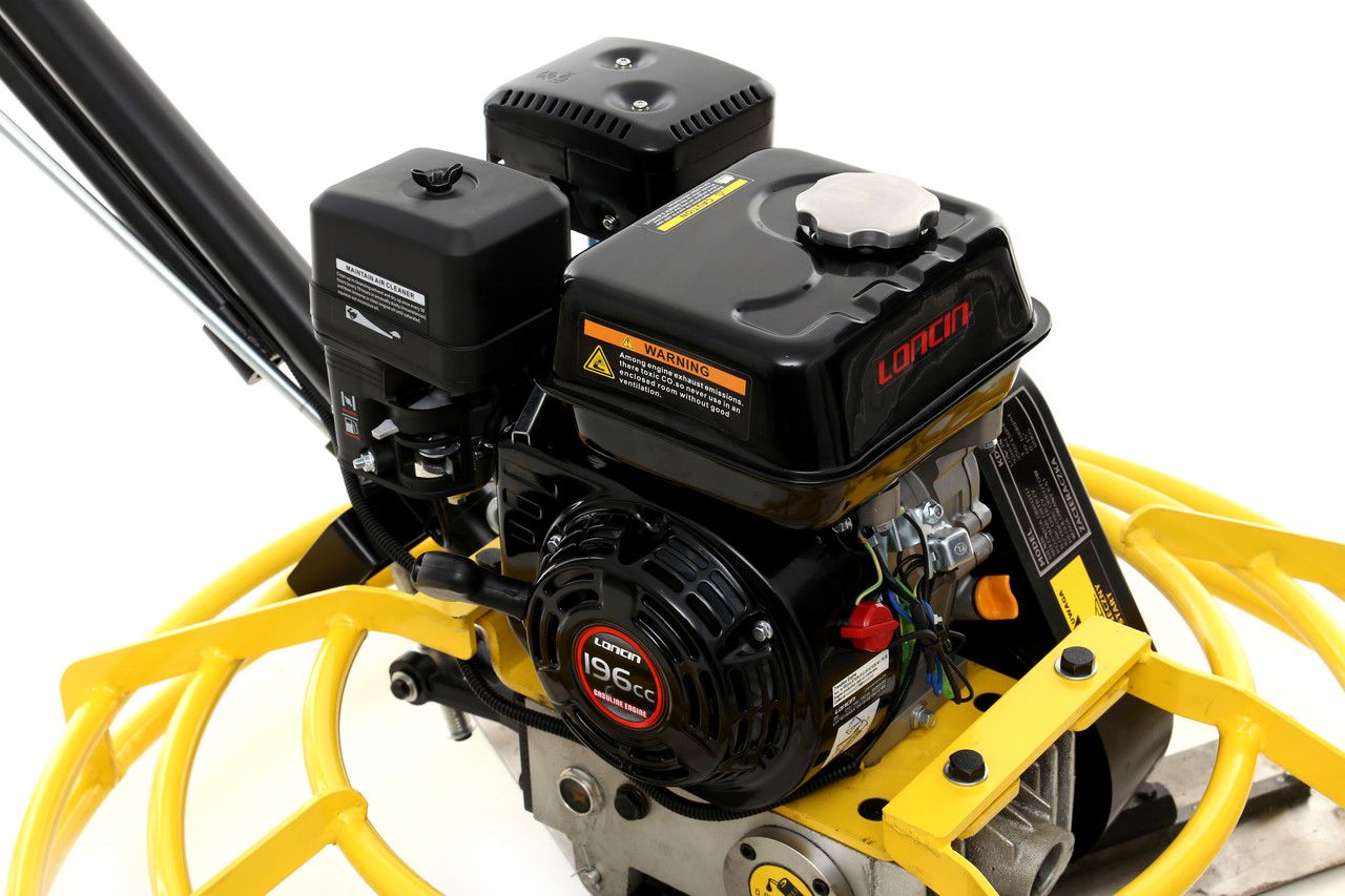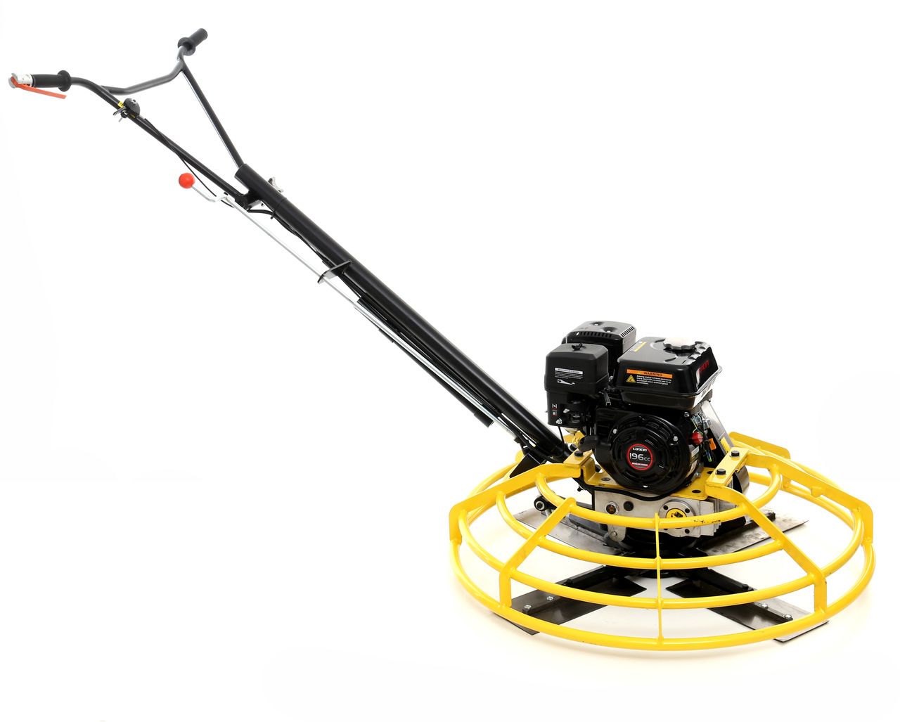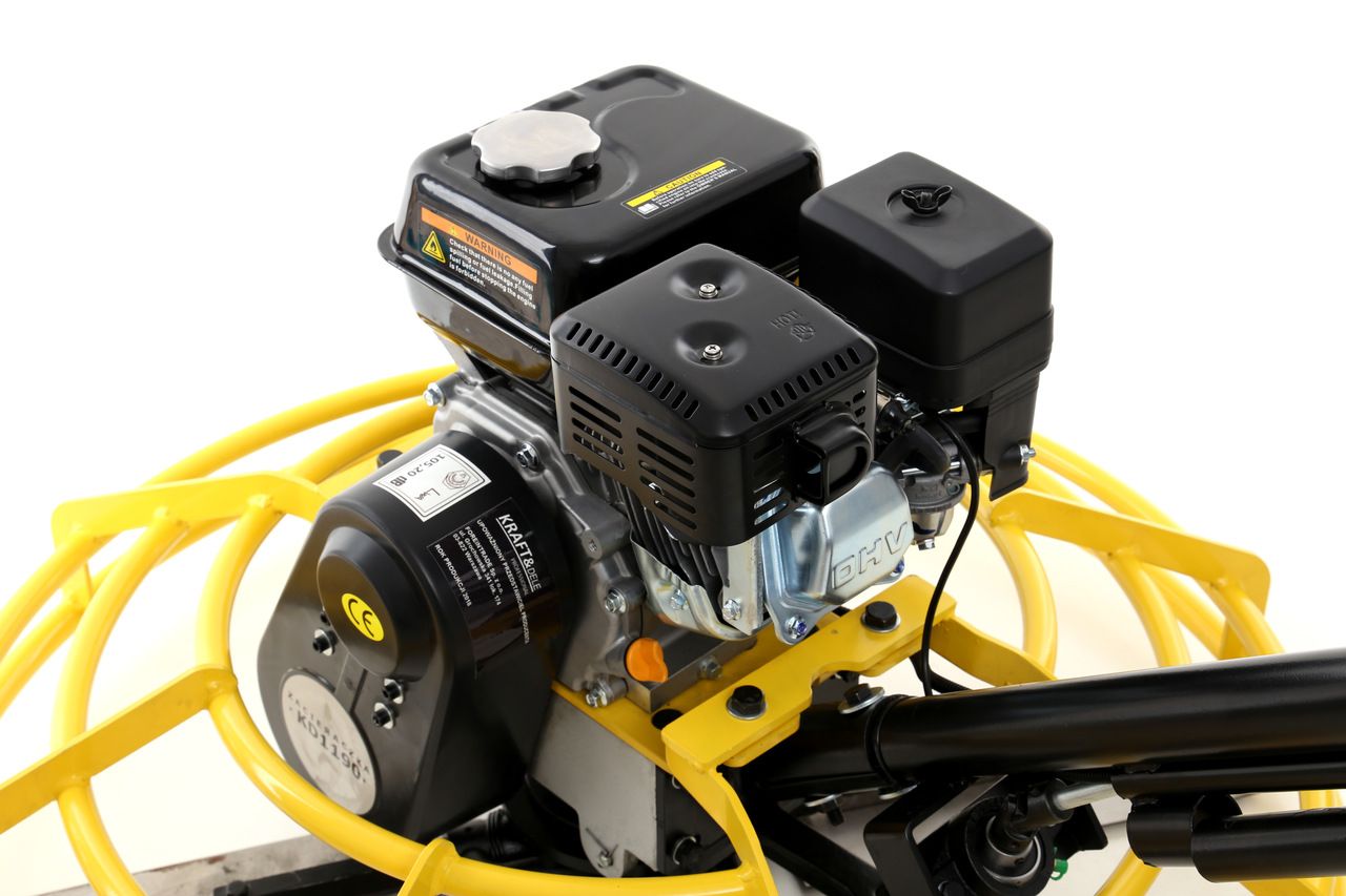 KD1190 to spalinowa zacieraczka jednotarczowa przeznaczona do mechanicznego zacierania posadzek i nawierzchni betonowych. Urządzenie napędza silnik benzynowy LINCIN 200F o mocy 6,5 KM, a szeroka średnica obrotu 920 mm pozwala na wydajną pracę na dużych powierzchniach bez konieczności ręcznego zacierania.