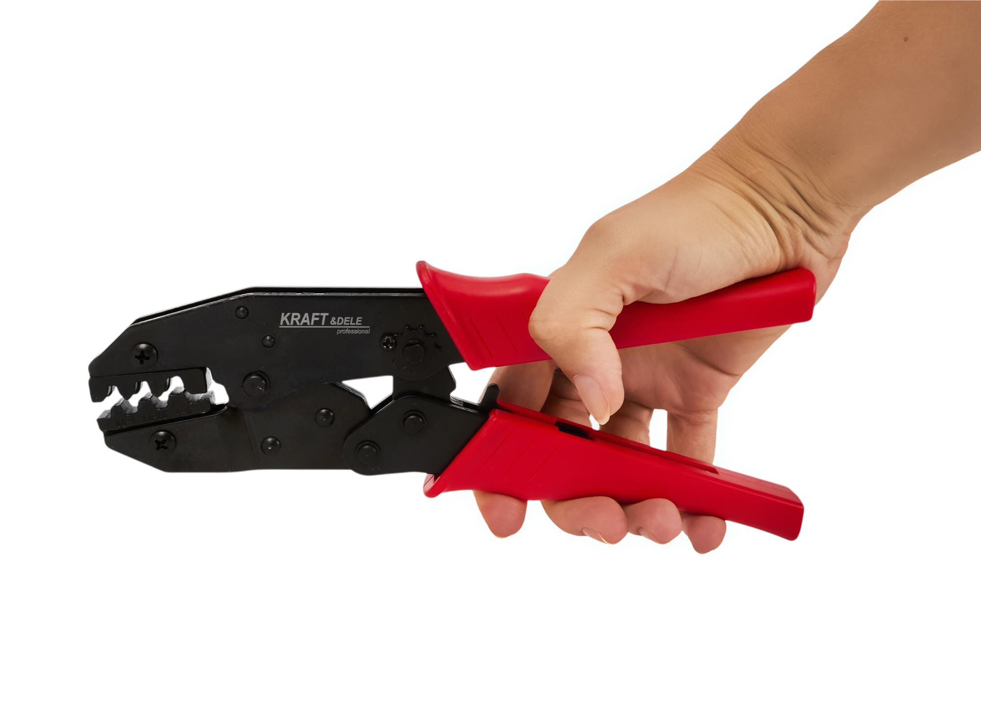 Ręczna zaciskarka do tulejek kablowych przeznaczona do zaciskania końcówek przewodów w zakresie przekrojów 0,25–6 mm². Narzędzie wyposażone w samonastawny system szczęk oraz mechanizm blokujący, zapewniające powtarzalny i pewny zacisk bez ryzyka niedociśnięcia lub uszkodzenia tulejki.
