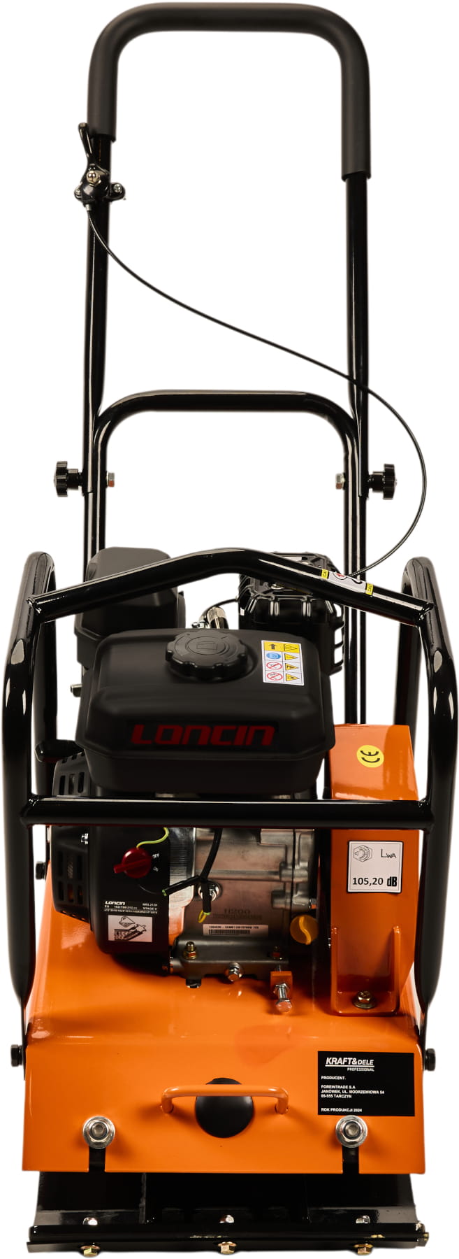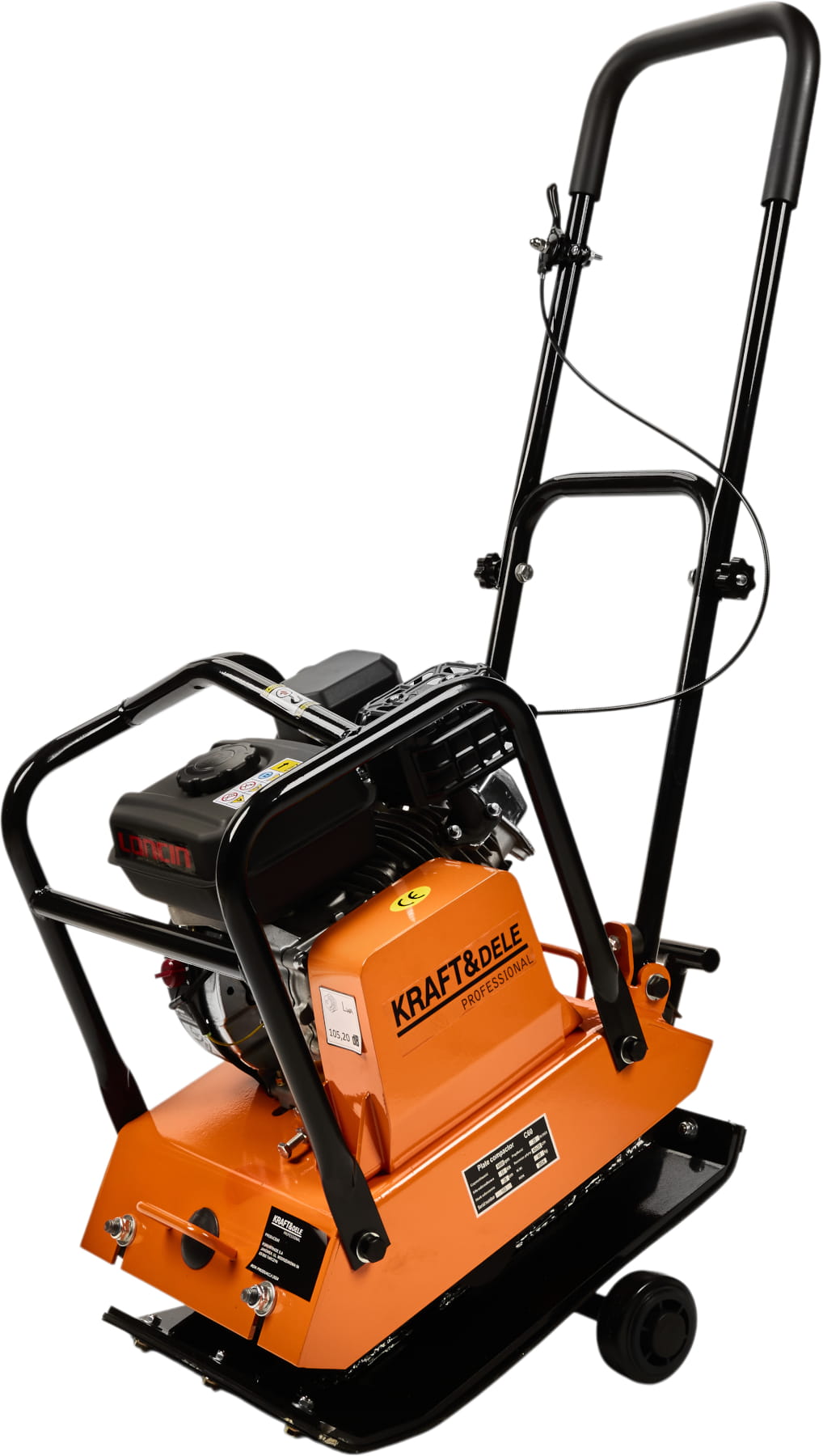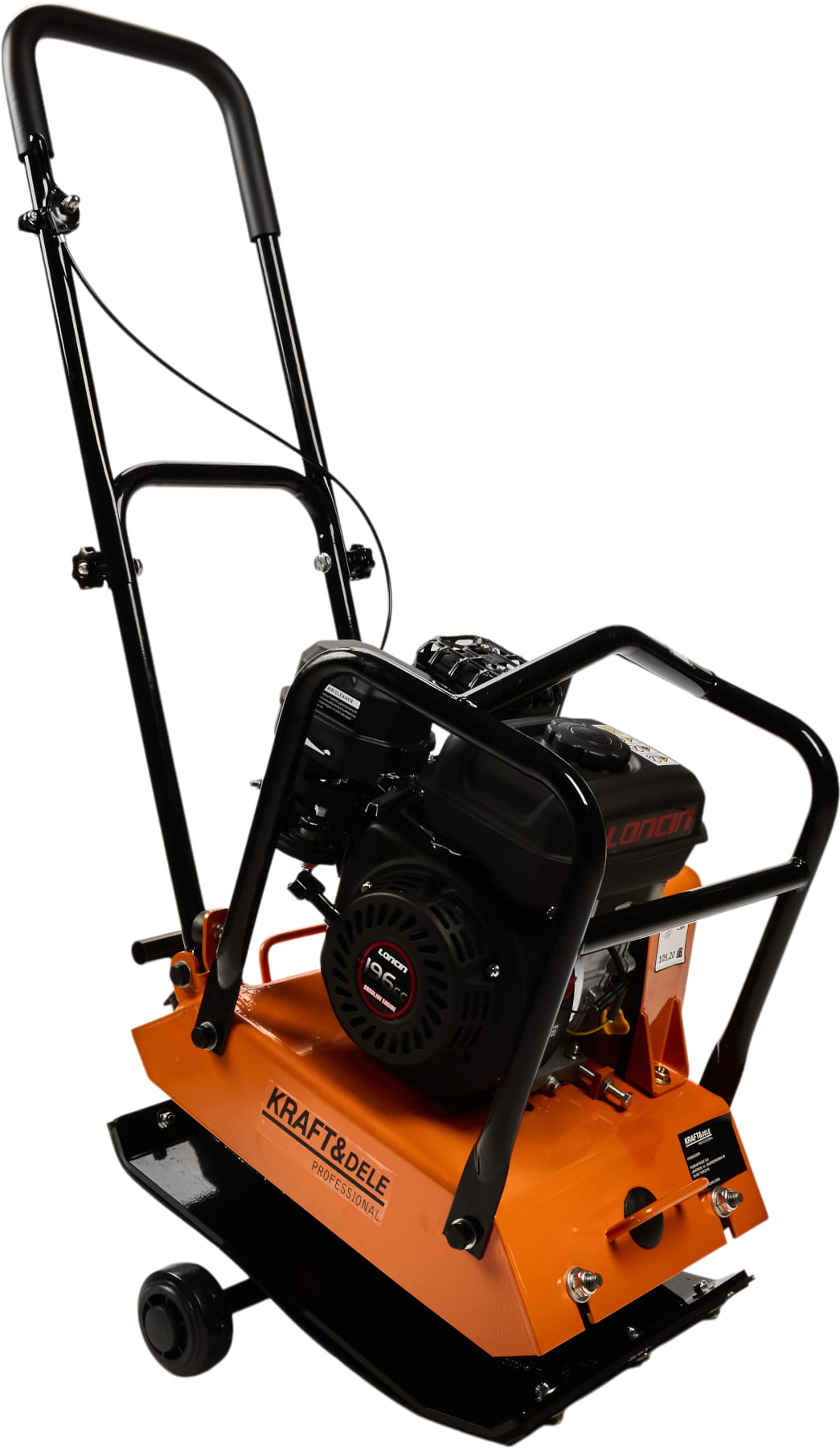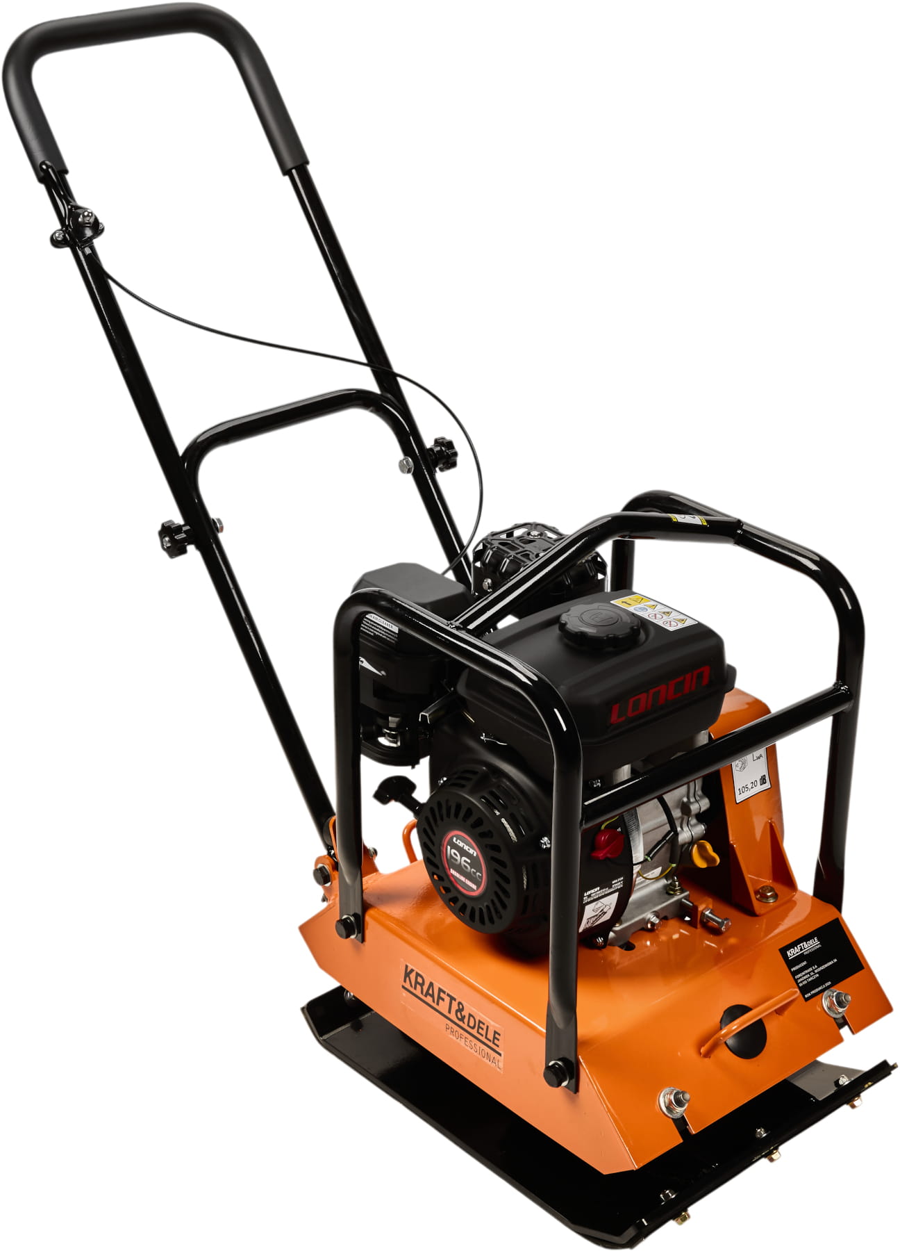 KD1196 to zagęszczarka płytowa z jednocylindrowym silnikiem benzynowym 7HP, przeznaczona do zagęszczania gruntu, podbudów drogowych oraz nawierzchni asfaltowych. Siła odśrodkowa 15 kN i częstotliwość 4900 vpm zapewniają skuteczne ubijanie na głębokość do 28 cm. Zestaw obejmuje gumową matę do pracy przy kostce brukowej oraz stelaż z kołami transportowymi.