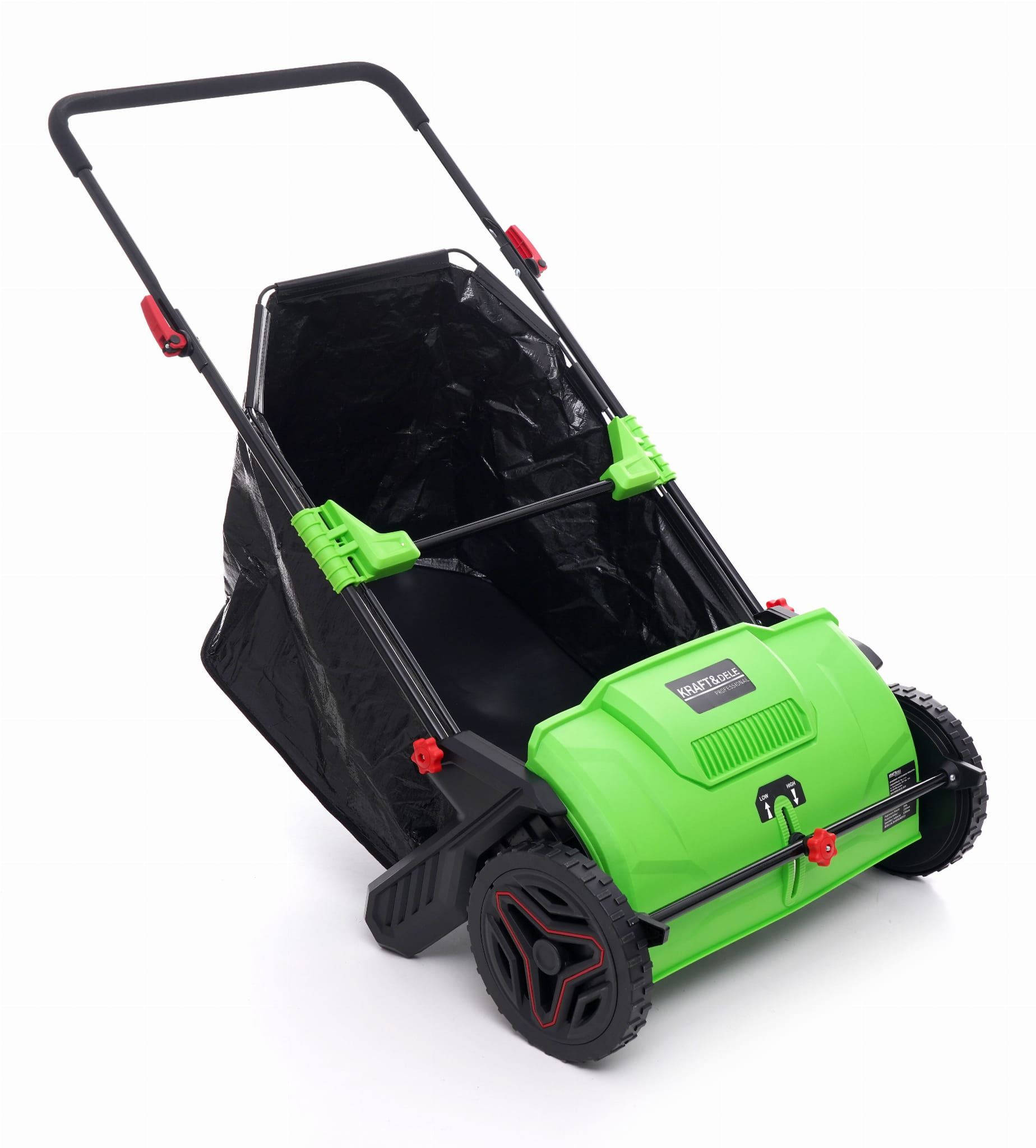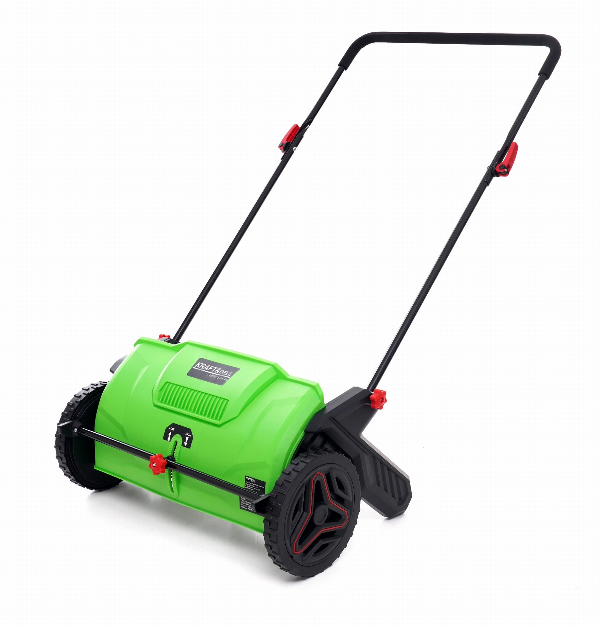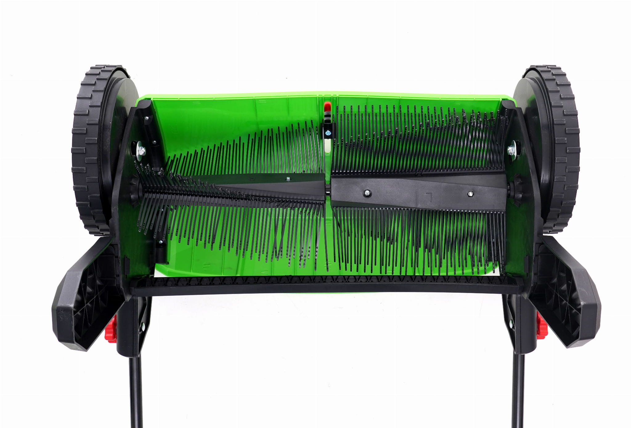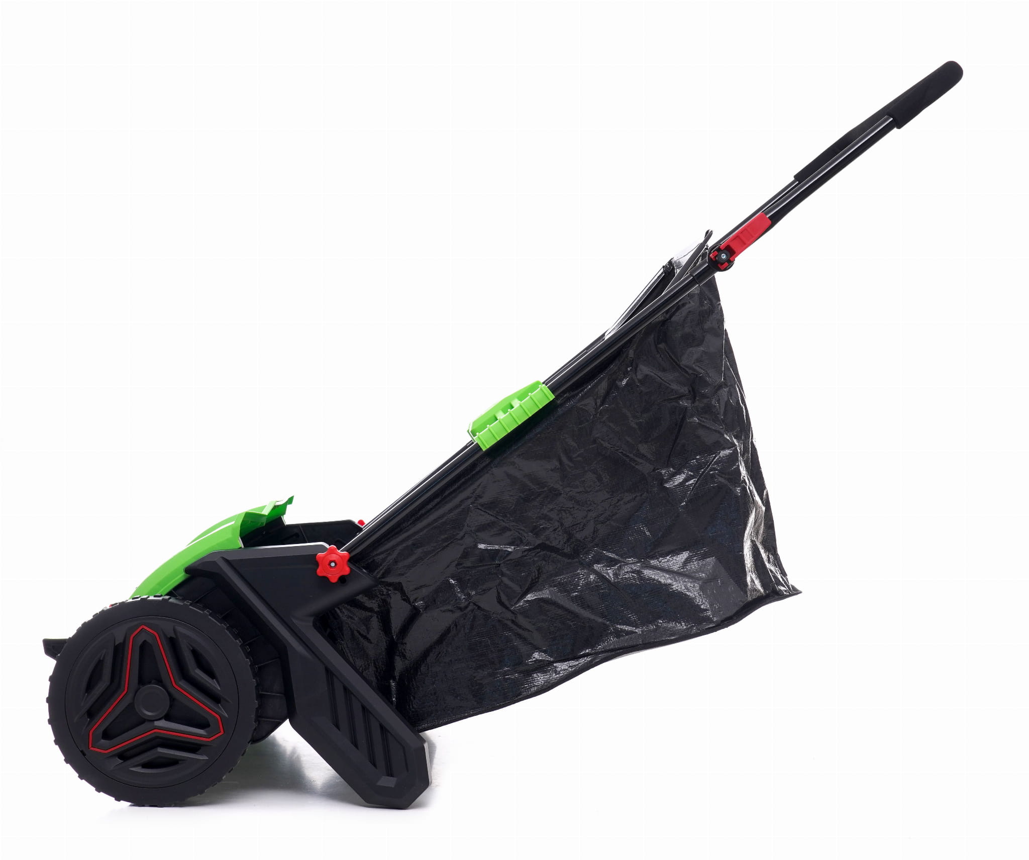 Mechaniczna zamiatarka ręczna przeznaczona do czyszczenia ścieżek ogrodowych, podjazdów i patio. Napęd wyłącznie siłą własną użytkownika — bez kabla, akumulatora ani paliwa. Układ trzech szczotek (dwie boczne okrągłe i wałek centralny) zbiera liście, piasek, żwir i drobne zanieczyszczenia bezpośrednio do kosza o pojemności 100 litrów.