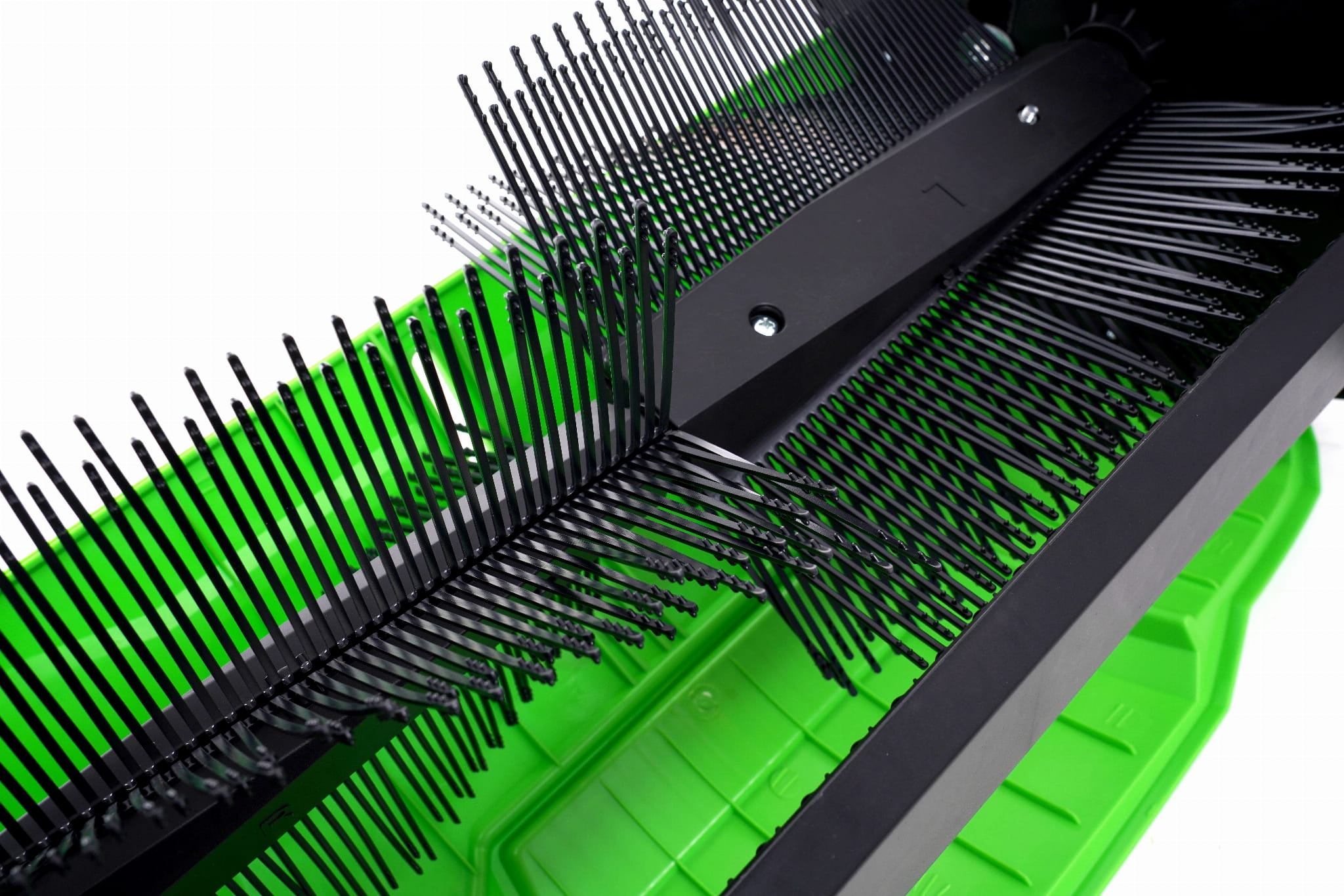 Dwie szczotki boczne okrągłe zgarniają zanieczyszczenia z krawędzi i narożników, a centralny wałek transportuje je do kosza. Taki układ pozwala na skuteczne zamiatanie bez konieczności wielokrotnego przejeżdżania po tej samej powierzchni.