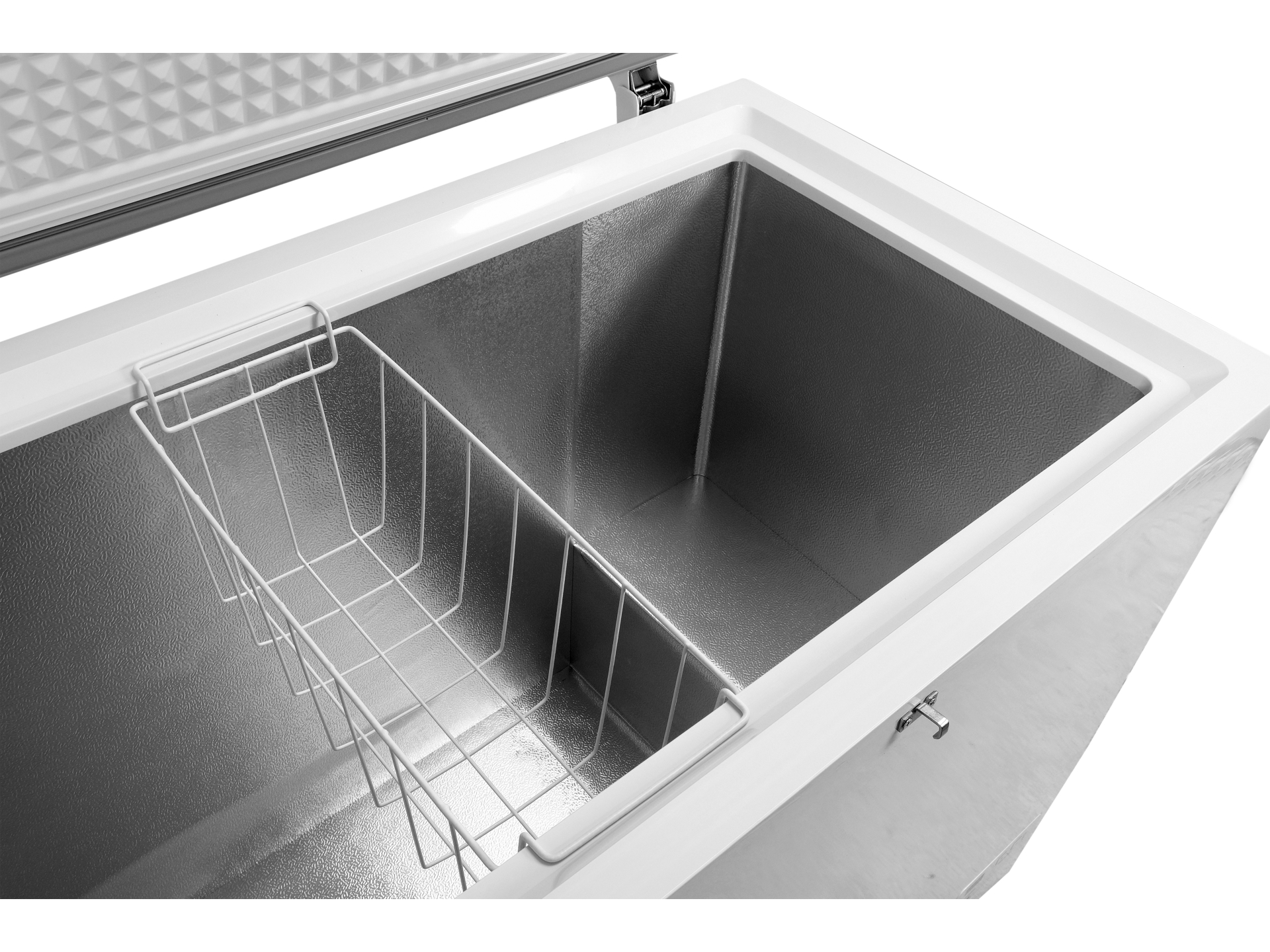 Niemniej Zamrażarka Chłodziarka Skrzyniowa posiada funkcję odszraniania, w przypadku gromadzenia się szronu zalecam regularne odmrażanie. Wyłącz zamrażarkę, pozostaw drzwi otwarte i pozwól lodowi stopnieć, a następnie oczyść wnętrze przed ponownym włączeniem i użyciem.