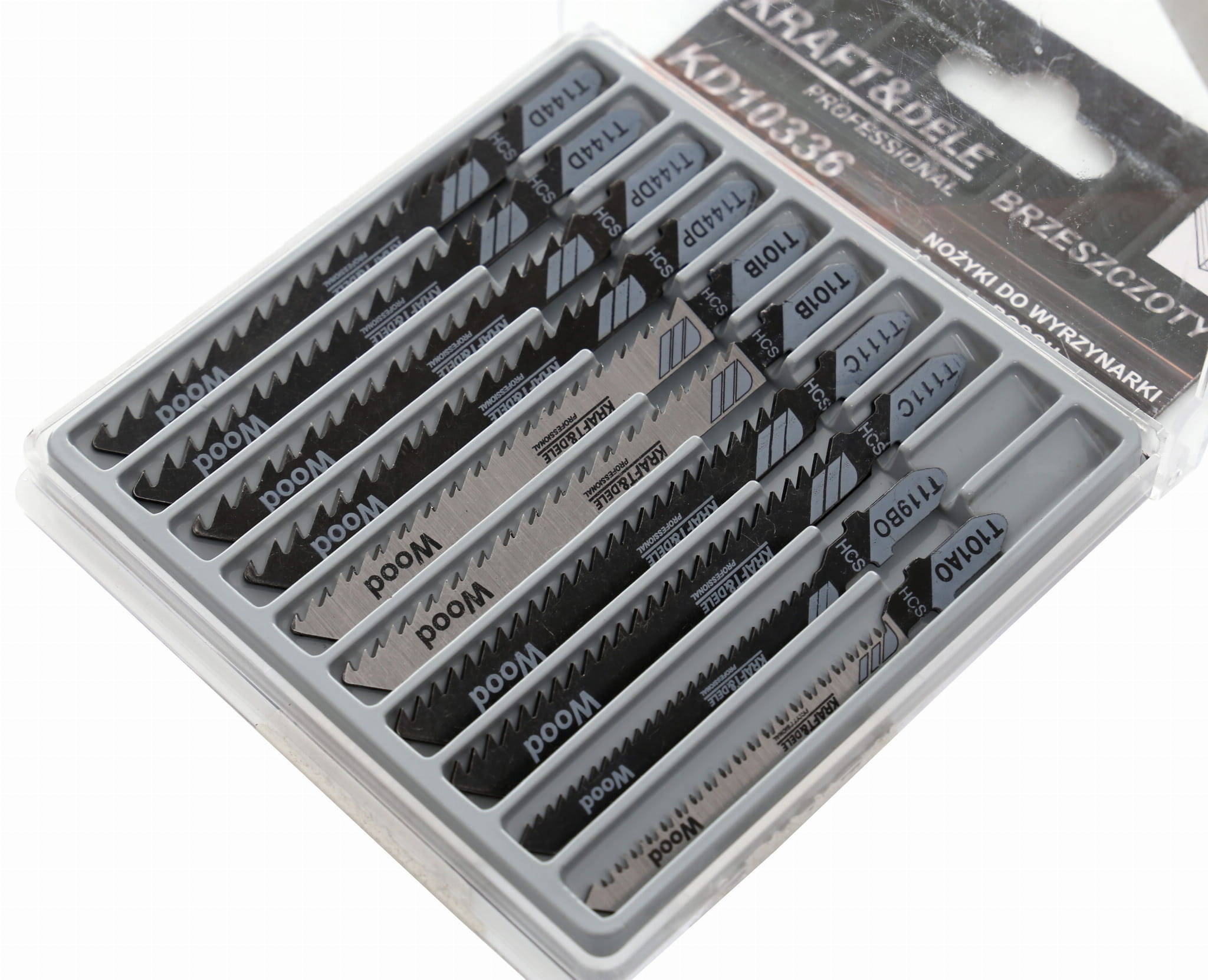 Komplet 10 brzeszczotów do wyrzynarek z mocowaniem typu T (standard Bosch), wykonanych ze stali HCS. Zestaw zawiera 6 różnych typów ostrzy przeznaczonych do obróbki drewna — od cięć szybkich i zgrubnych po precyzyjne cięcia krzywoliniowe. Dzięki zróżnicowaniu typów brzeszczotów jeden komplet pokrywa większość typowych zadań stolarskich i ciesielskich.