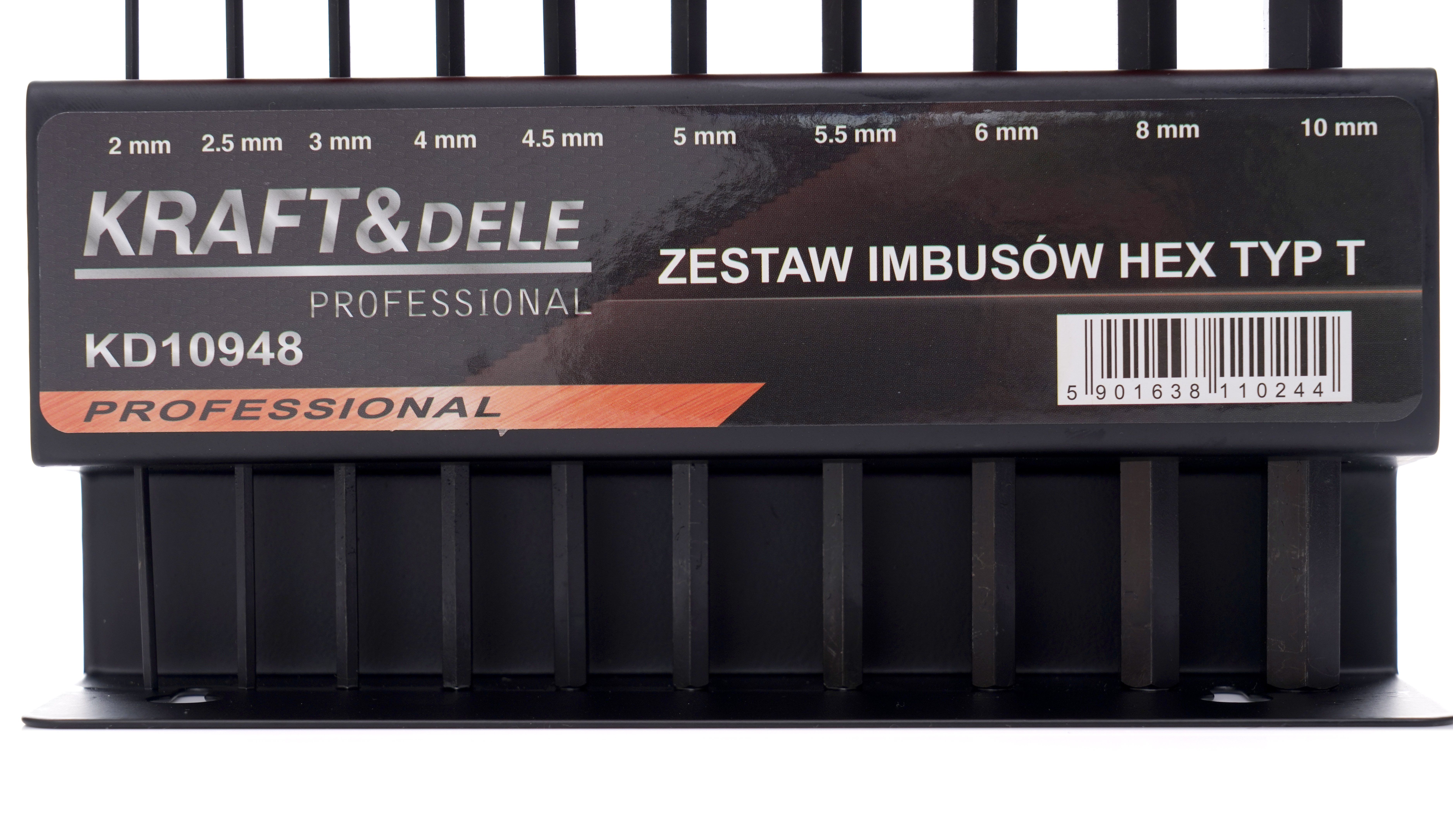 Zestaw 10 imbusów na stojaku KD10948 to praktyczne klucze sześciokątne IMBUS typu T do sprawnego odkręcania i dokręcania śrub z gniazdem sześciokątnym. Ergonomiczne uchwyty poprawiają kontrolę i komfort pracy, a stojak ułatwia szybkie sięganie po właściwy rozmiar.
