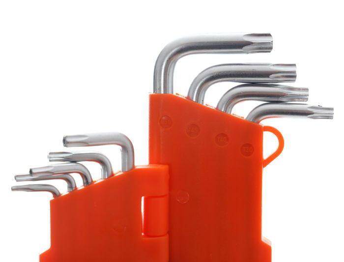 Masz pod ręką zestaw kluczy IMBUS obejmujący końcówki kulkowe i gwiazdkowe, co ogranicza liczbę potrzebnych narzędzi.