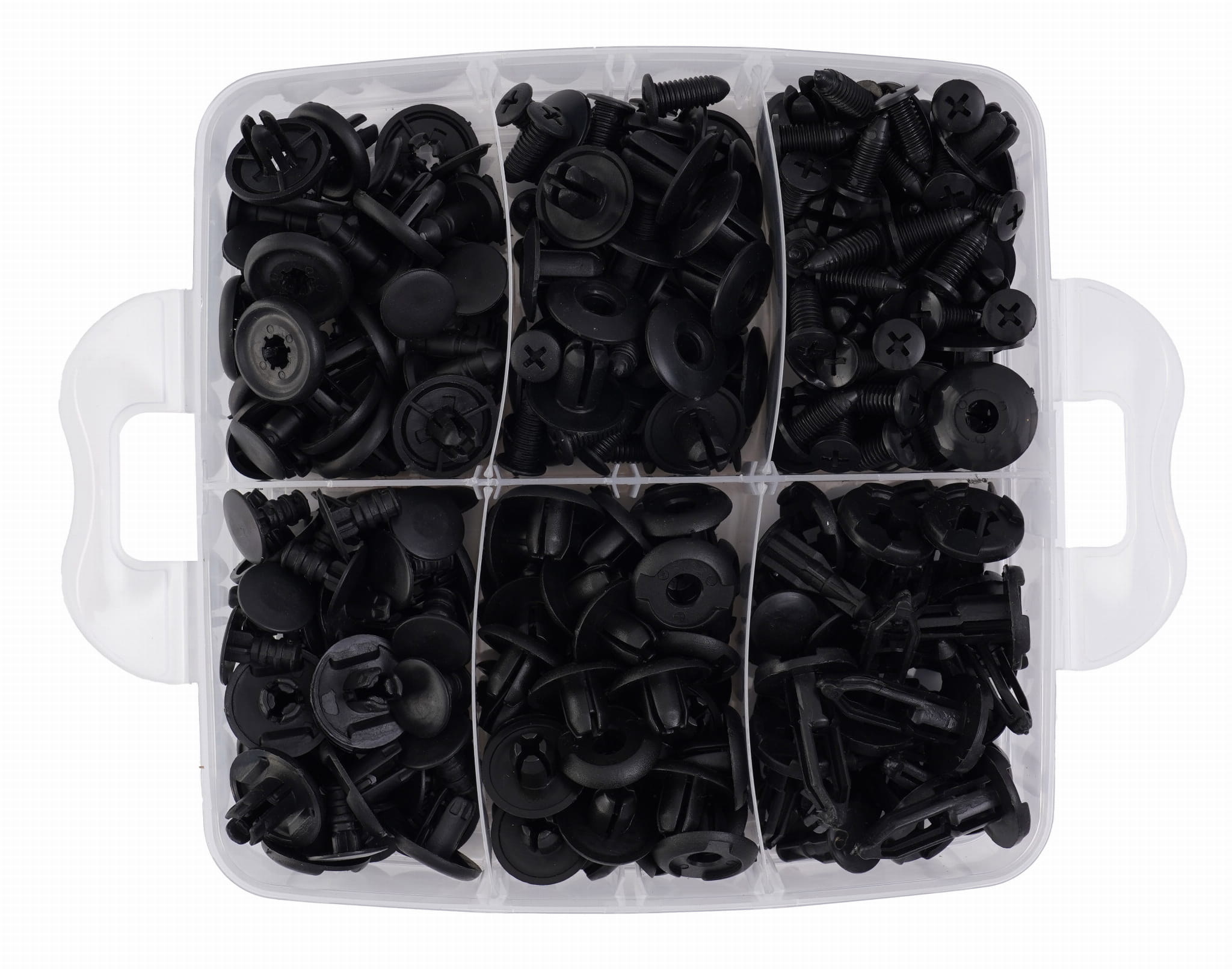 Zestaw zawiera 16 najpopularniejszych typów spinek stosowanych w samochodach różnych producentów. Szeroki wybór rozmiarów zmniejsza ryzyko konieczności osobnego poszukiwania konkretnego elementu podczas naprawy tapicerki lub demontażu elementów nadwozia.
