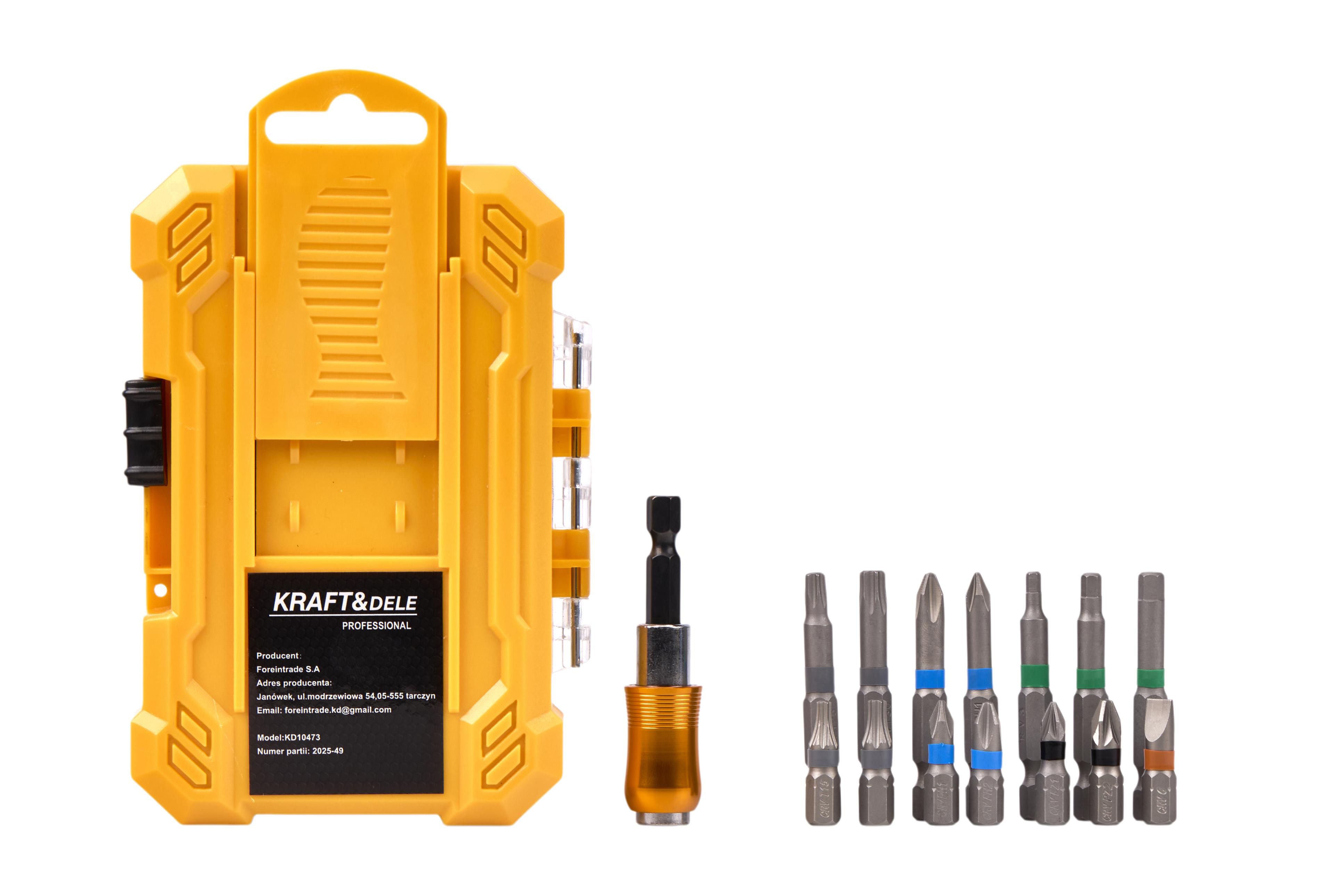 Zestaw bitów KRAFT&DELE KD10473 to praktyczny komplet końcówek do codziennych prac montażowych i serwisowych. Różne typy i rozmiary bitów pomagają szybko dobrać właściwą końcówkę do wkrętów, bez szukania zamienników. Całość jest w wygodnym opakowaniu, które ułatwia kontrolę zawartości.