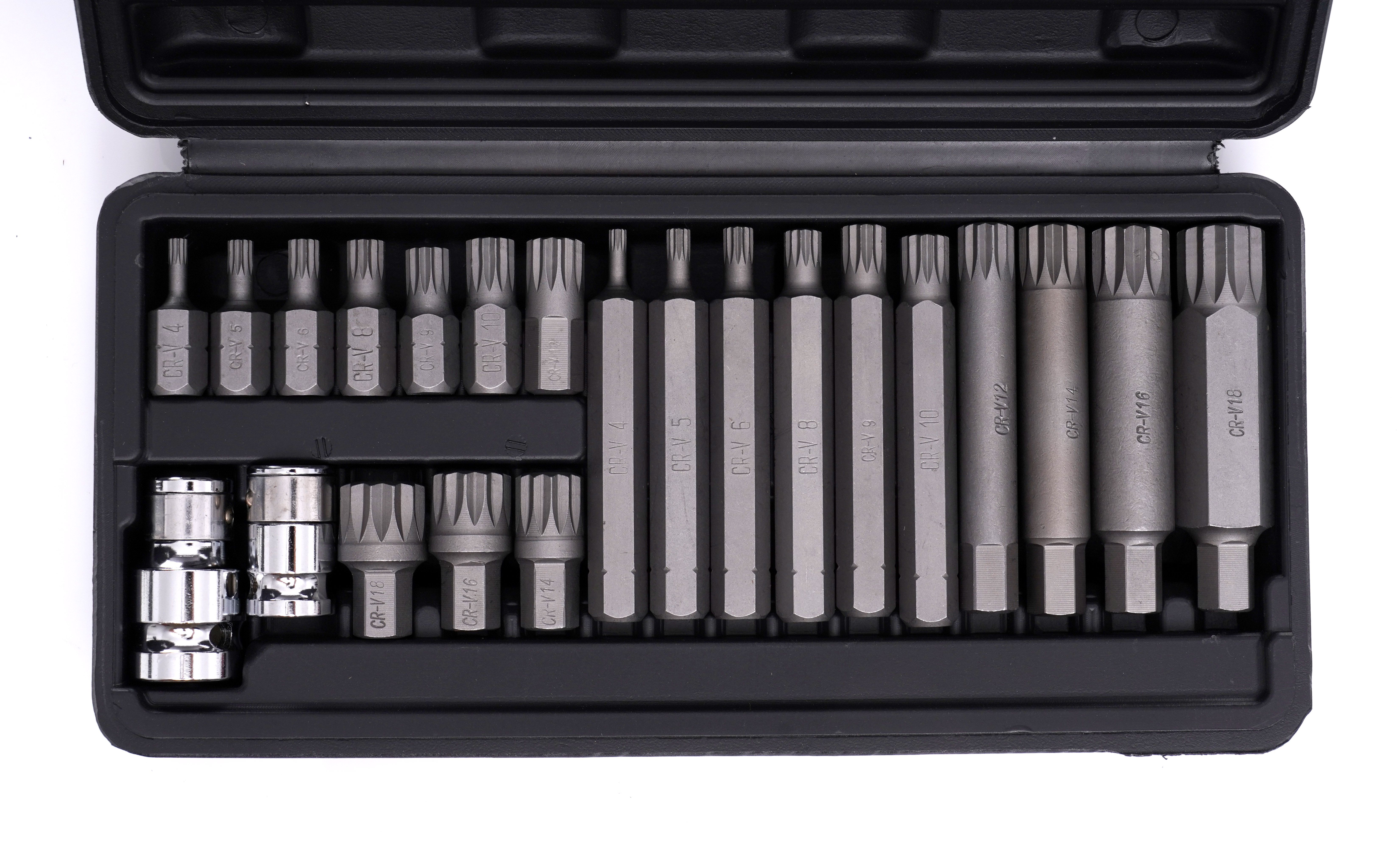 Zestaw bitów M4-M18 SPLINE 22 el. KD10539 / KD10539 / KRAFT&DELE to praktyczny komplet do odkręcania śrub specjalnych typu imbus, torx i spline. Sprawdzi się w pracy serwisowej, gdy liczy się szybki dobór końcówki i pewne przeniesienie momentu na śrubę.