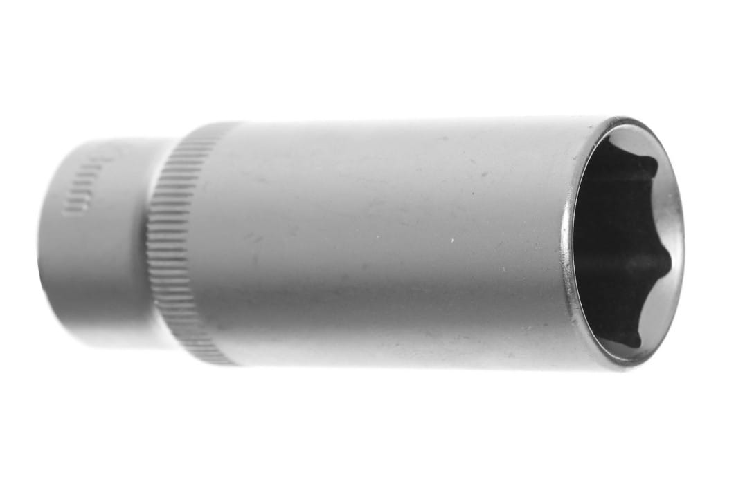 Długość 63 mm to cecha odróżniająca nasadki długie od standardowych (zwykle 30–38 mm). Pozwala dosięgnąć śrub schowanych w głębokich tulejach, obudowach silników, głowicach cylindrów czy ramach pojazdów, gdzie krótka nasadka nie obejmuje łba śruby.