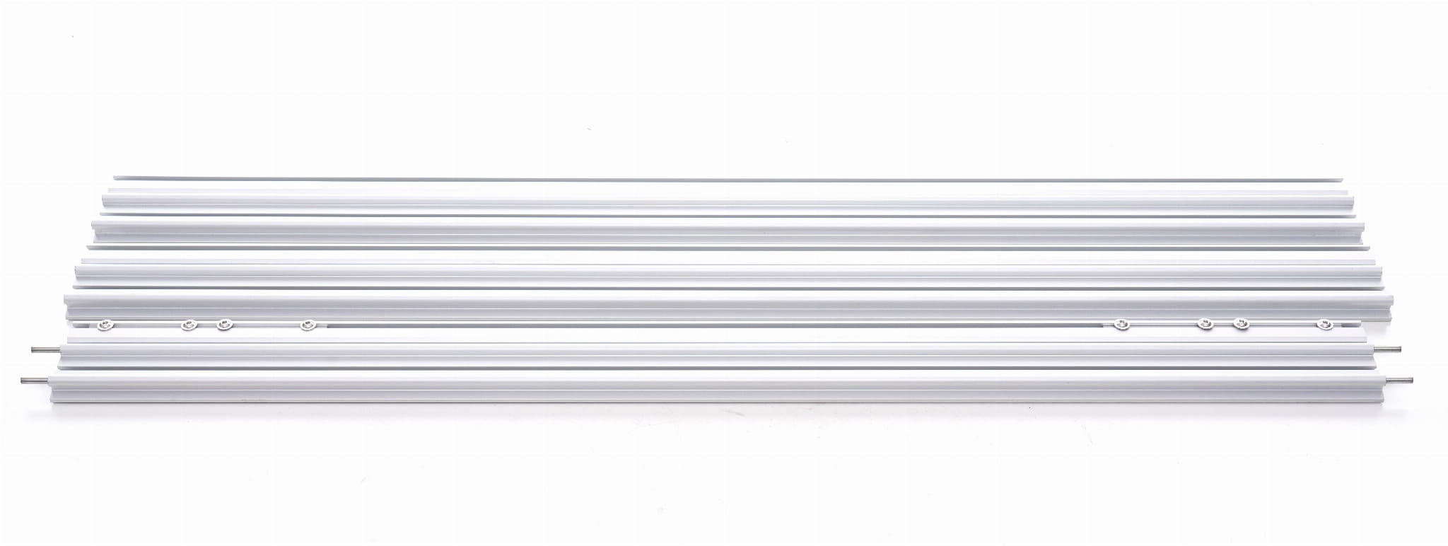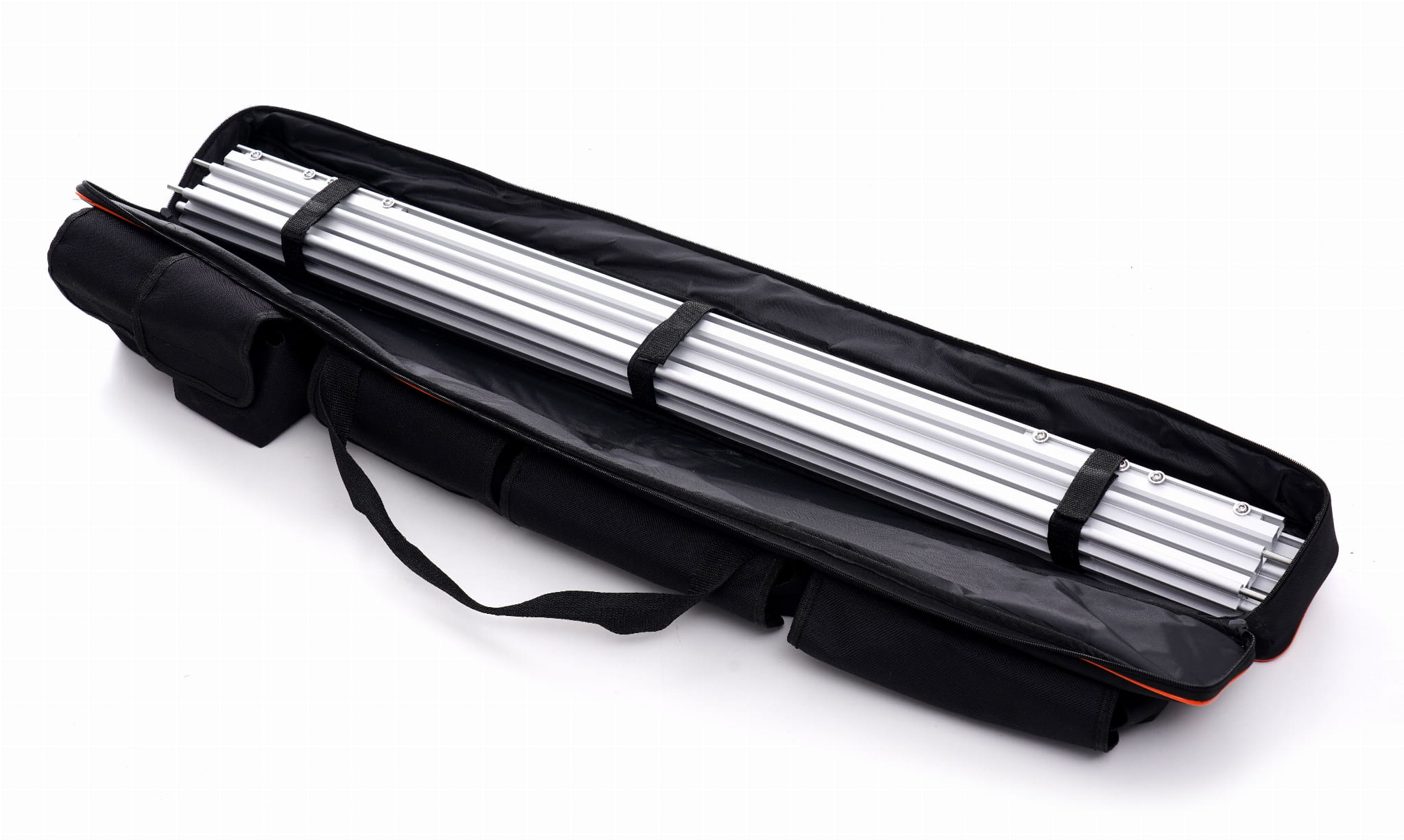 Trzy szyny o długości 1125 mm każda łączą się w jedną prowadnicę o łącznej długości 3375 mm. Modułowa budowa umożliwia transport i przechowywanie bez konieczności posiadania dużej przestrzeni — każda szyna mieści się w standardowej torbie transportowej.