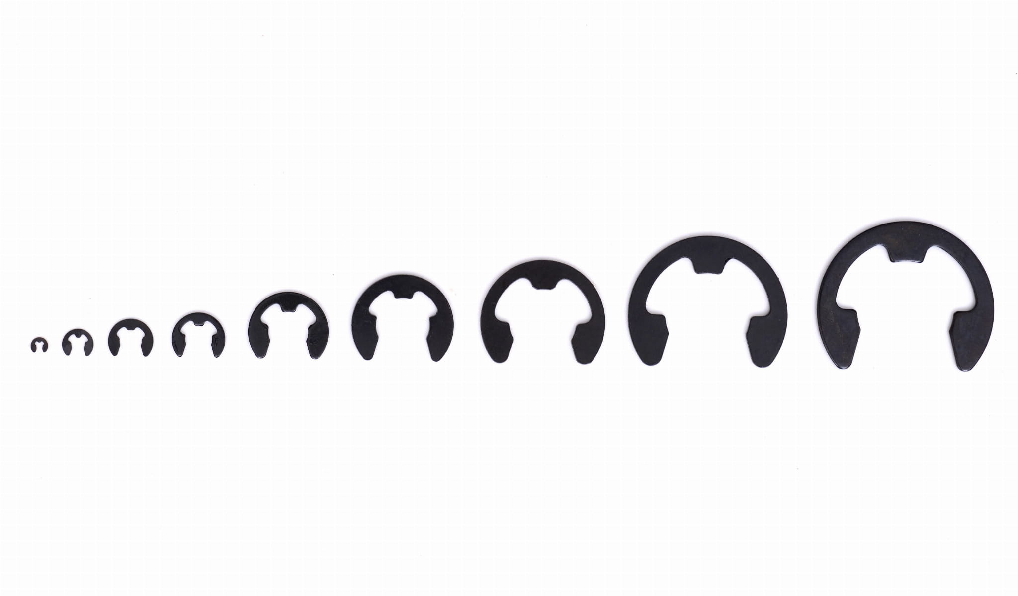 Rozmiar pierścienia E-Clip odpowiada nominalnej średnicy wałka lub trzpienia, na którym ma być osadzony. Przed montażem należy upewnić się, że wałek posiada fabrycznie wykonany rowek o odpowiedniej głębokości i szerokości — pierścień osadzony bez rowka lub w rowku o nieprawidłowych wymiarach nie zapewnia wymaganej siły osiowego zatrzymania elementu.