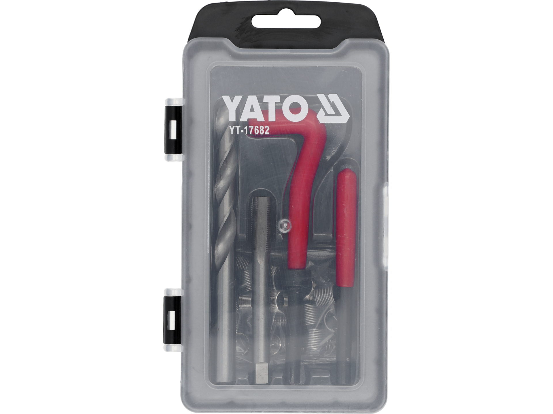 Zestaw zawiera wkładki gwintowe różnej długości, gwintownik do przygotowania otworu, narzędzie do instalacji wkładek oraz klucz montażowy. Kompletność zestawu umożliwia wykonanie naprawy bez konieczności dokupowania dodatkowych komponentów.