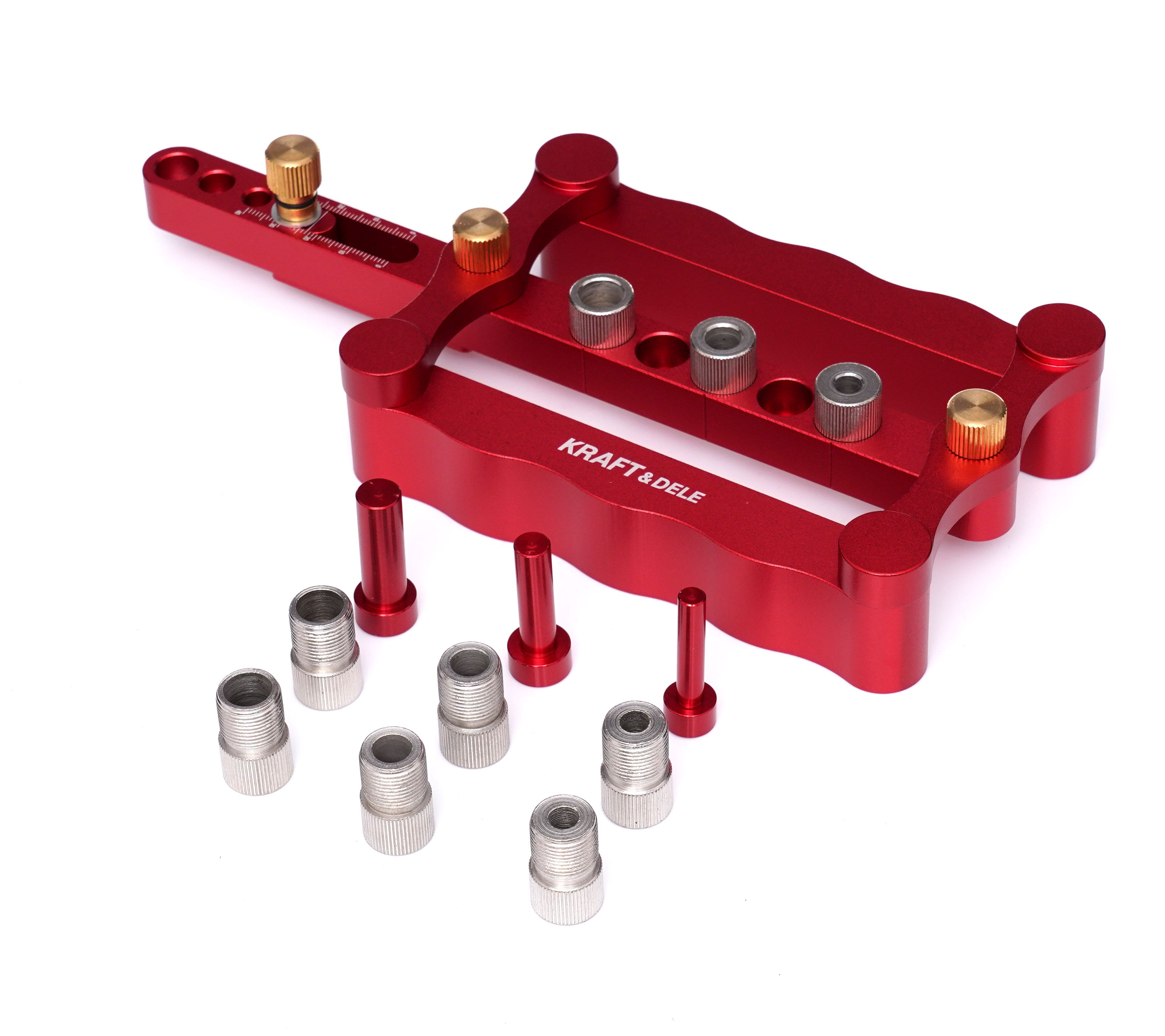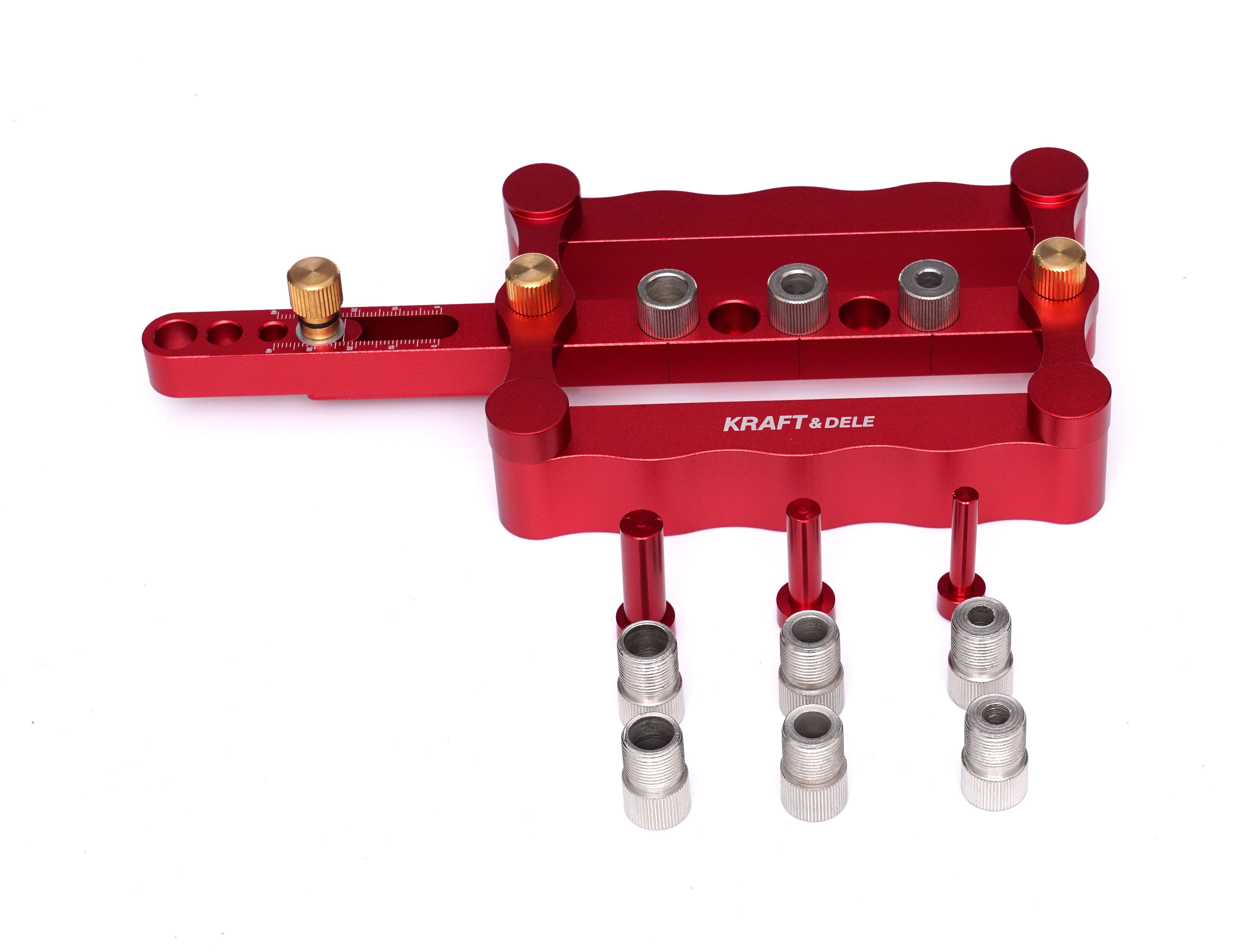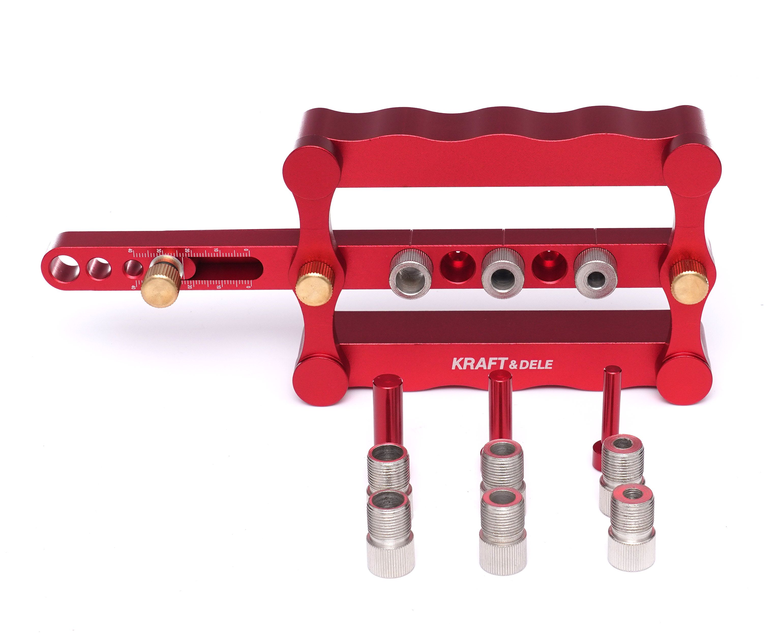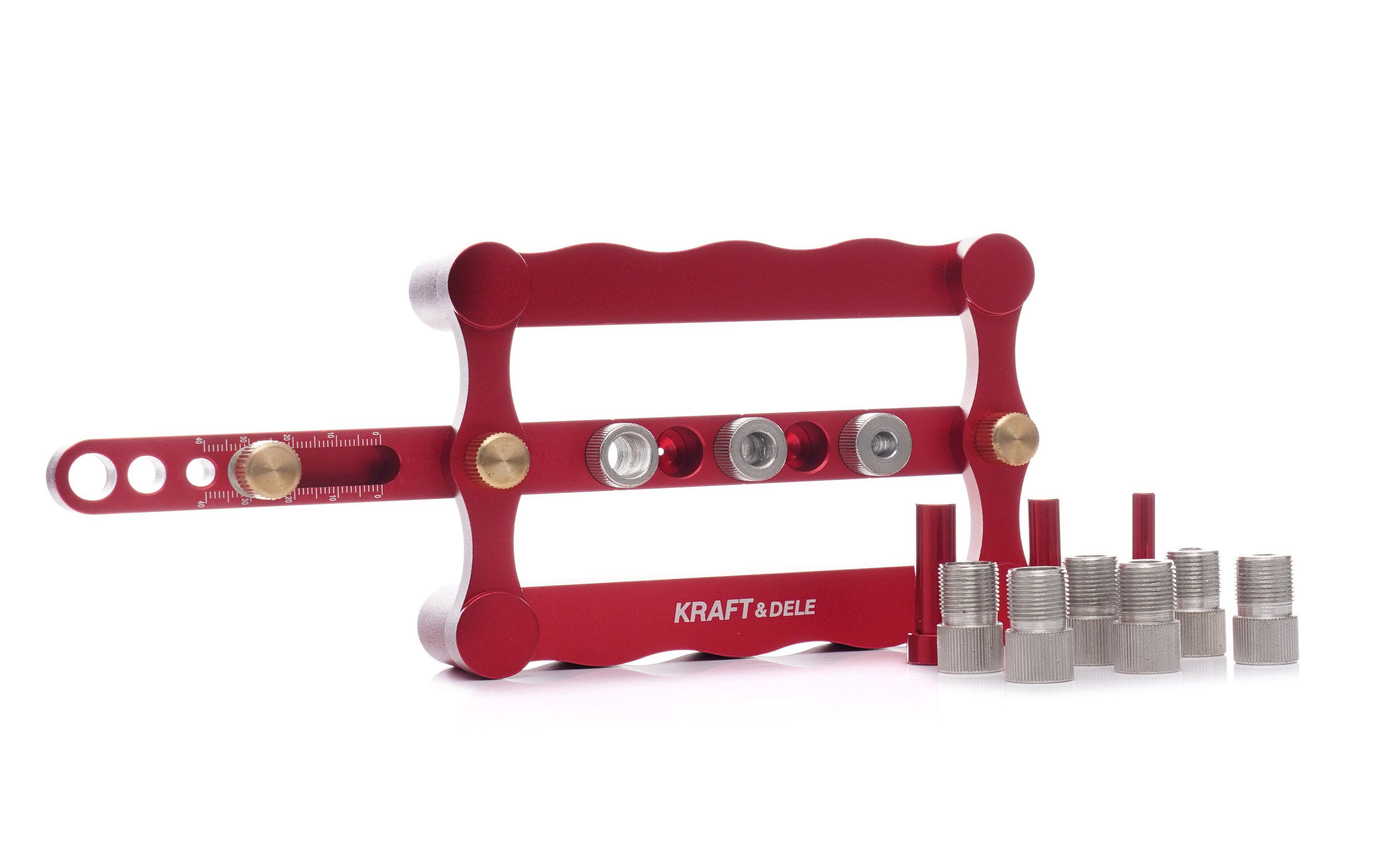 Zestaw do połączeń kołkowych Kraft&Dele KD10572 ułatwia wyznaczanie miejsc pod kołki i wykonanie powtarzalnych połączeń w drewnie oraz płytach meblowych. Sprawdza się zarówno przy wierceniu na płaszczyźnie, jak i na krawędziach, co przyspiesza pracę i ogranicza ryzyko błędów.