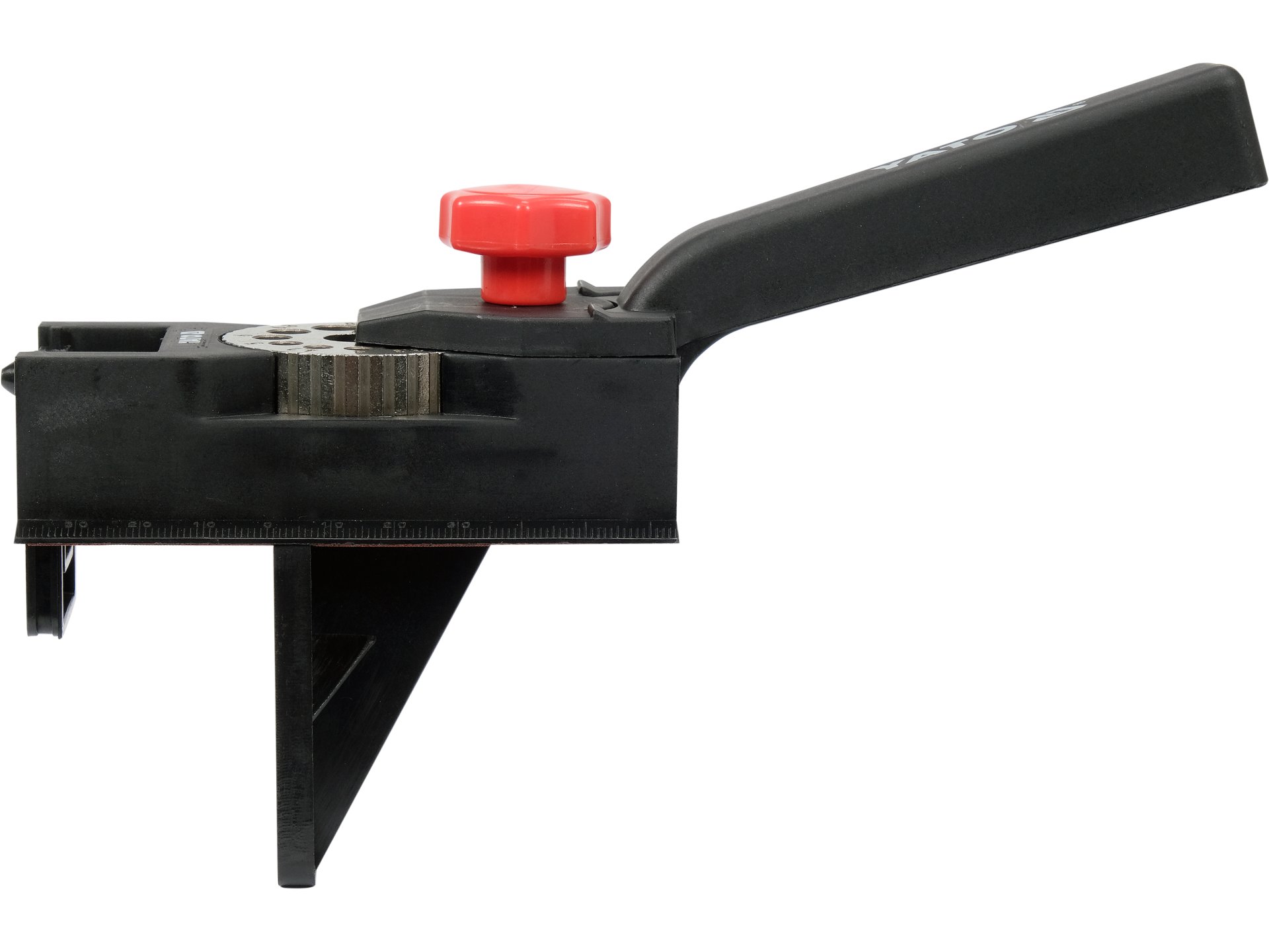 Metalowy szablon zapewnia powtarzalność otworów i eliminuje ryzyko przesunięcia wiertła podczas pracy. Prowadnica pozwala na precyzyjne ustawienie punktu wiercenia, co jest kluczowe przy łączeniu płyt meblowych i elementów konstrukcyjnych, gdzie nawet milimetrowe odchylenie może uniemożliwić montaż.