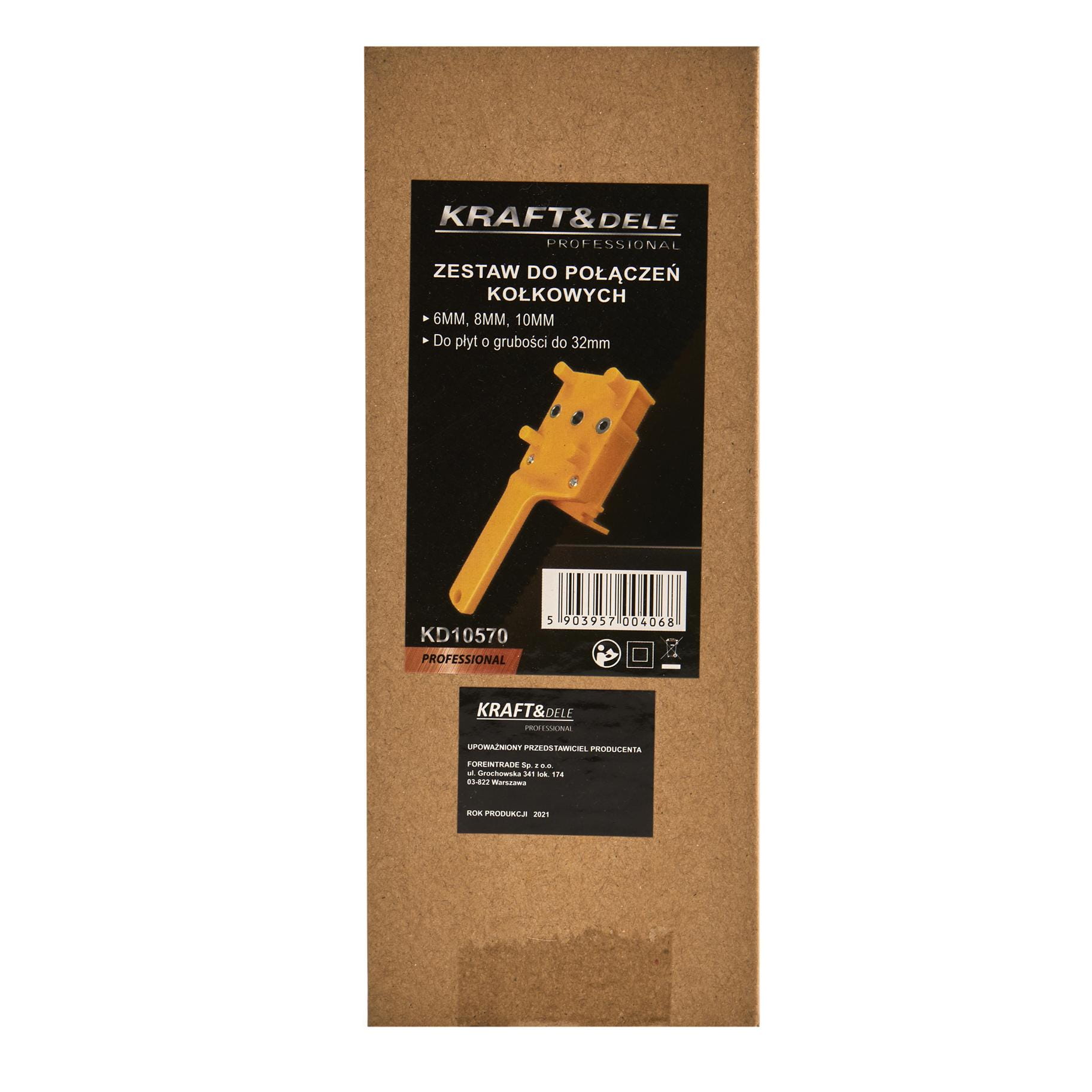 KD10570 to przyrząd stolarski służący do precyzyjnego wyznaczania i wiercenia otworów pod kołki drewniane. Umożliwia wykonywanie połączeń narożnikowych typu E i L w drewnie litym oraz płytach wiórowych o grubości do 30 mm, współpracując ze standardowymi wiertarkami ręcznymi i akumulatorowymi.