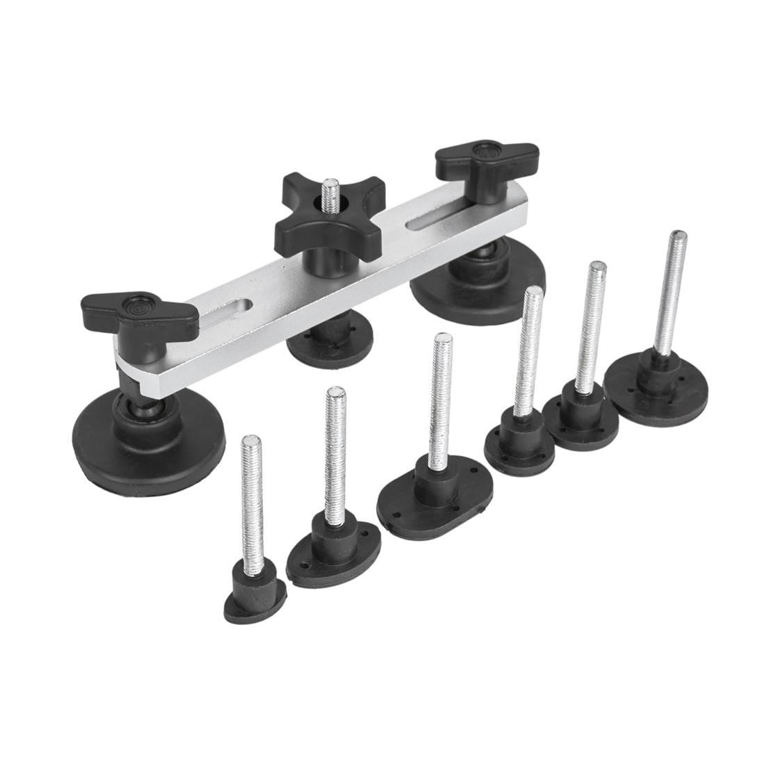 Różne średnice adapterów pozwalają dopasować narzędzie do rozmiaru wgniecenia — mniejsze adaptery sprawdzają się przy punktowych uszkodzeniach, większe przy rozleglejszych deformacjach powierzchni karoserii.