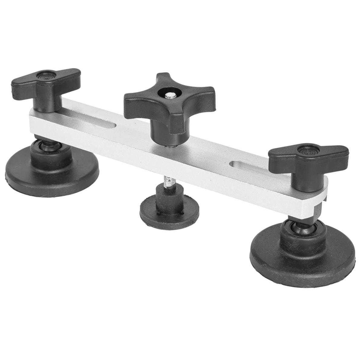 Mostek opiera się na karoserii przez miękkie gumowe podstawki, które rozkładają nacisk i nie zarysowują lakieru podczas pracy. Kontakt narzędzia z blachą jest kontrolowany na każdym etapie naprawy.