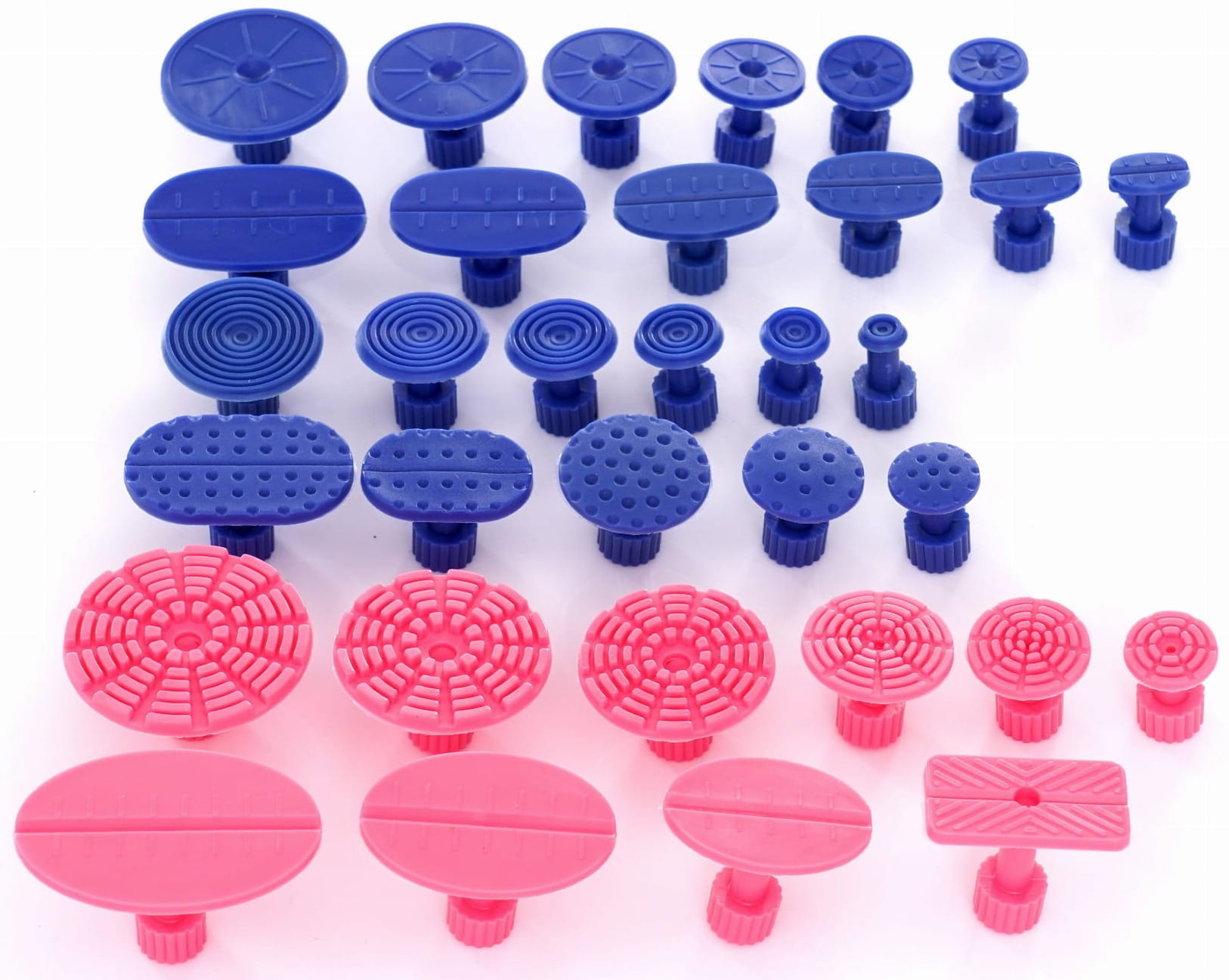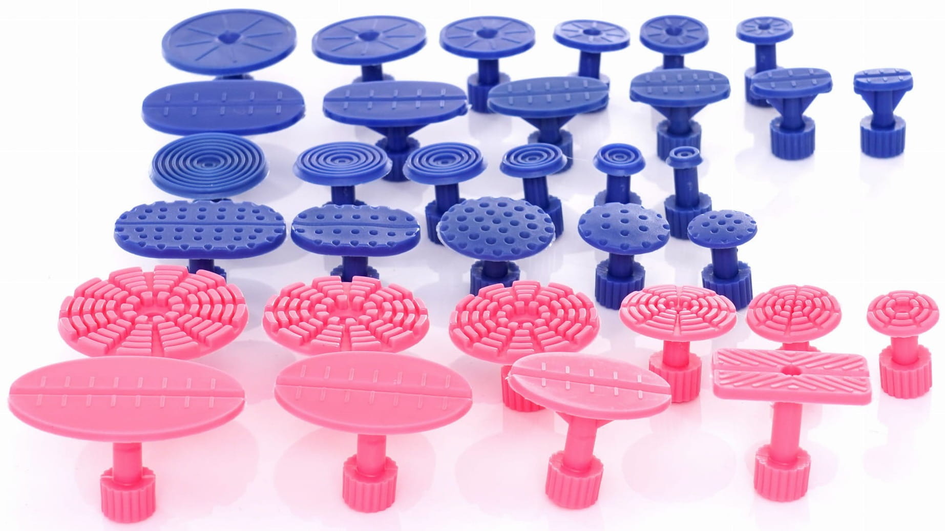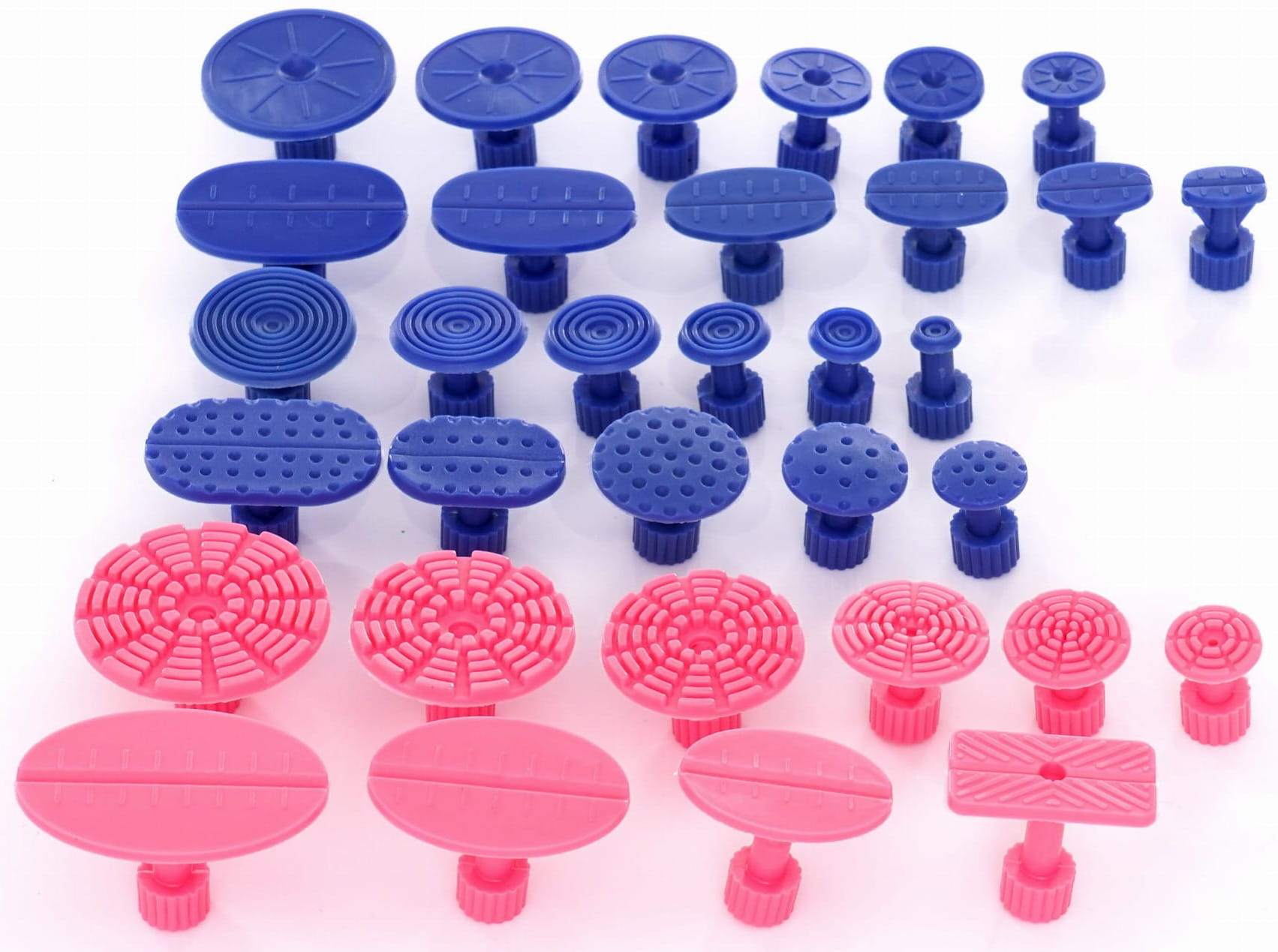 Szeroki dobór adapterów (grzybków) o zróżnicowanych średnicach i profilach umożliwia dopasowanie narzędzia do charakteru odkształcenia — od małych, punktowych wgnieceń po większe, bardziej rozległe deformacje paneli karoserii.