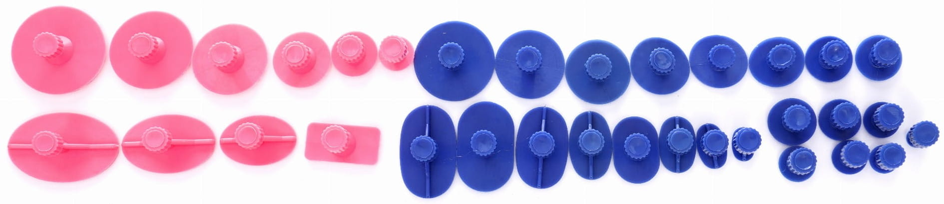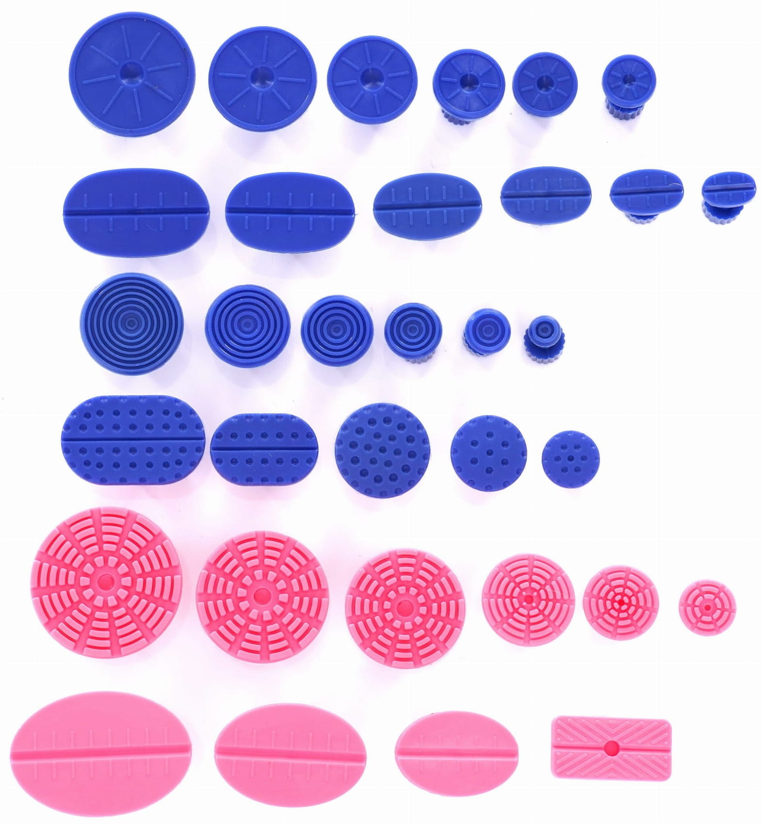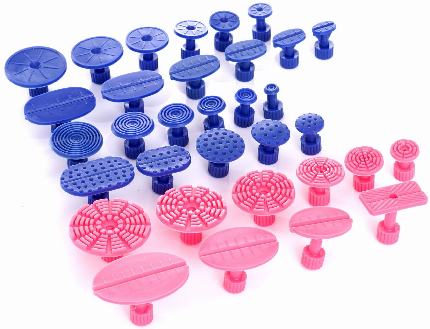 Szeroki dobór adapterów (grzybków) o zróżnicowanych średnicach i profilach umożliwia dopasowanie narzędzia do charakteru odkształcenia — od małych, punktowych wgnieceń po większe, bardziej rozległe deformacje paneli karoserii.