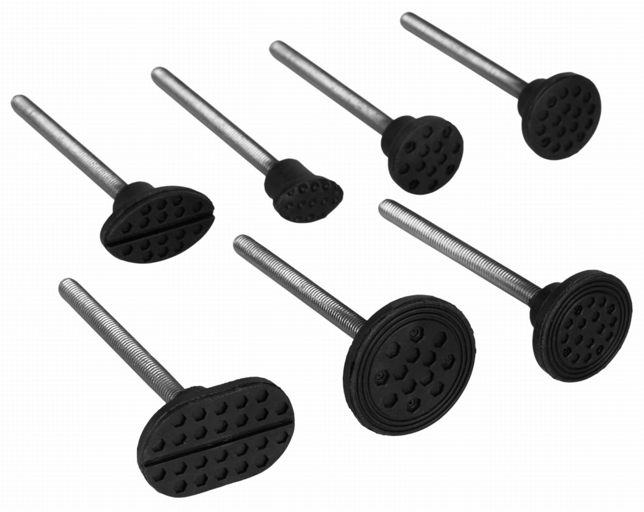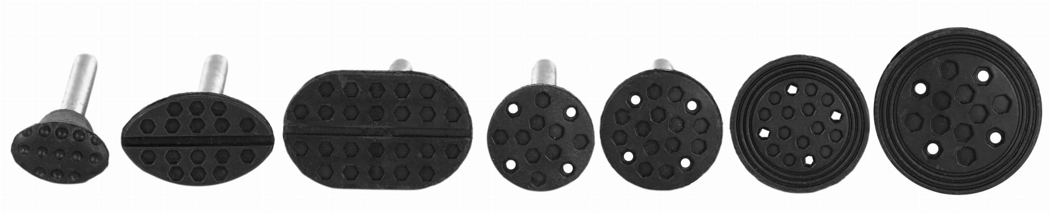 Zróżnicowane średnice adapterów umożliwiają dopasowanie narzędzia do wgnieceń o różnej powierzchni — od niewielkich punktowych uderzeń po rozleglejsze deformacje paneli. Właściwy dobór adaptera przekłada się na równomierne rozłożenie siły naciągu i skuteczność wypychania.