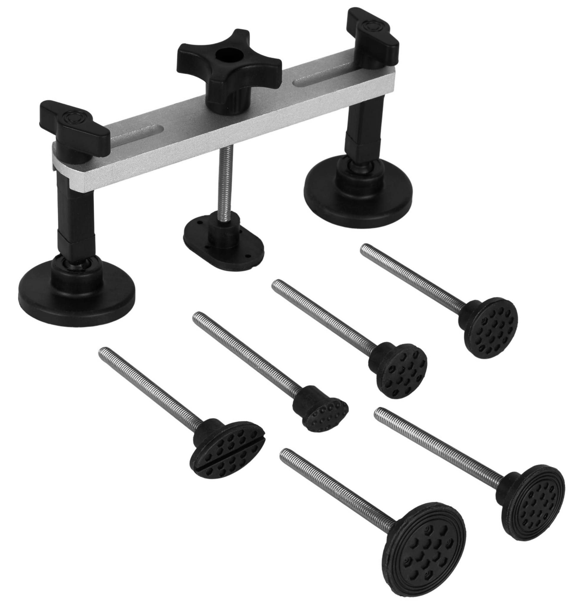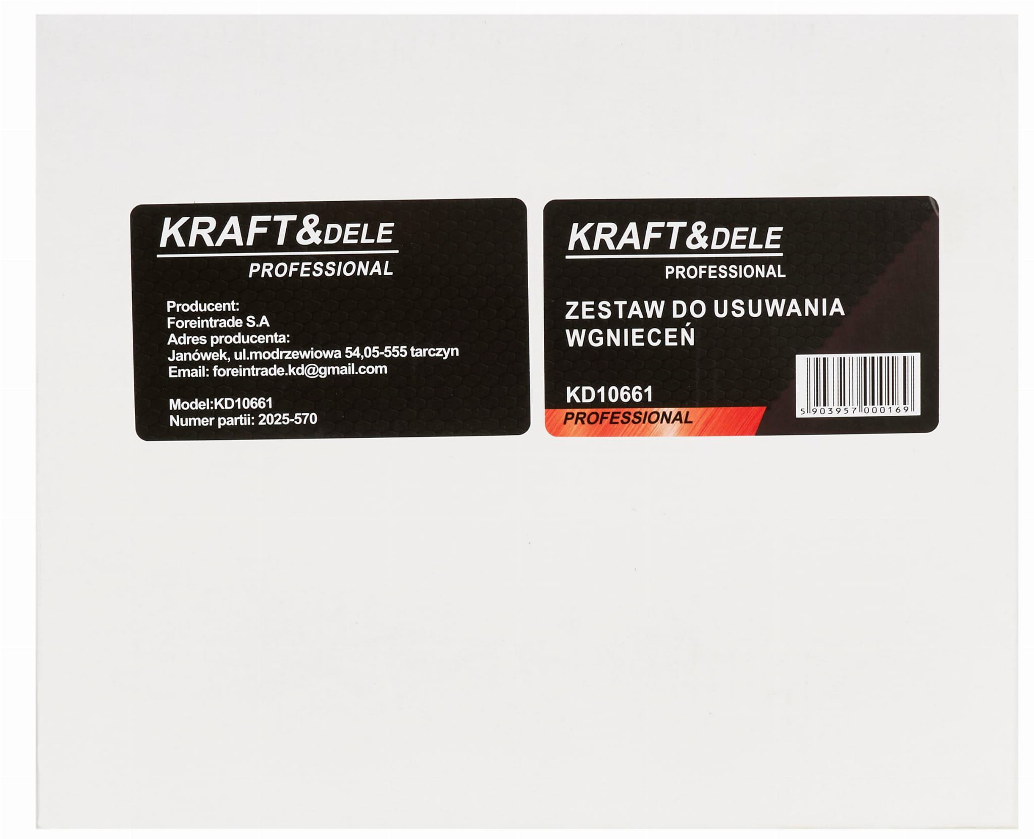 KD10661 to kompletny zestaw do bezinwazyjnego usuwania wgnieceń karoserii metodą klejową (PDR — Paintless Dent Repair). Mostek naciągowy współpracuje z adapterami przyklejanymi do wgłębienia, co pozwala na wypychanie metalu od zewnątrz bez wiercenia, szpachlowania ani naruszania powłoki lakierniczej.