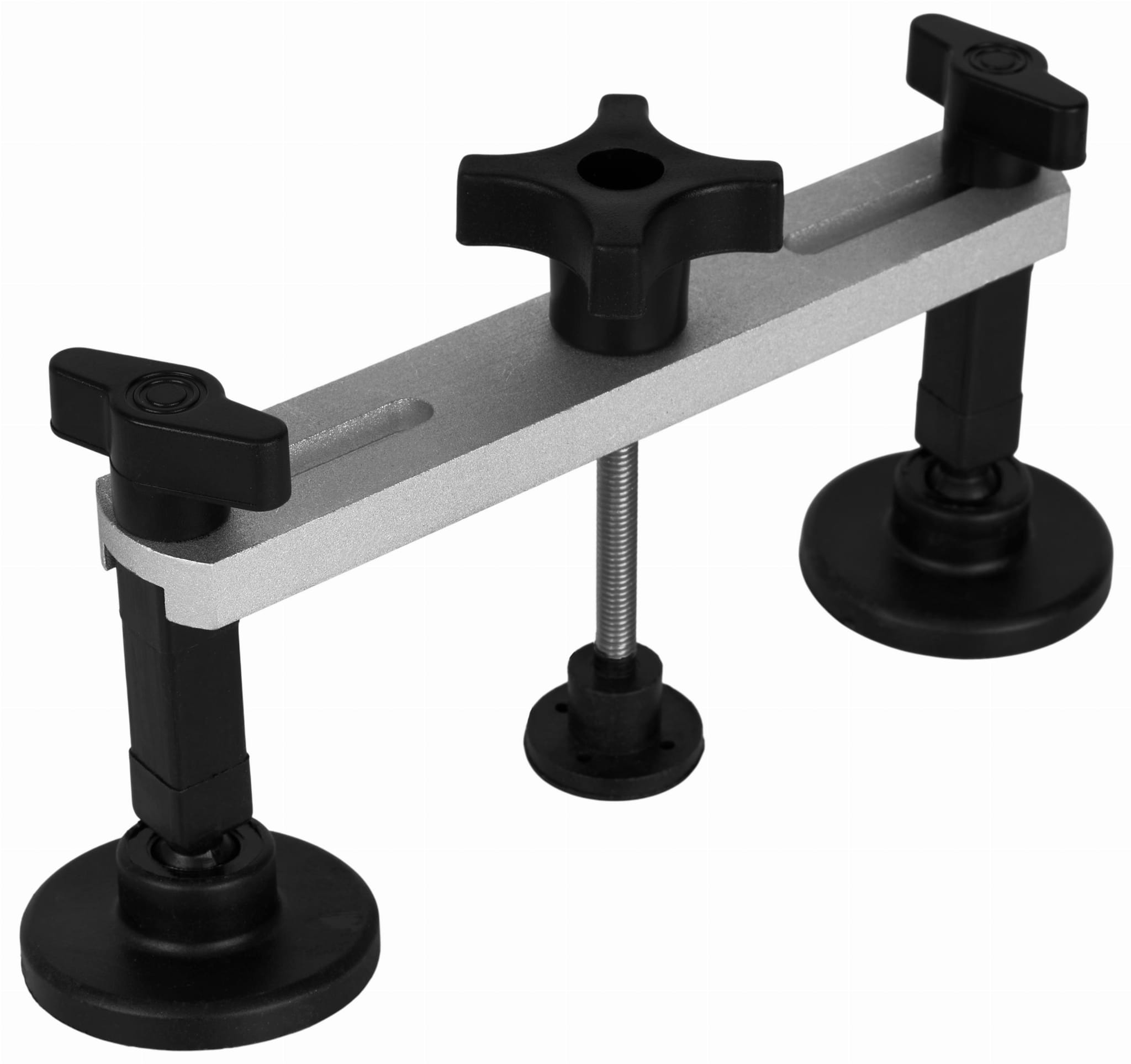 Mostek opiera się na karoserii przez dwa wsporniki, a centralny śrubowy mechanizm naciągowy generuje siłę odciągającą wgniecenie ku górze. Regulacja naciągu odbywa się stopniowo, co ogranicza ryzyko nadmiernego wyciągnięcia blachy.