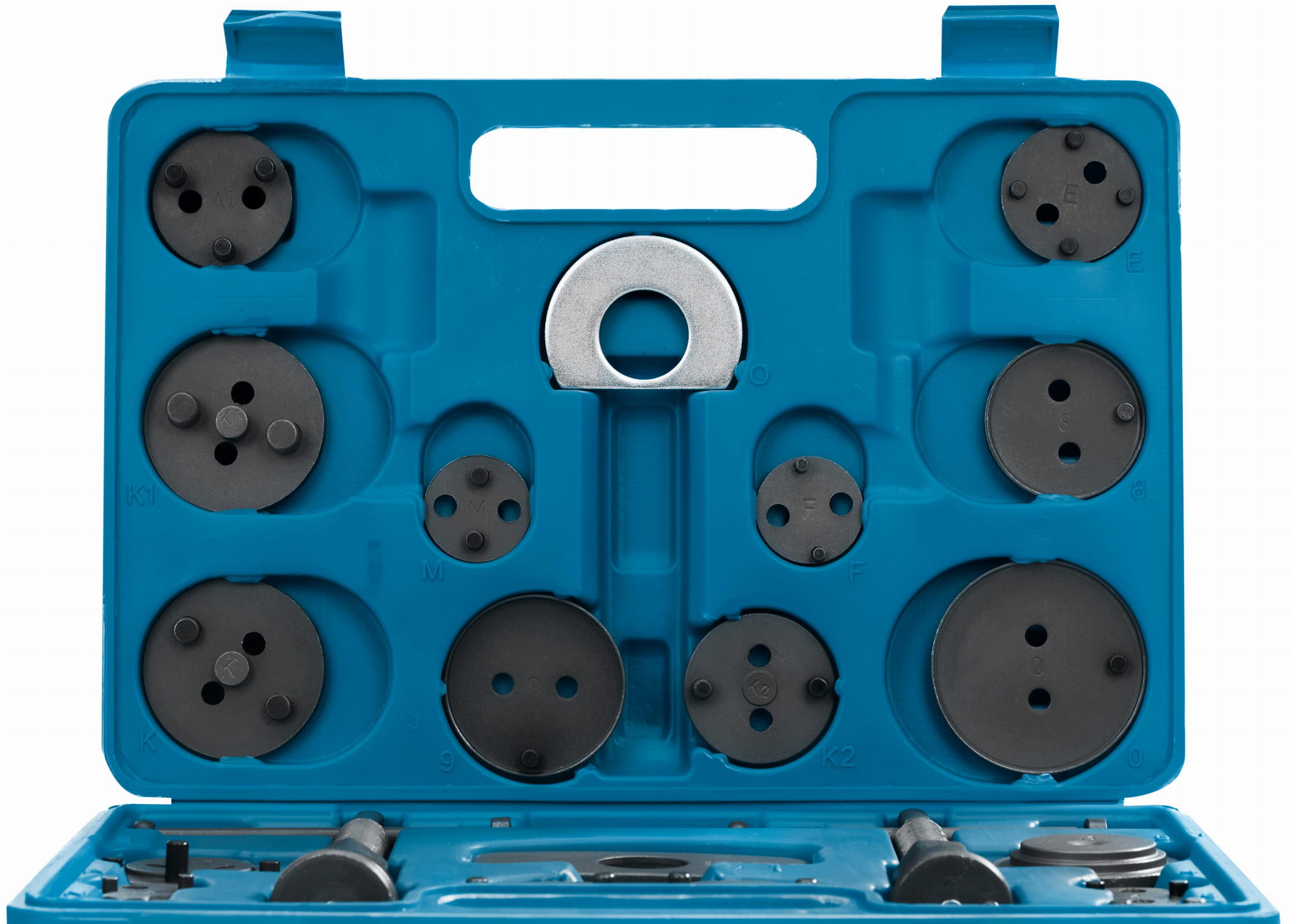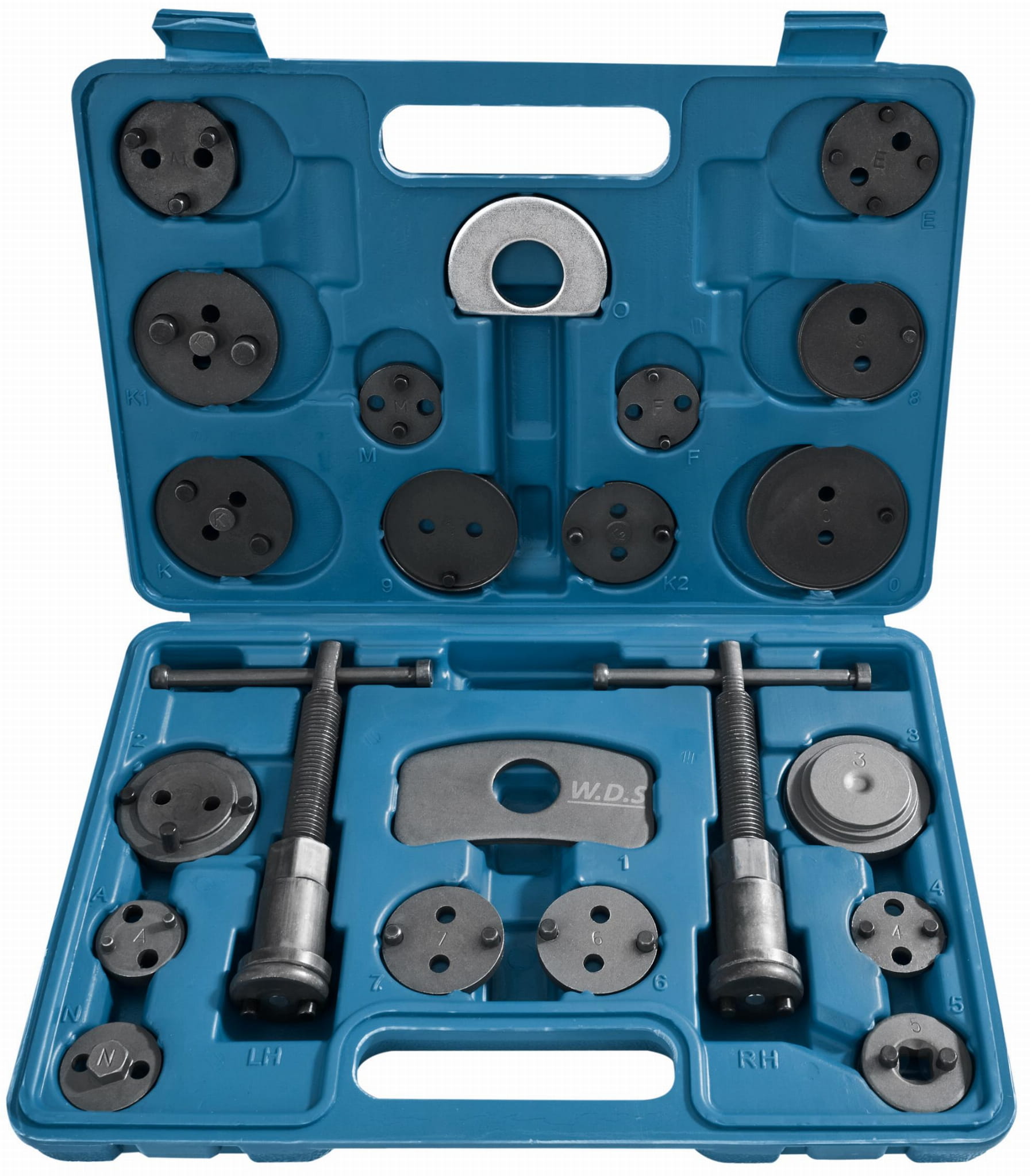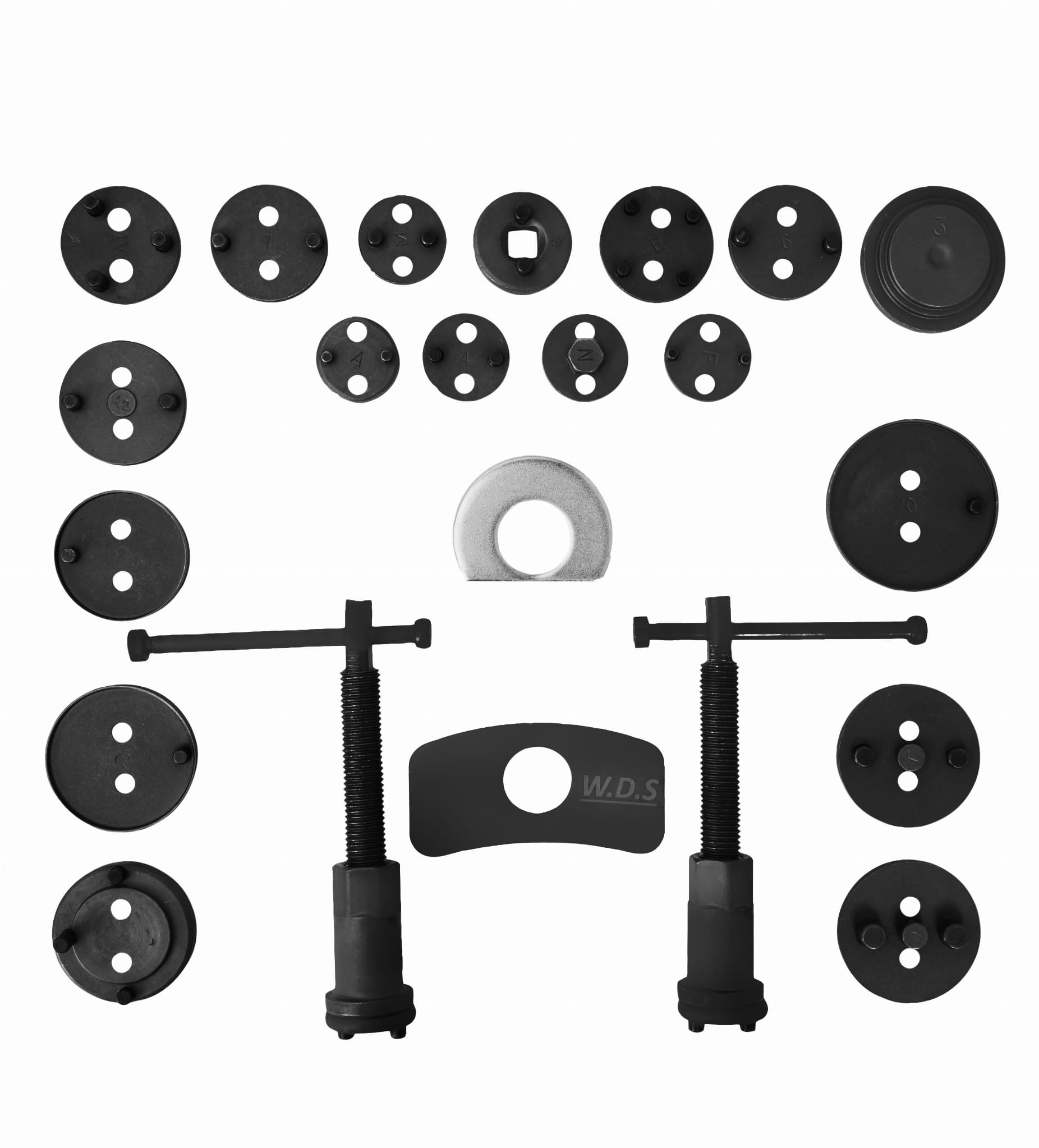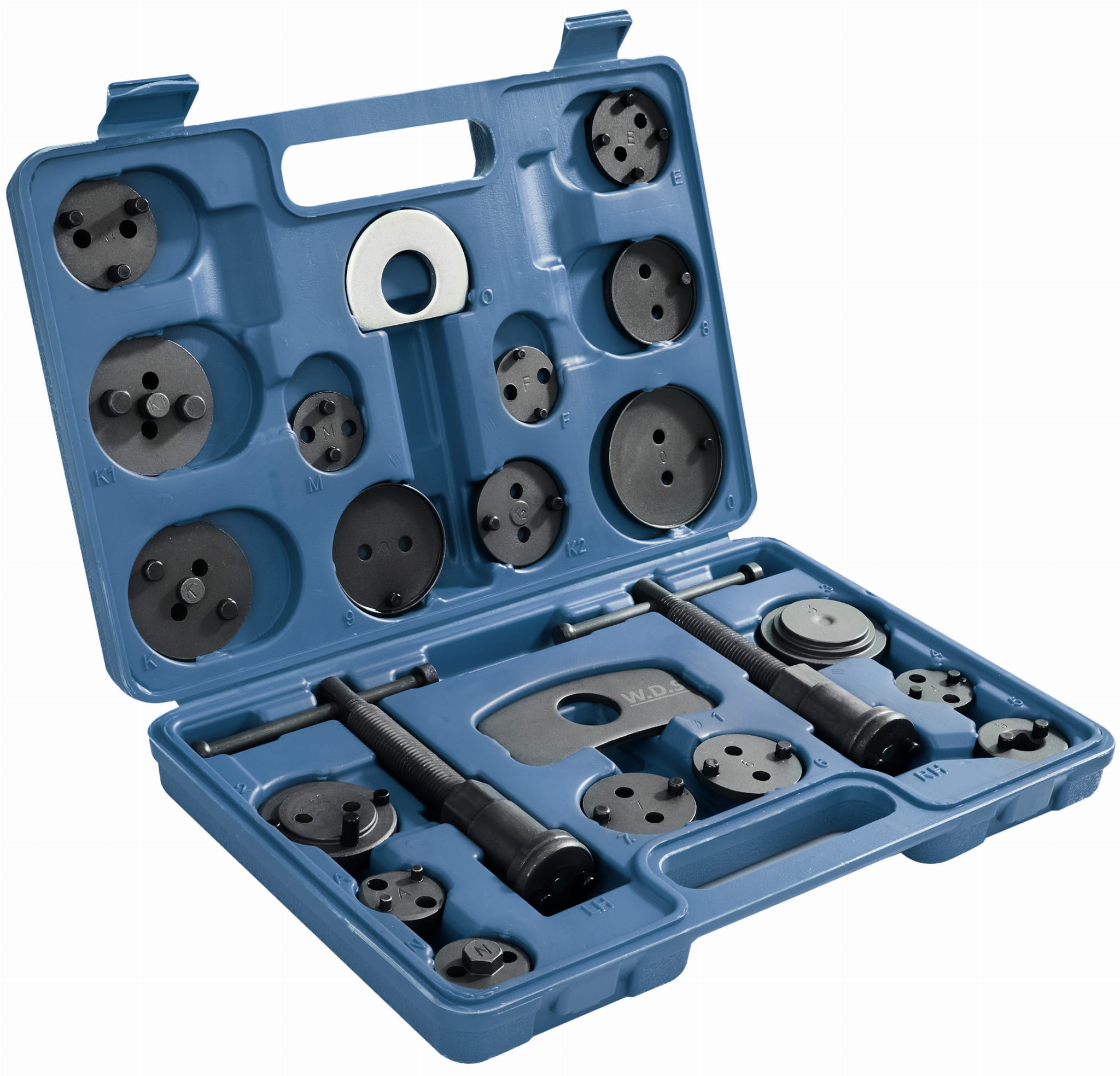 ZESTAW DO WYCISKANIA TŁOCZKÓW HAMULCOWYCH 22 ELEMENTY WDS2210 OPIS Profesjonalny zestaw do wyciskania tłoczków hamulcowych marki W.D.S model WDS2210. W zestawie znajdują się dwie prasy (prawo i lewo skrętna), dwie różnego kształtu belki do zapierania prasy o siodło zacisku oraz 17 adapterów dostosowanych do wielkości tłoczków hamulcowych stosowanych w większości samochodów osobowych produkowanych na rynku europejskim oraz azjatyckim. Niezbędny przy naprawach pojazdów wyposażonych w hamulce tarczowe Zestaw wykonany z wysokiej jakości stali, zapakowany w solidną plastikową walizkę. Pokrętło wyposażone w magnetyczną końcówkę utrzymującą każdy adapter. Doskonale sprawdza się przy pracy z tłoczkami ceramicznymi. Zestaw zawiera : Przystawka do wkręcania Specjalny adapter do Citroena C5 Praska z prawym gwintem | Praska z lewym gwintem Belka pomocnicza do zapierania praski o siodło zacisku hamulcowego Krążek 2 – Citroen XM, Xiantia Krążek 3 – Alfa Romeo, Audi, Austin, BMW, Ford, Honda, Jaguar, Mercedes-Benz, Mitsubishi, Nissan, Rover, Toyota, VW Krążek 4 – Alfa Romeo 164 2.0, Fort, Mazda, Saab 9000, Subaru Krążek 5 – adapter z wewnętrznym czworokątem 3/8” Krążek 6 – Nissan Primera, VW Golf IV Krążek 7 – Audi 80/90/V8 + 100, Ford Sierra ABS + Scorpio(85-xx), Honda Prelude, Nissan Silvia 1.8 turbo, Rover 8000, Saab 9000, Subaru Legancy, VW Golf + Passat Krążek 8 – General Motors Krążek 9 – General Motors Krążek 10 – General Motors Krążek Z – Renault Krążek G – Opel Astra Krążek M – Ford SKŁAD ZESTAWU Zestaw do wyciskania tłoczków hamulcowych WDS2210 Oryginalne opakowanie Gwarancja 12 miesięcy Paragon lub FV