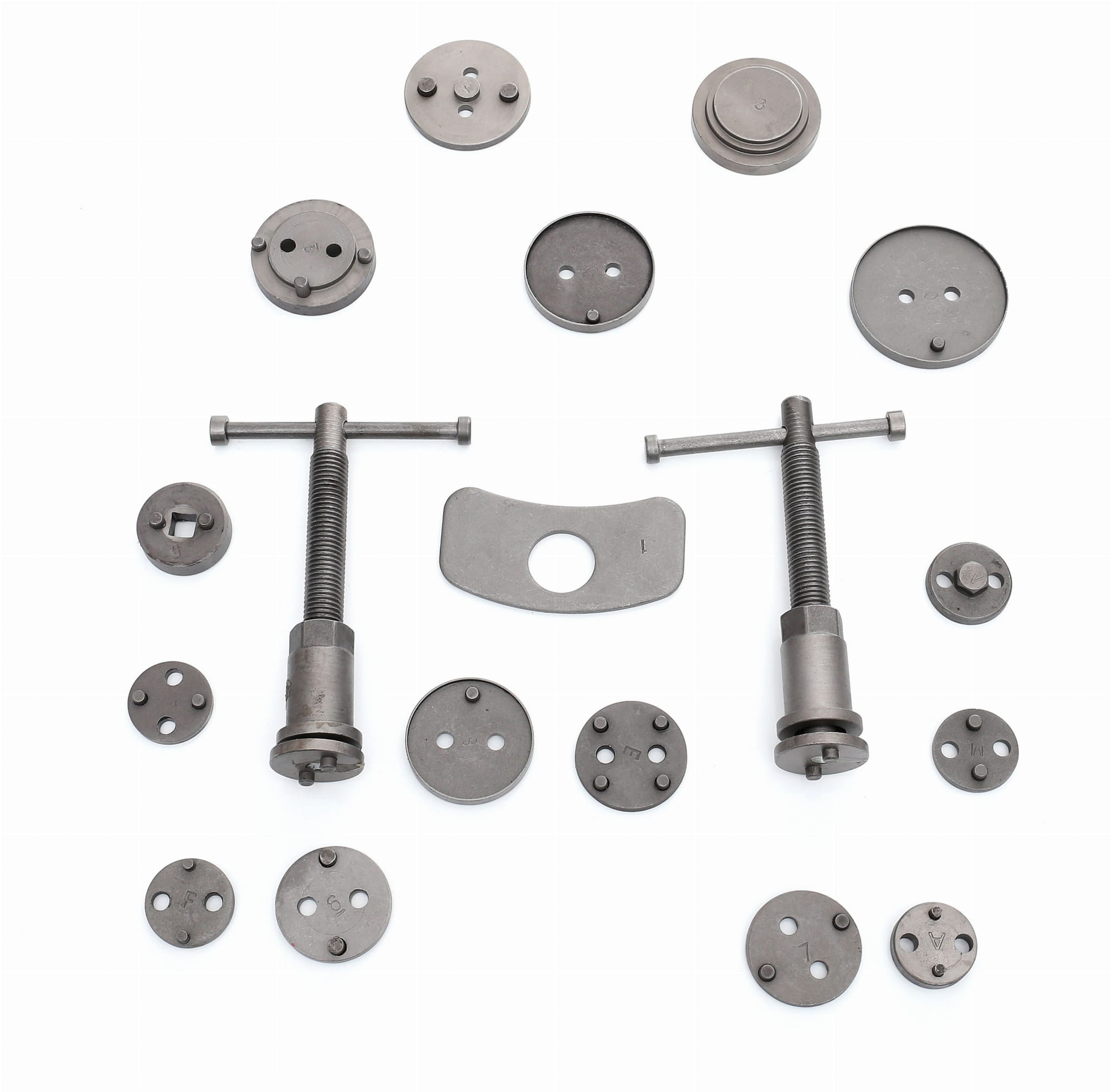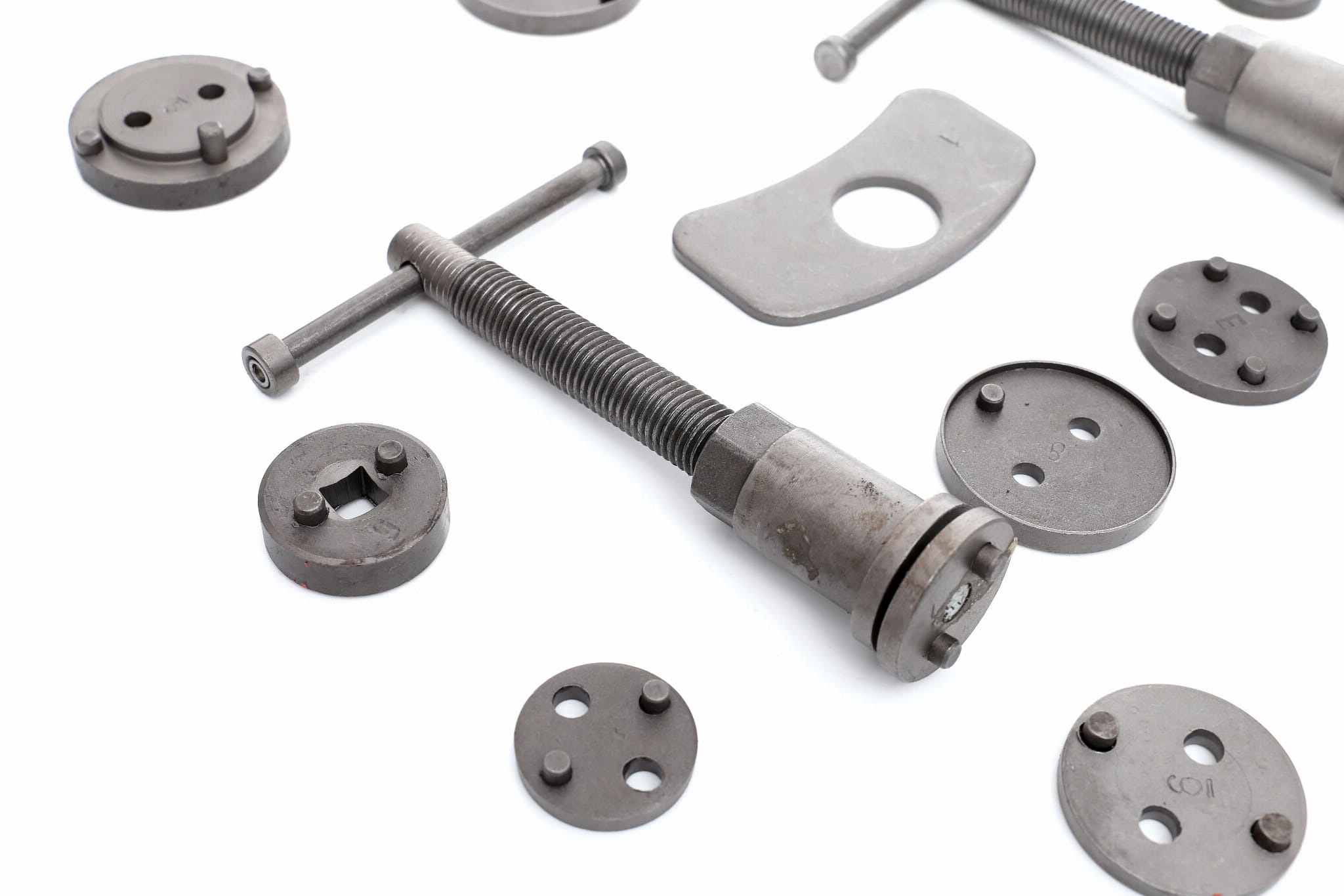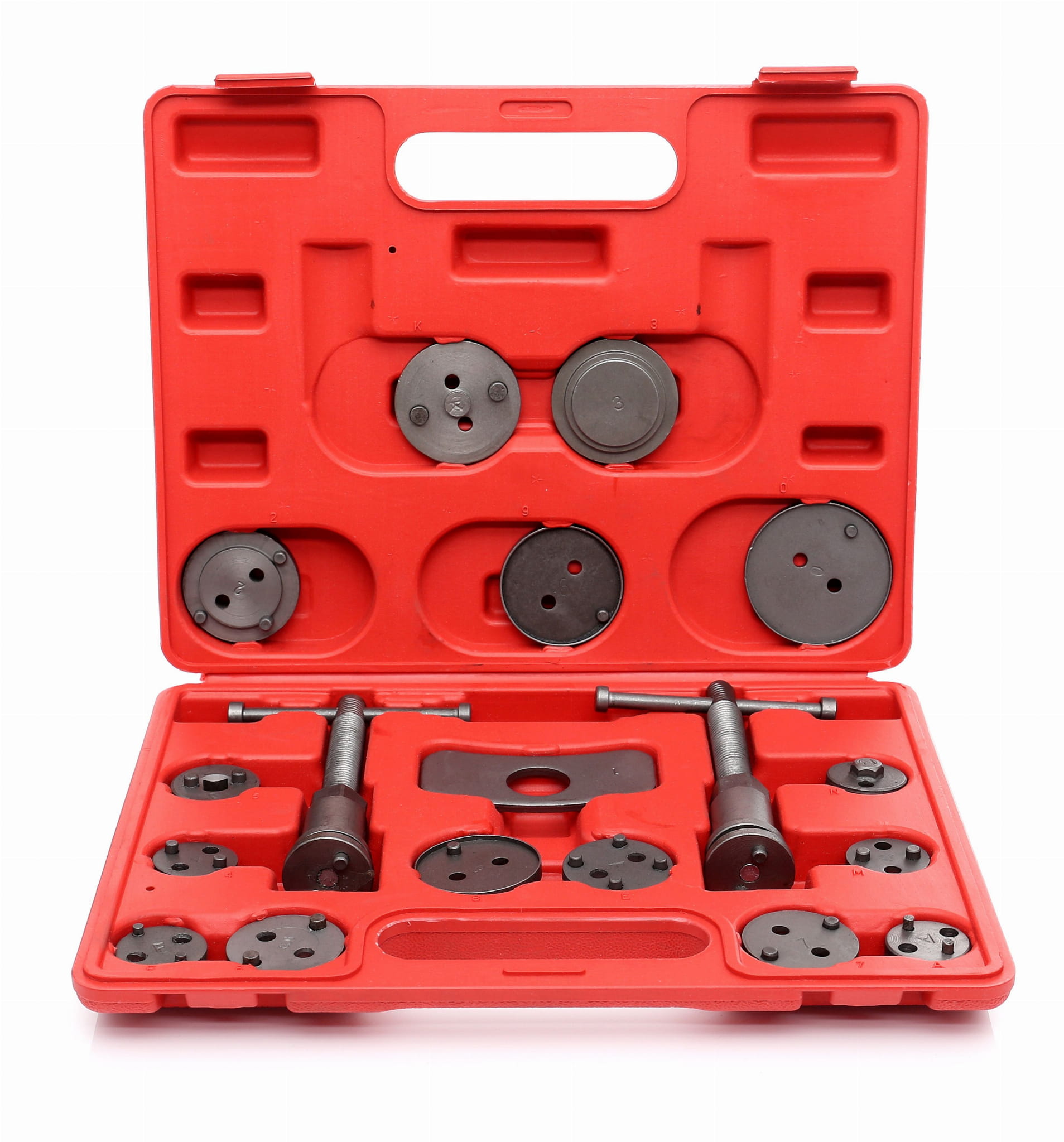 Zestaw przeznaczony do pracy przy różnych typach zacisków hamulcowych — zarówno jednotłoczkowych, jak i wielotłoczkowych — spotykanych w popularnych markach pojazdów osobowych i lekkich dostawczych.