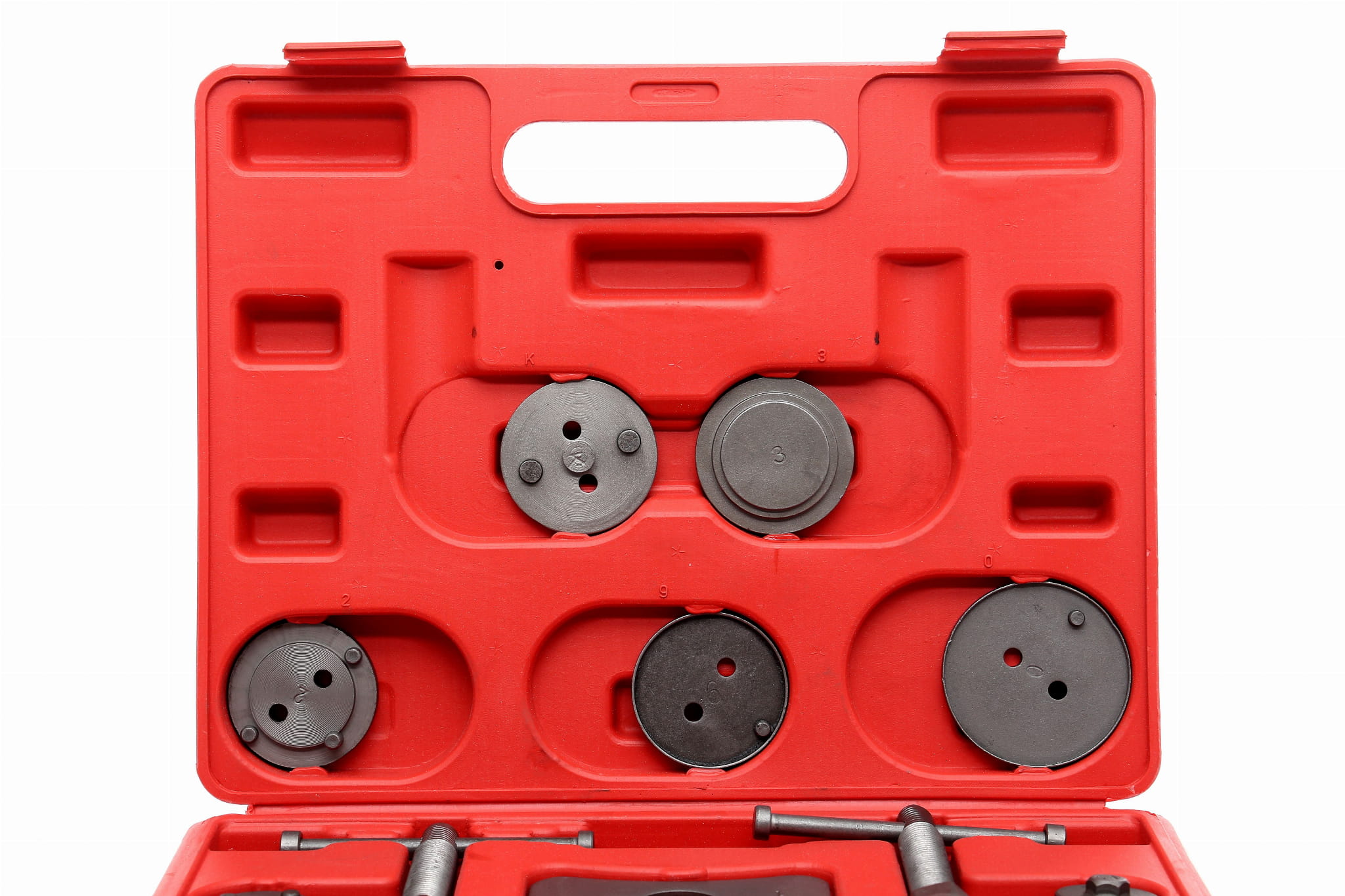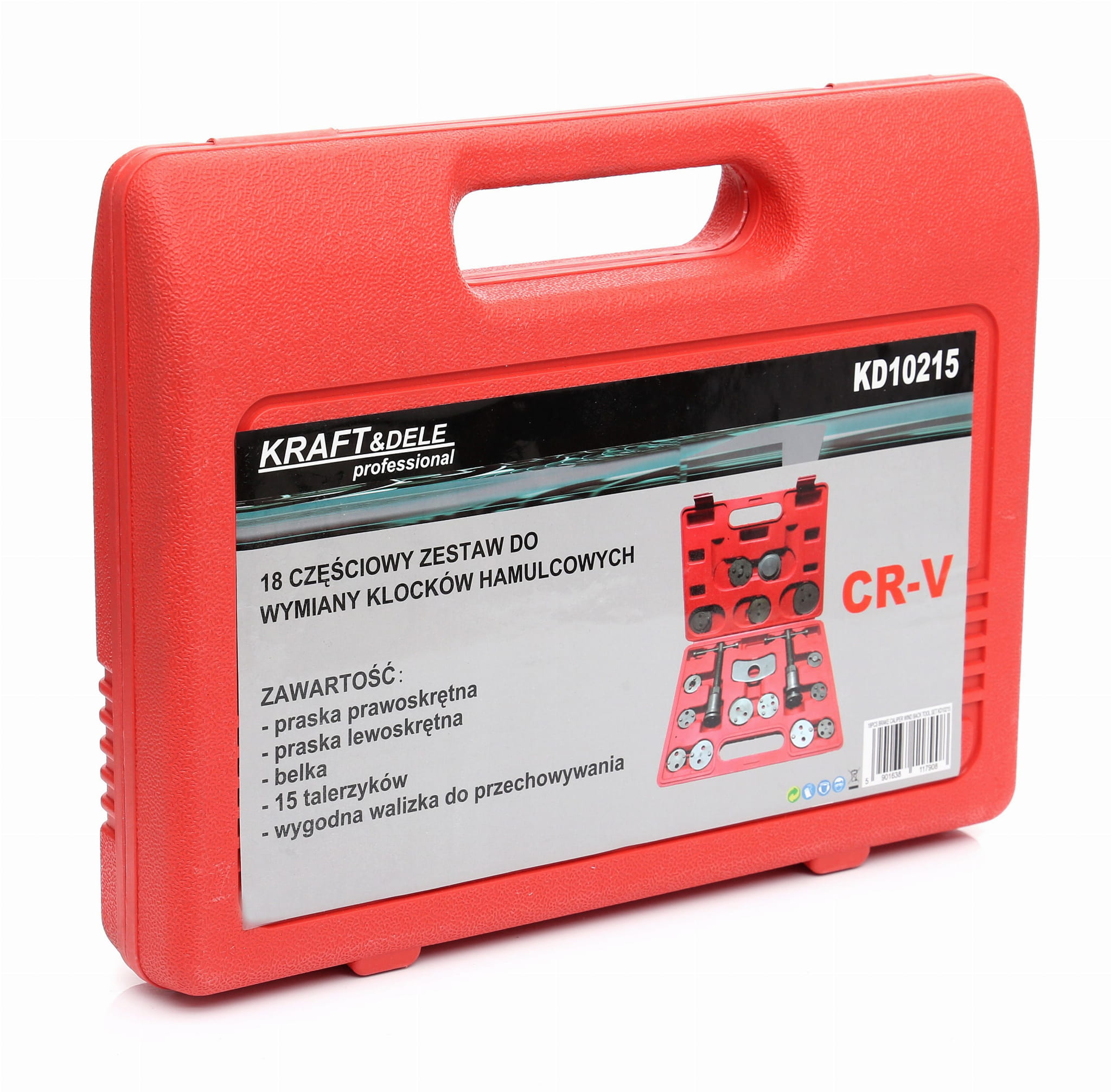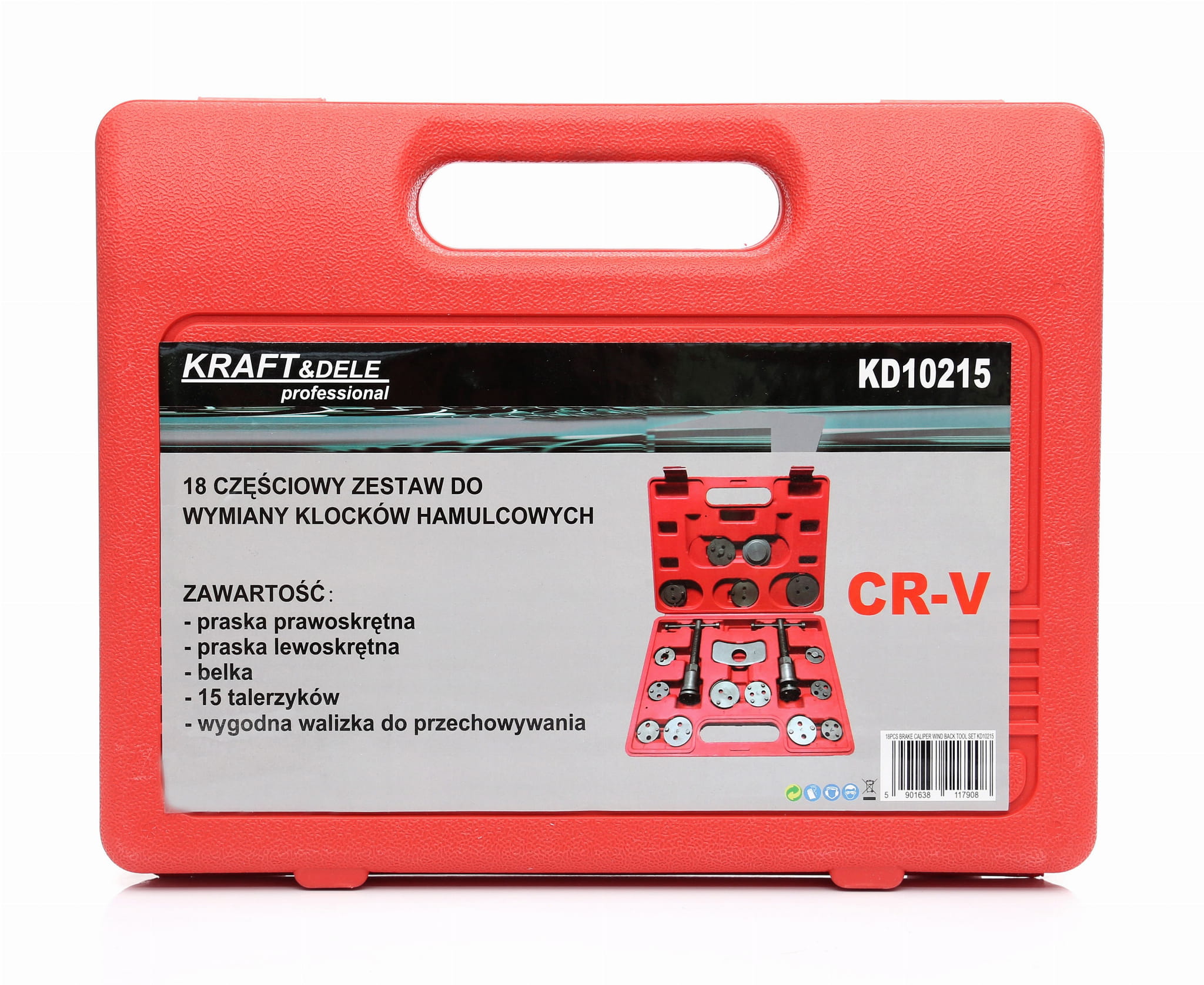 KD10215 to kompletny zestaw 18 elementów przeznaczonych do demontażu i montażu klocków hamulcowych w pojazdach osobowych i dostawczych. Narzędzia umożliwiają sprawne odpychanie tłoczków zacisku hamulcowego oraz bezpieczną obsługę układu hamulcowego bez ryzyka uszkodzenia komponentów.